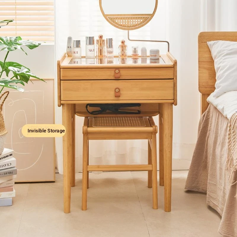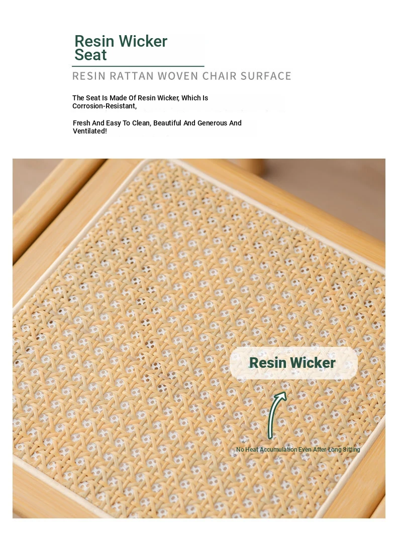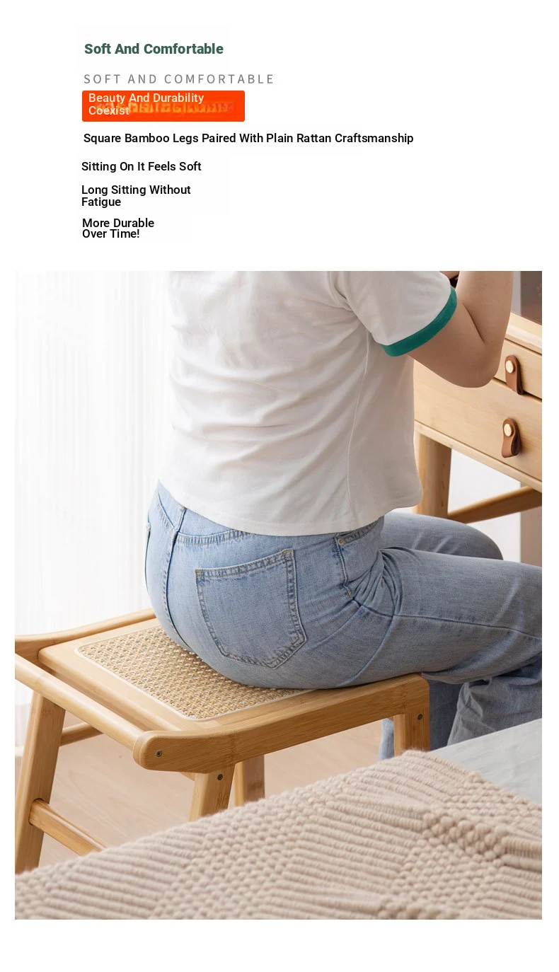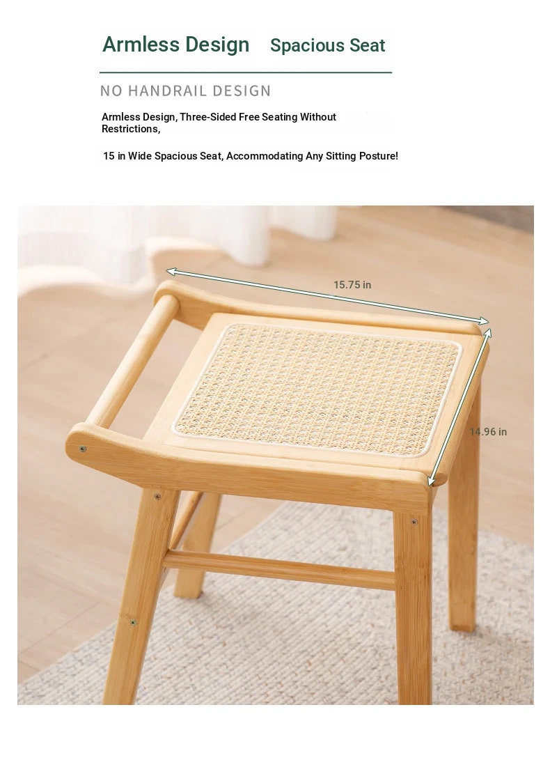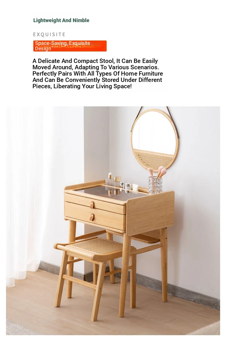 Japanese Rattan Makeup Stool - Stylish Wooden Vanity Seat for Home & Bedroom, Trendy Small Square Stool for Nail Salons - Minimalist Design, New Arrival!
