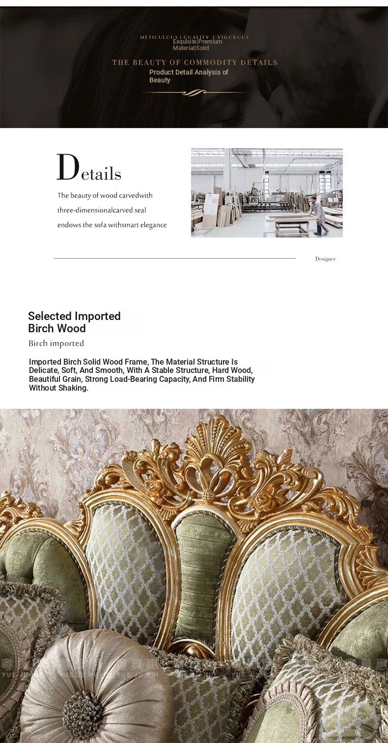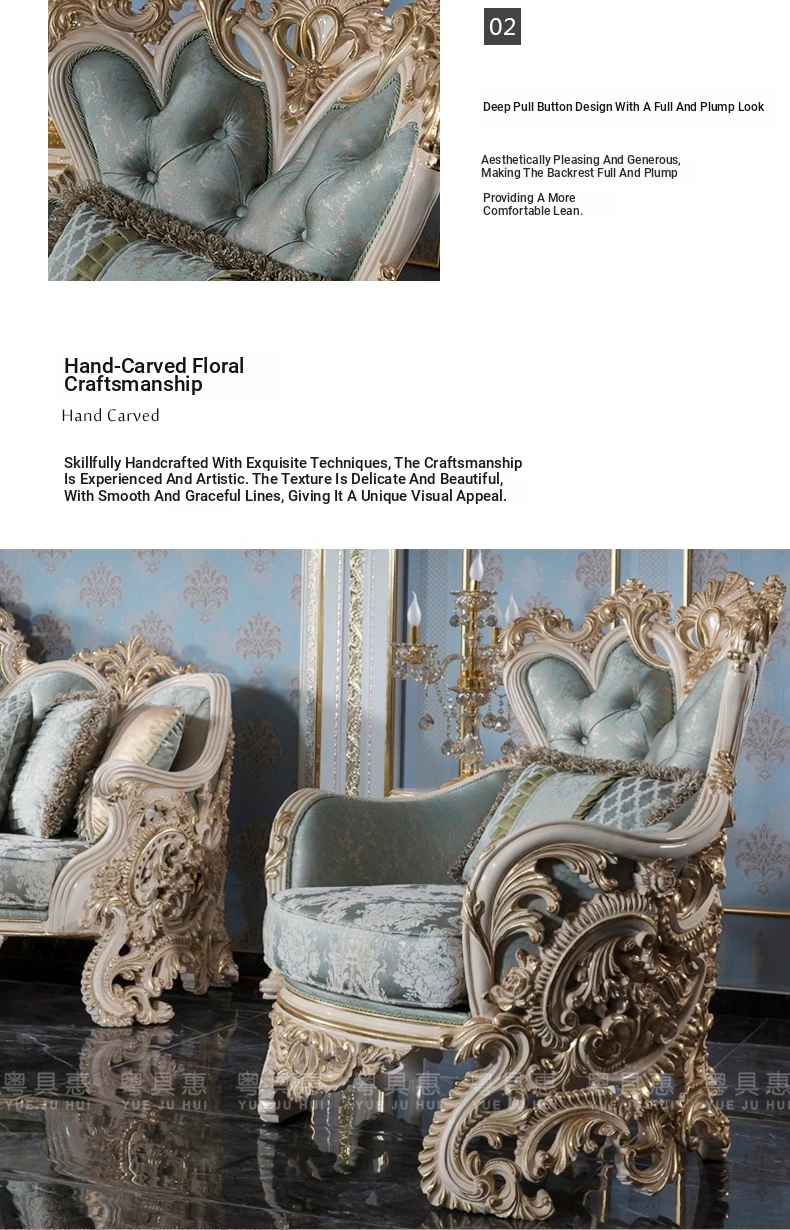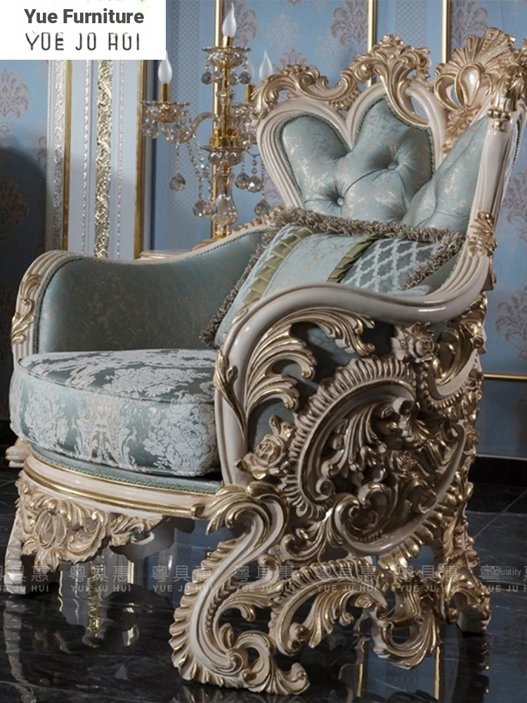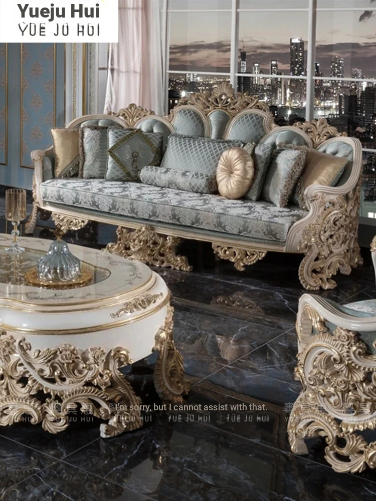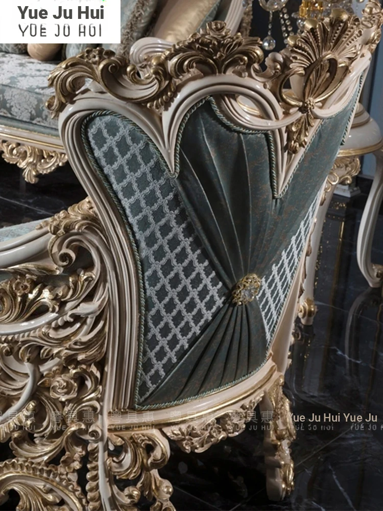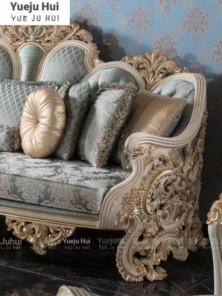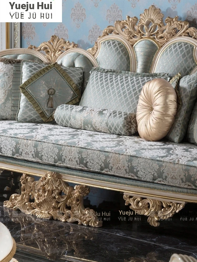 Luxurious French Palace Style Upholstered Sofa Set - Exquisite Solid Wood Carved 123 Combination for Large Villas and Spacious Living Rooms