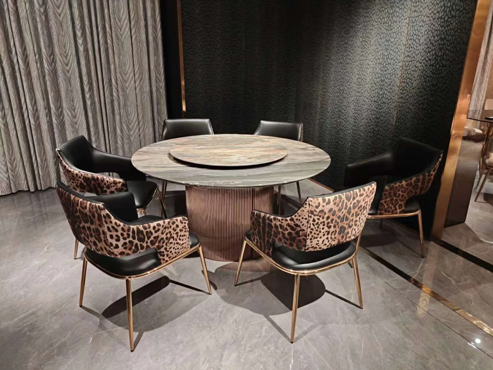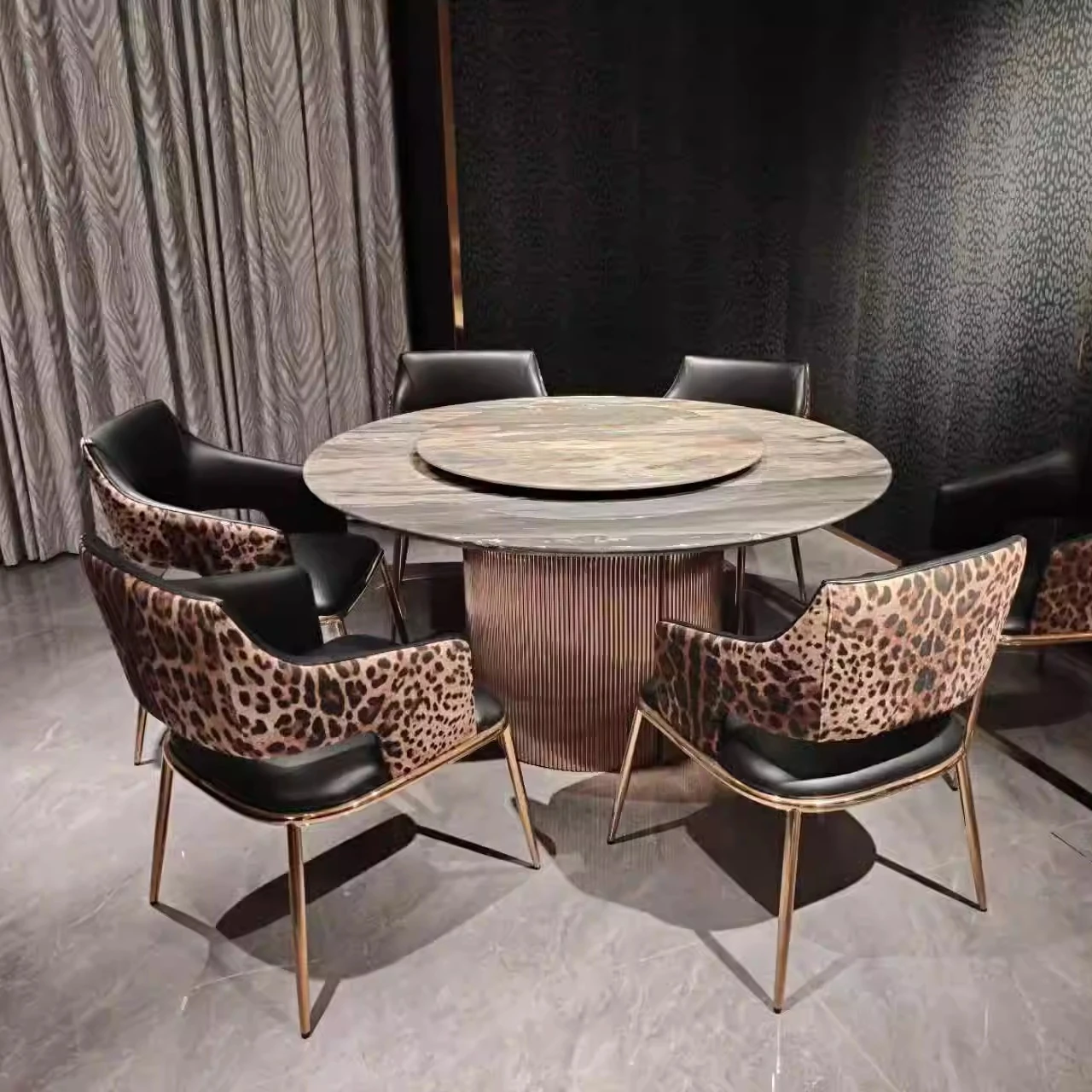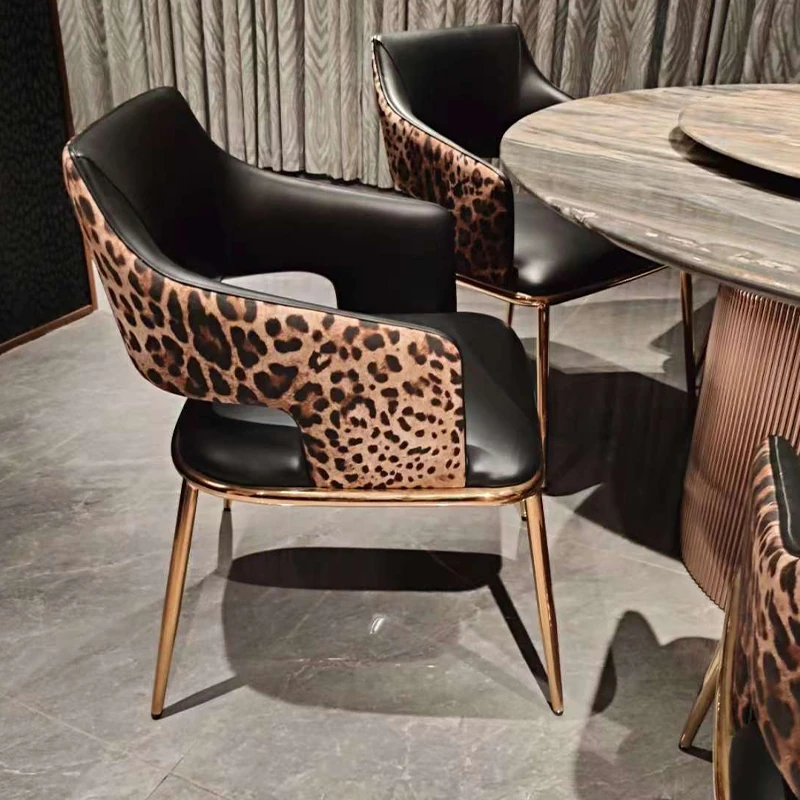 Luxurious Genuine Leather Dining Chairs with Soft Padding and Armrests – Modern Minimalist Design for Home, Perfect for Villas and Elegant Dining Rooms, Complete Set of Table and Chairs.