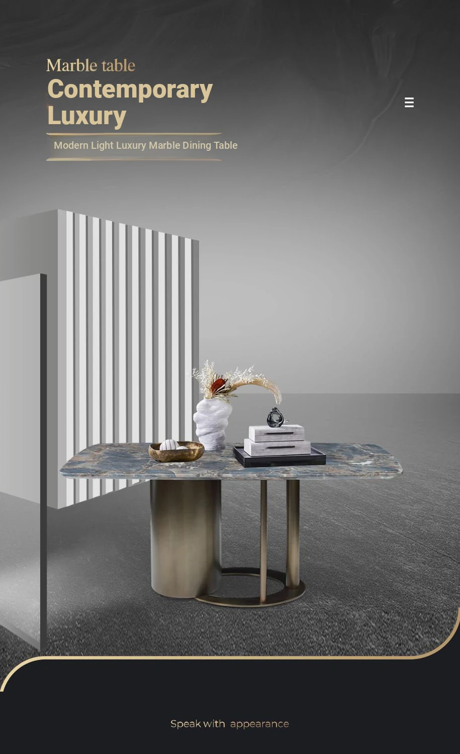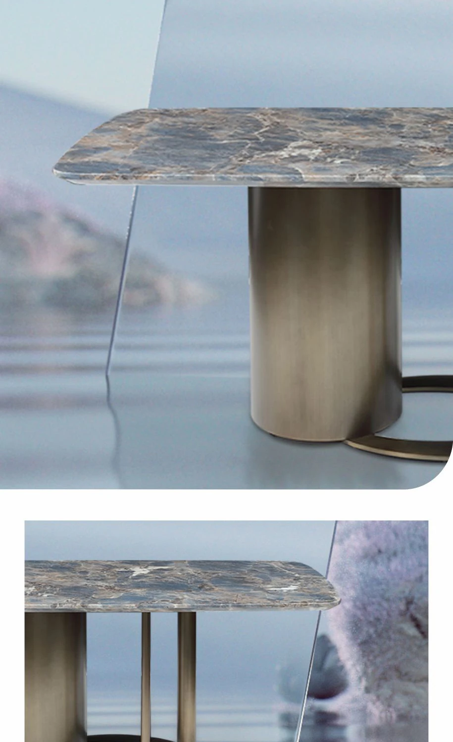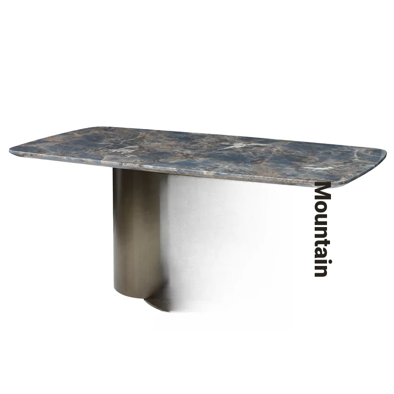 Luxury Marble and Stainless Steel Dining Table Set - Elegant Rectangular Table with Natural Crystal Stone and Chairs for a Sophisticated Dining Experience