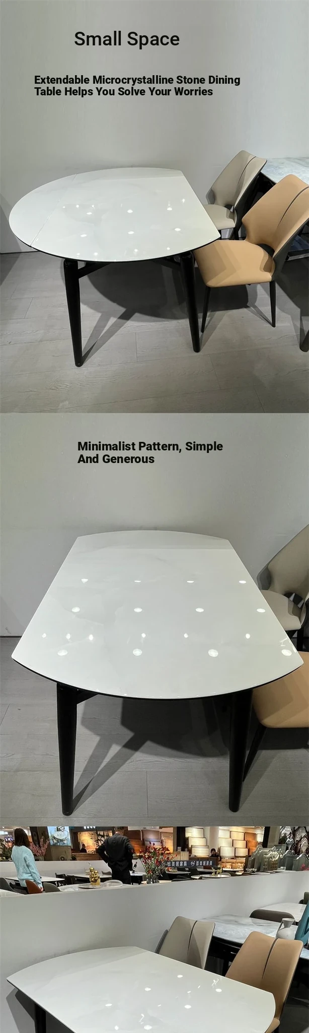Marble Dining Table with Microcrystalline Stone - Convertible Square to Round Design, Ideal for Small Spaces, Extendable Rectangular and Round Options for Versatile Dining Experience
