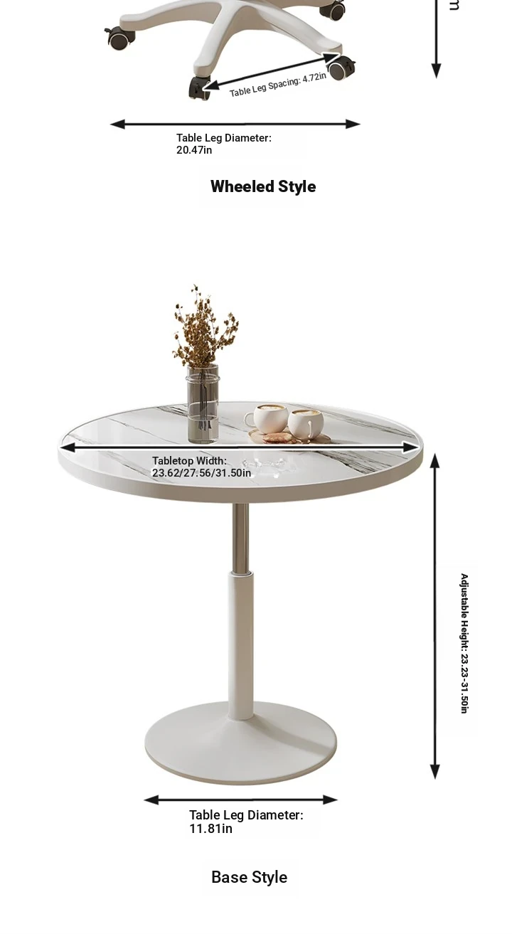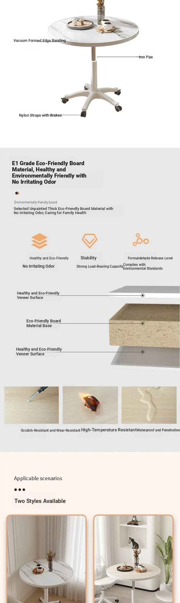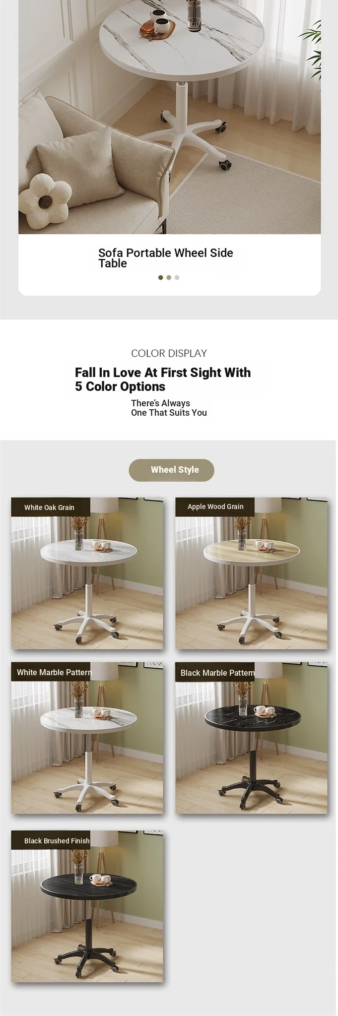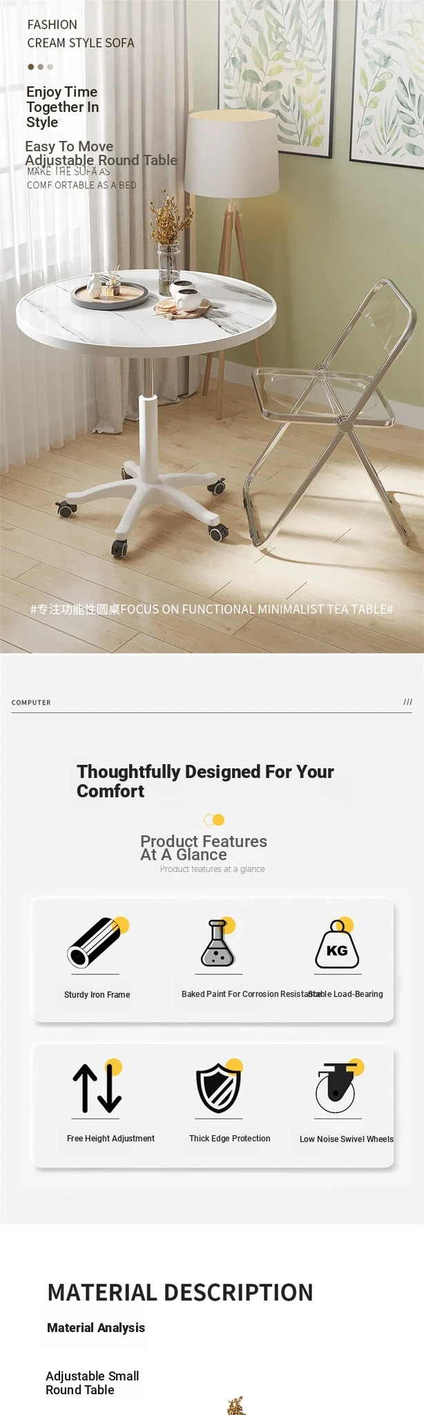 Minimalist Adjustable Round Table with Wheels - Perfect for Home, Balcony, or Casual Meetings. Ideal as a Sofa Side Table or Bedside Desk for Relaxation and Comfort.