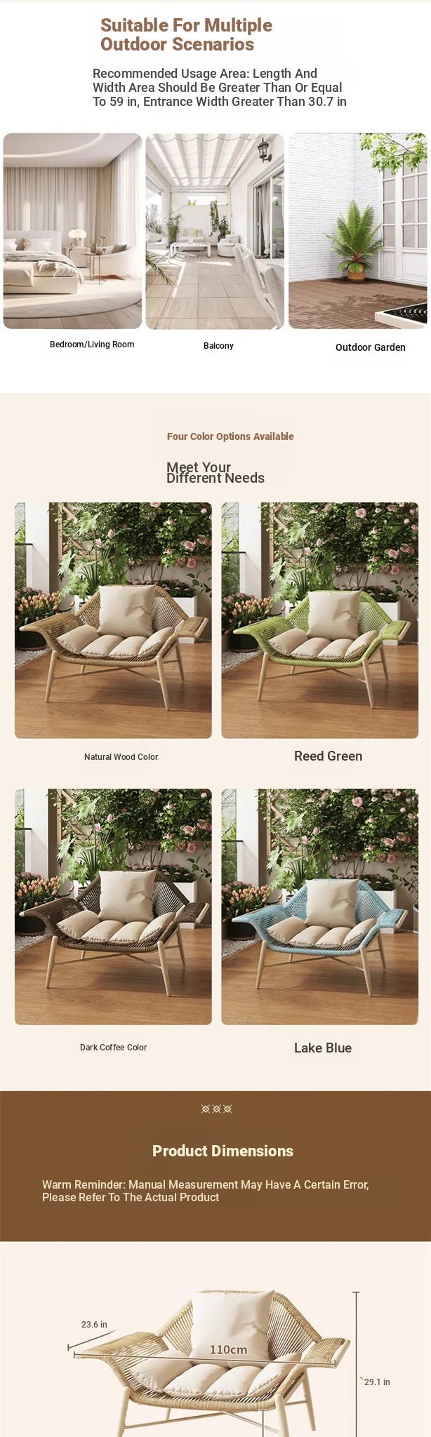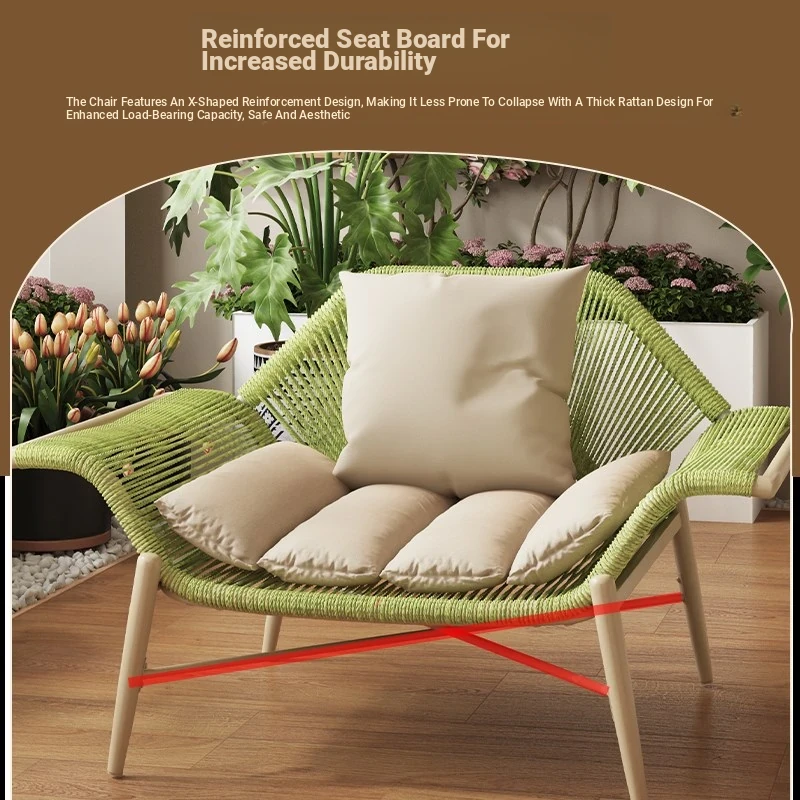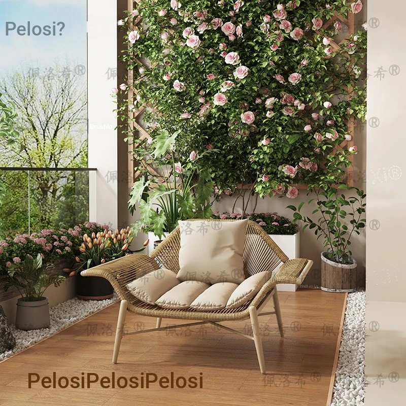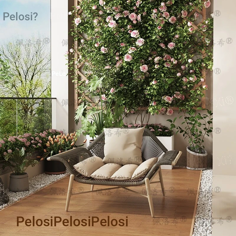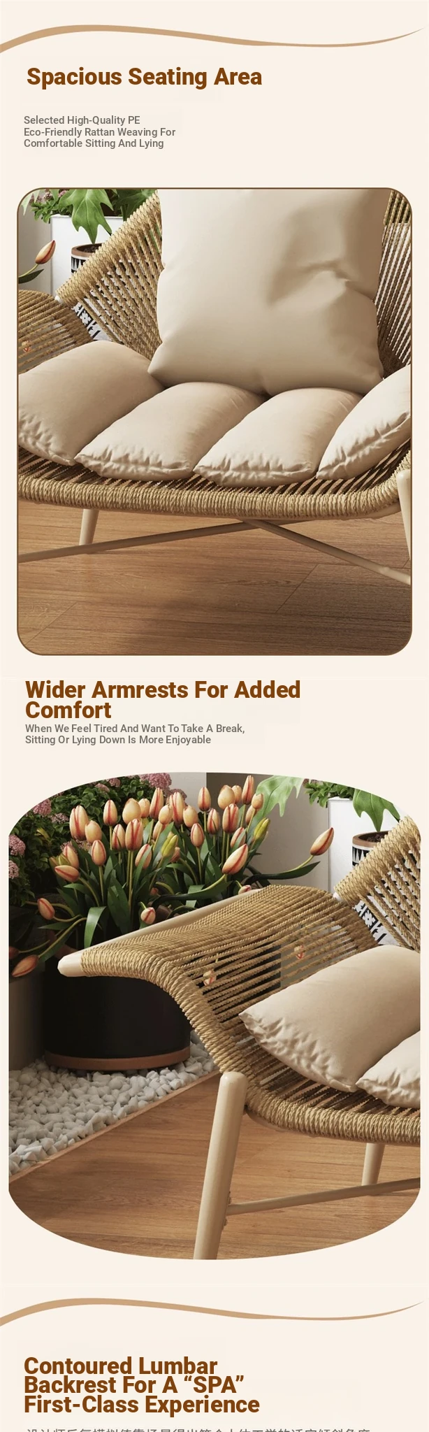 Minimalist Chaise Lounge Chair - Stylish Single Sofa for Relaxation, Perfect for Courtyards and Balconies, Comfortable Rattan Design, Ideal for Leisure Time