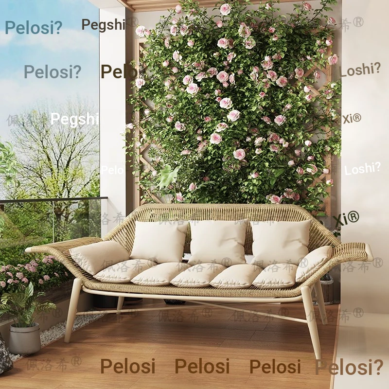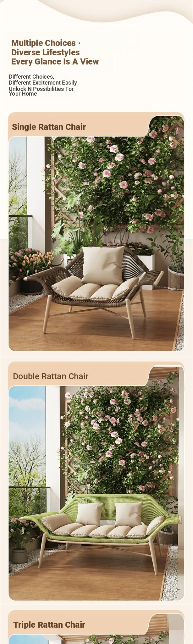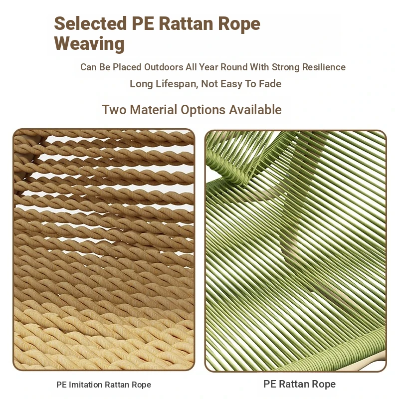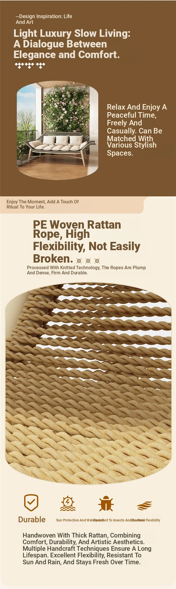 [Three-person chaise chaise] log color-PE imitation rattan rope (with high-setting cushion pillow)