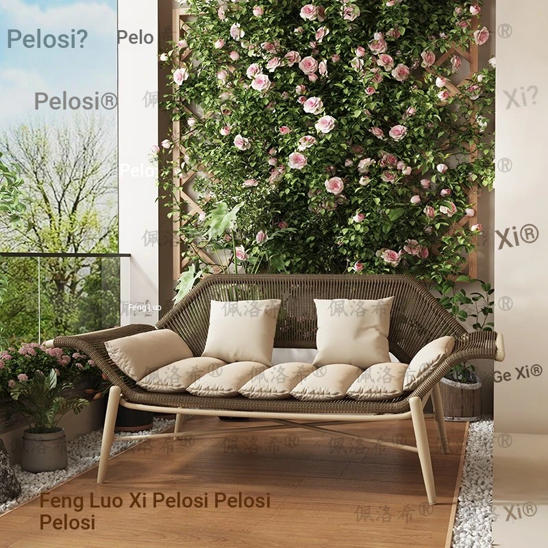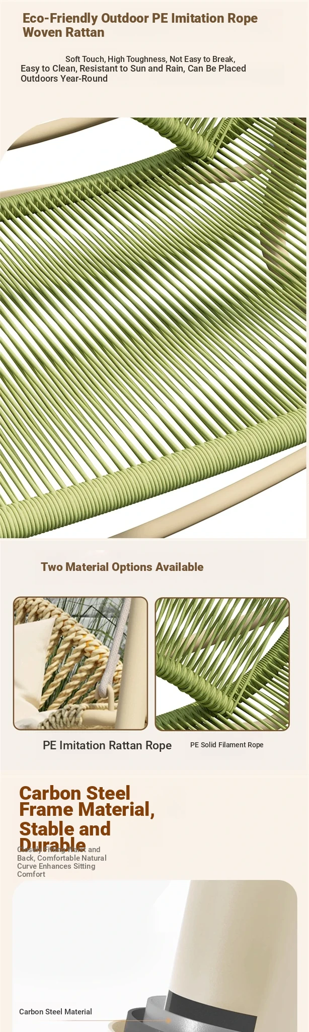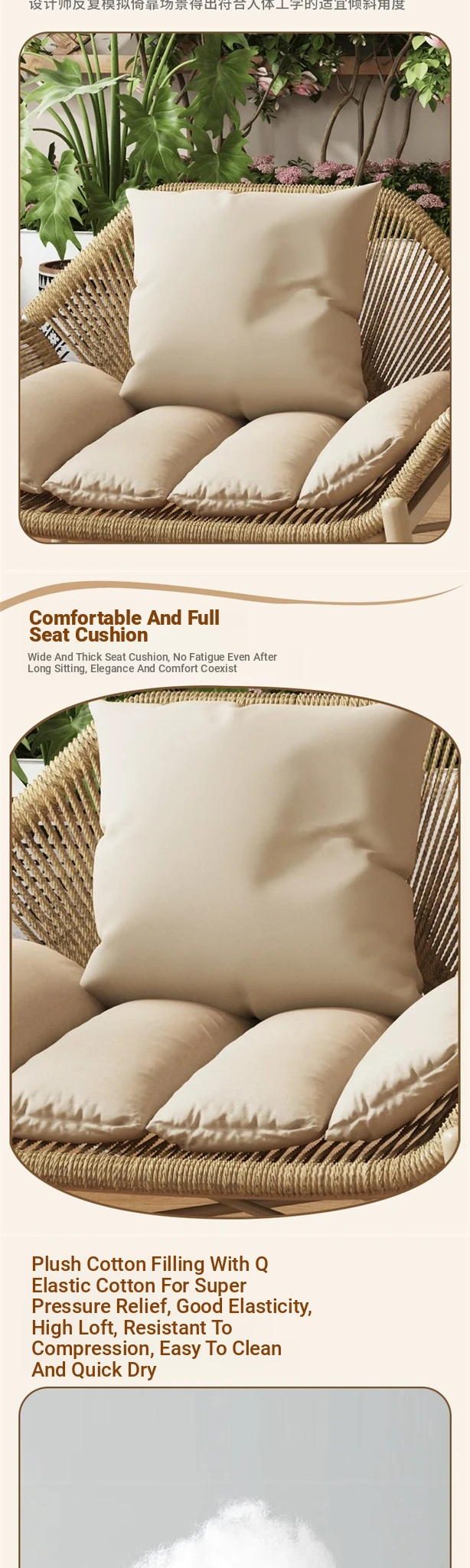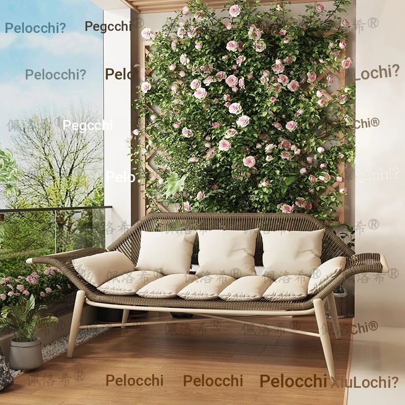 [Three-person chaise chaise] log color-PE imitation rattan rope (with high-setting cushion pillow)