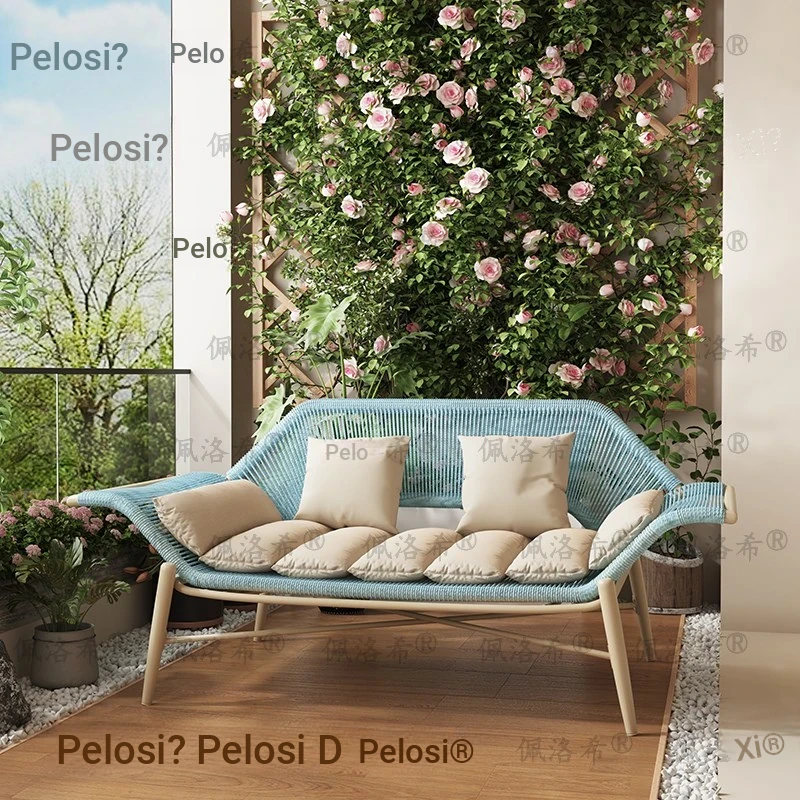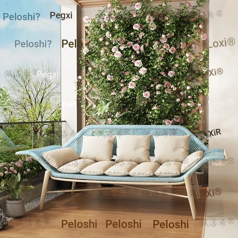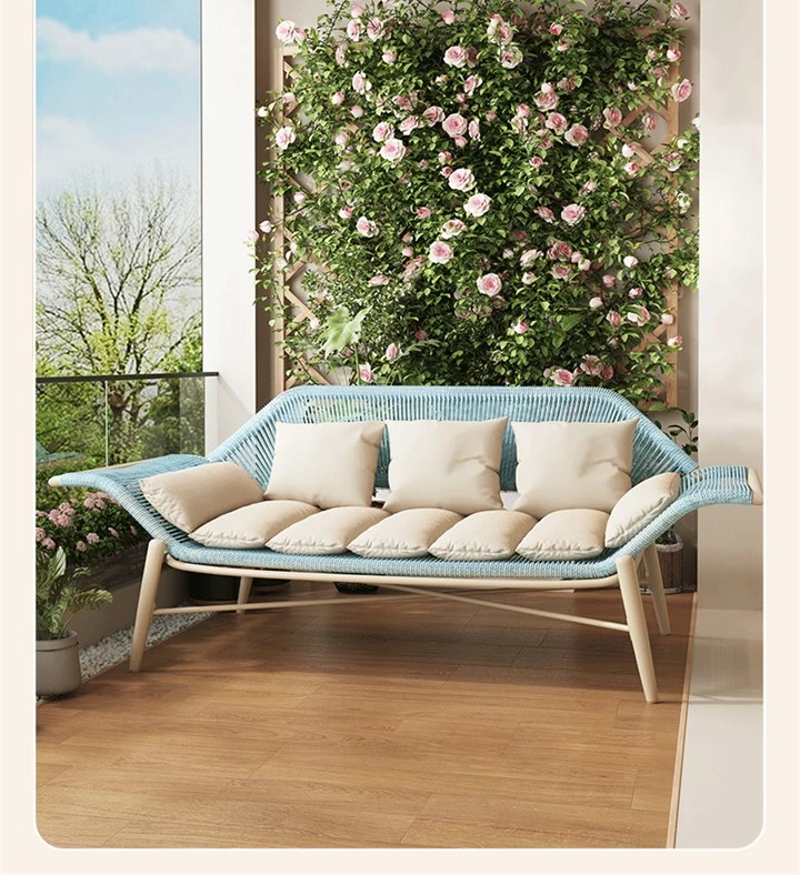 [Three-person chaise longue] Sky Blue-PE Condensed Silk Rope (with High Setting Cushion Pillow)