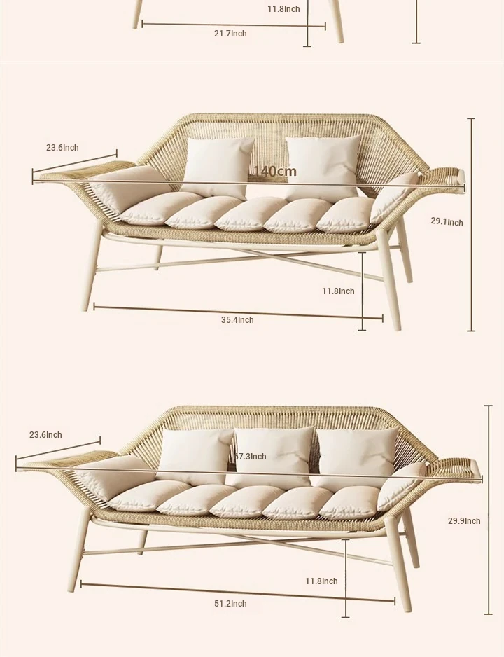 [Three-person chaise longue] Latte Cafe-PE Condensed Silk Rope (with High Setting Cushion Pillow)