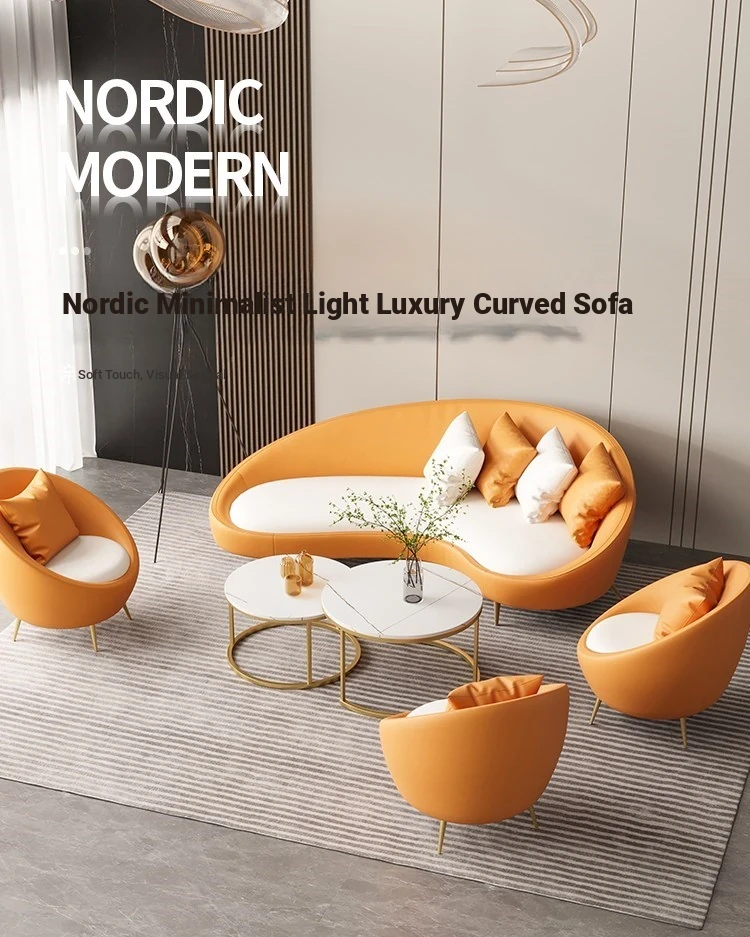 Minimalist Modern Curved INS Chic Reception Sofa for Beauty Salons, Clothing Stores, Sales Offices, and Nail Salons – Elevate Your Space with Elegant Comfort