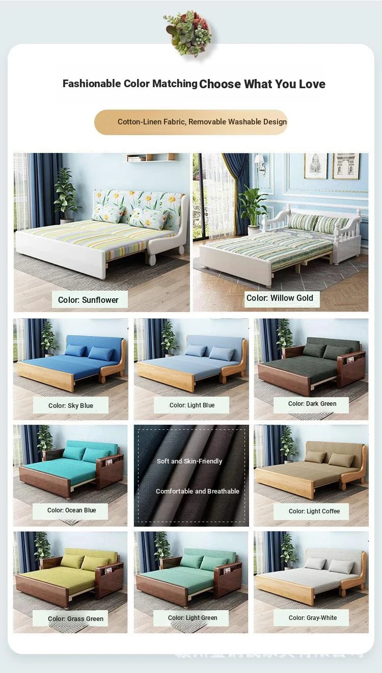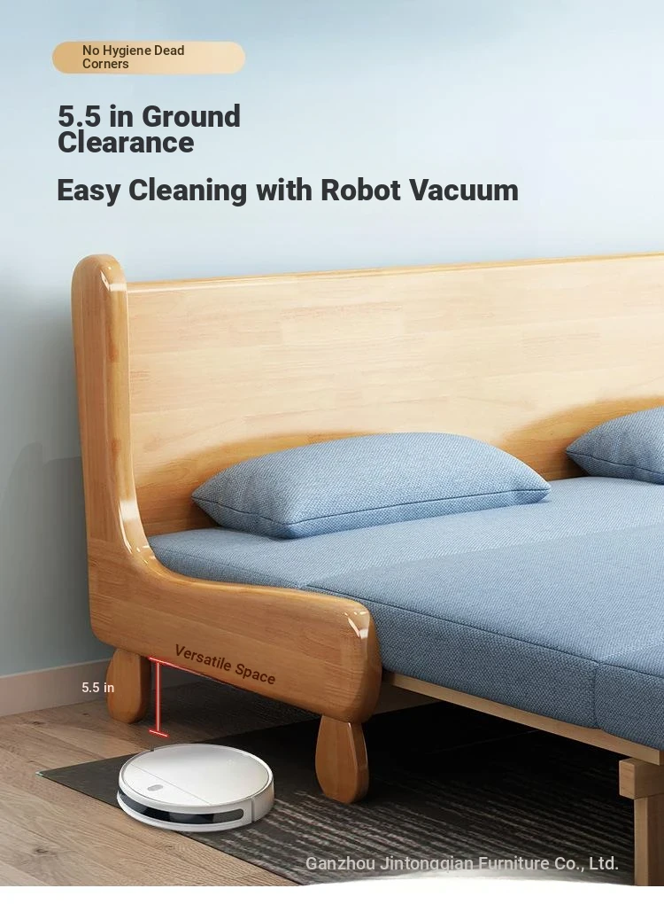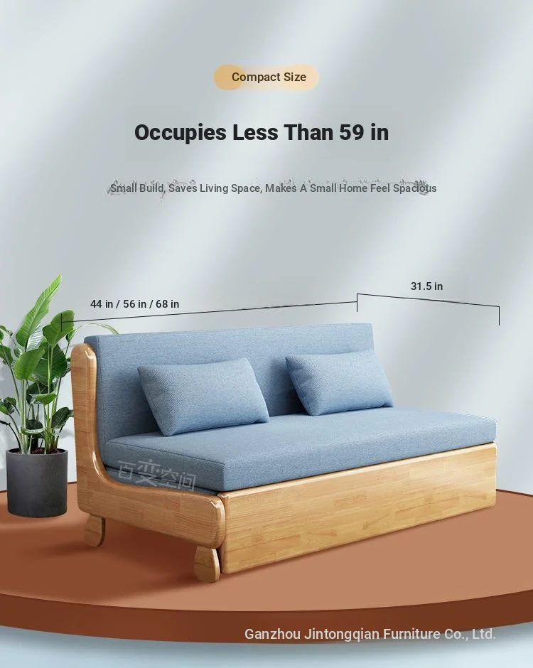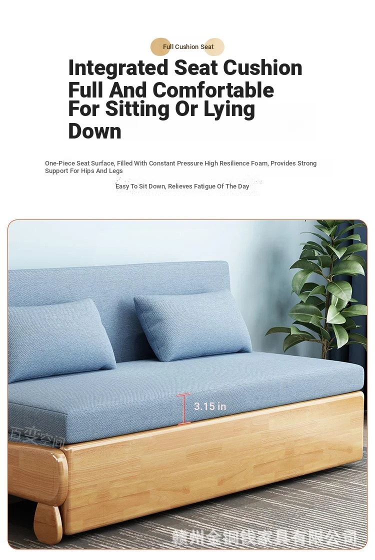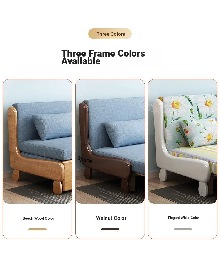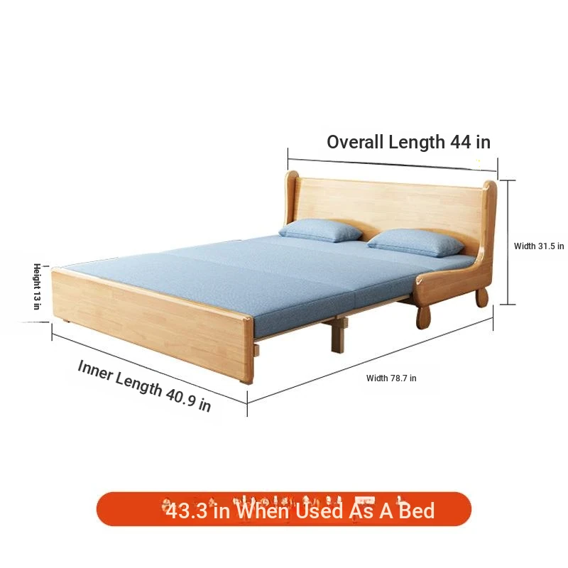 Minimalist Solid Wood Sofa Bed - Versatile Folding Design for Small Homes, Perfect for Living Rooms, Offices, and Balconies. Ideal Space-Saving Solution for Single Sleepers!