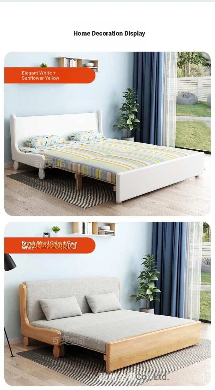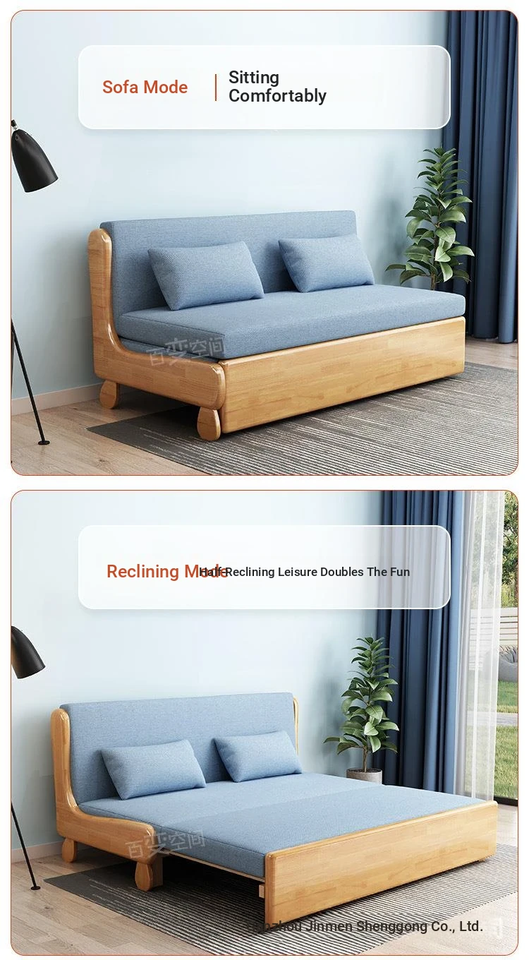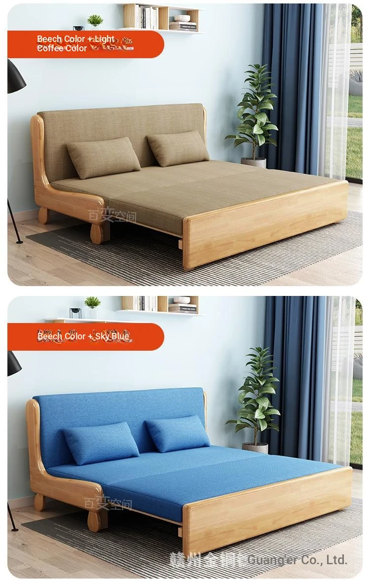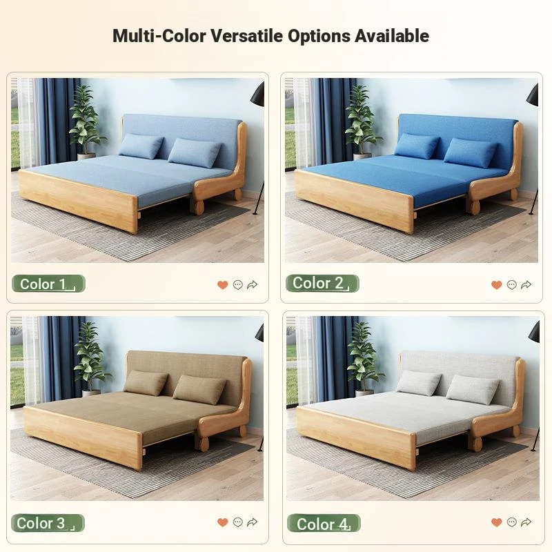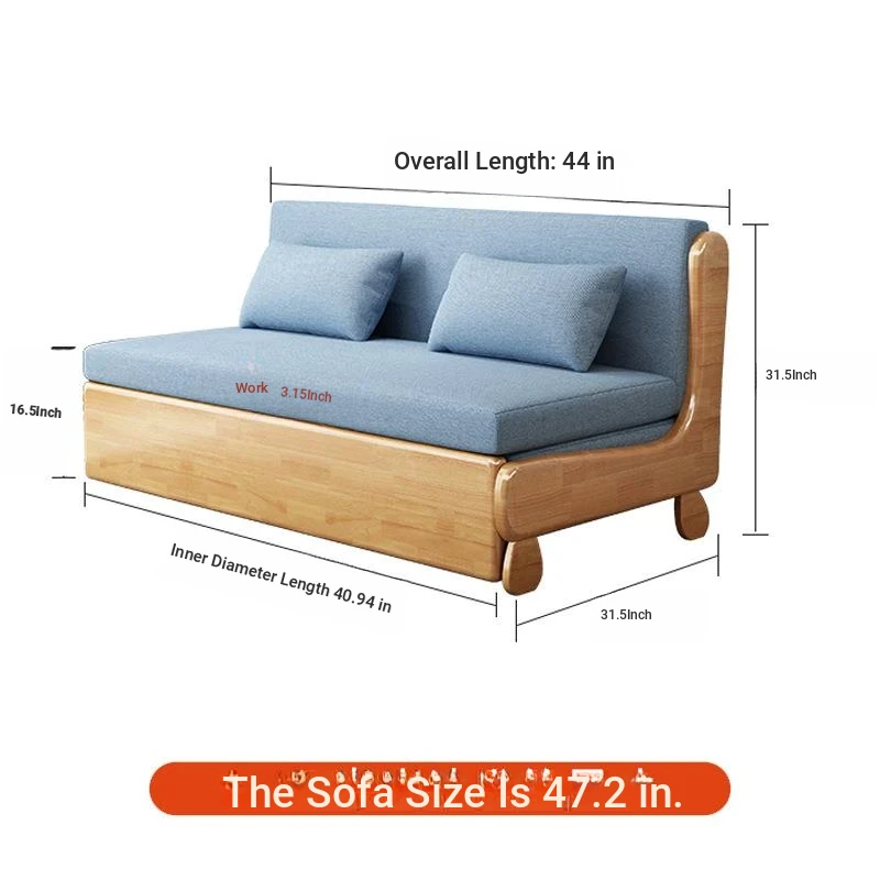 Minimalist Solid Wood Sofa Bed - Versatile Folding Design for Small Homes, Perfect for Living Rooms, Offices, and Balconies. Ideal Space-Saving Solution for Single Sleepers!