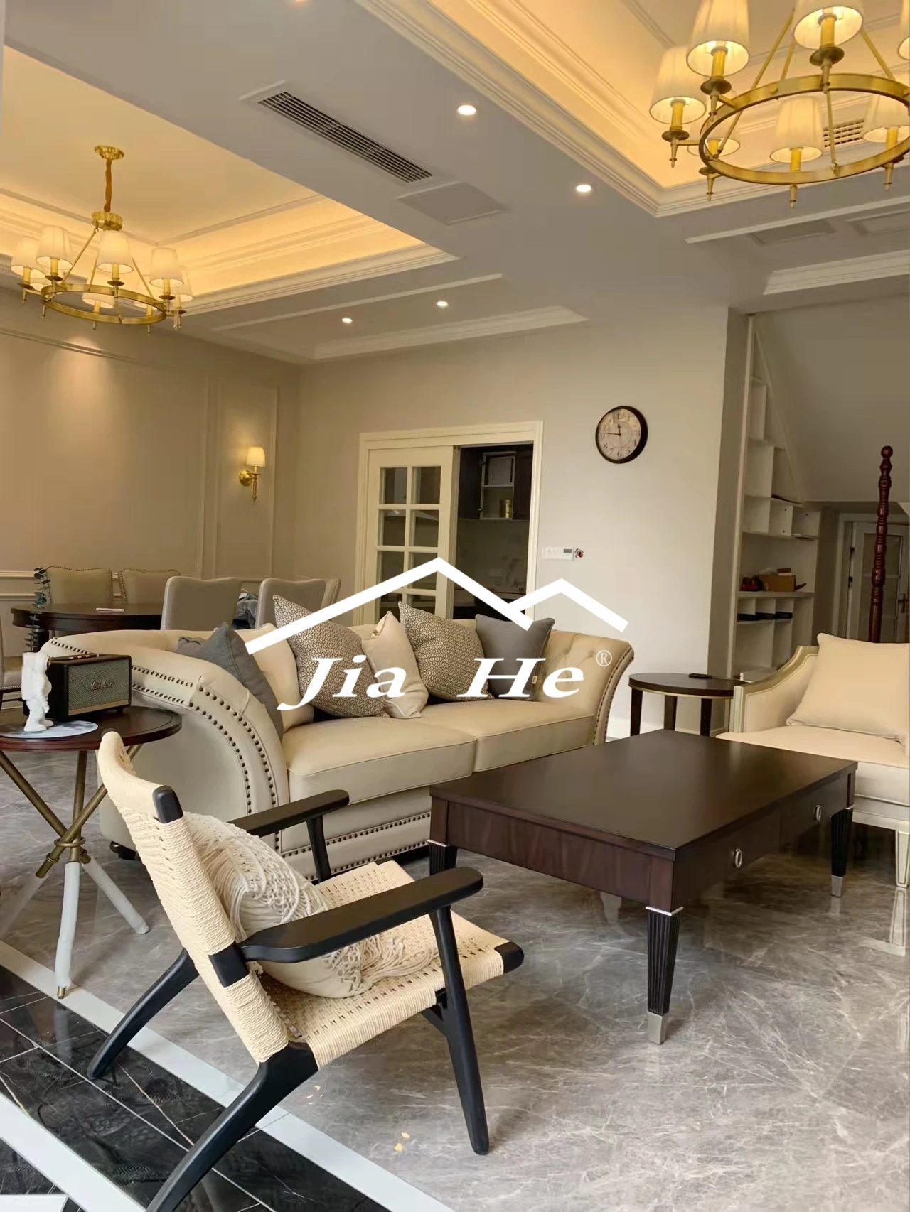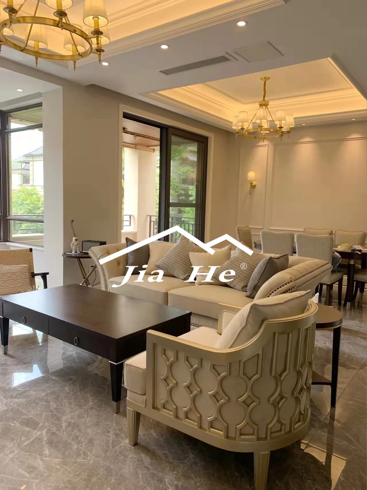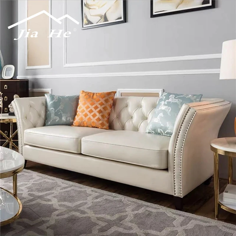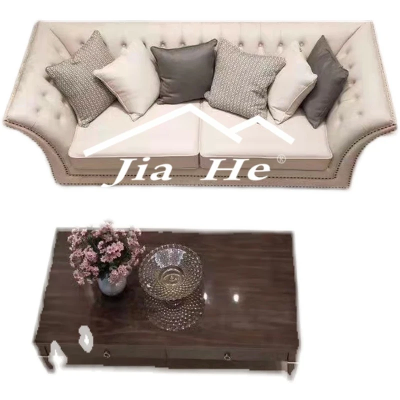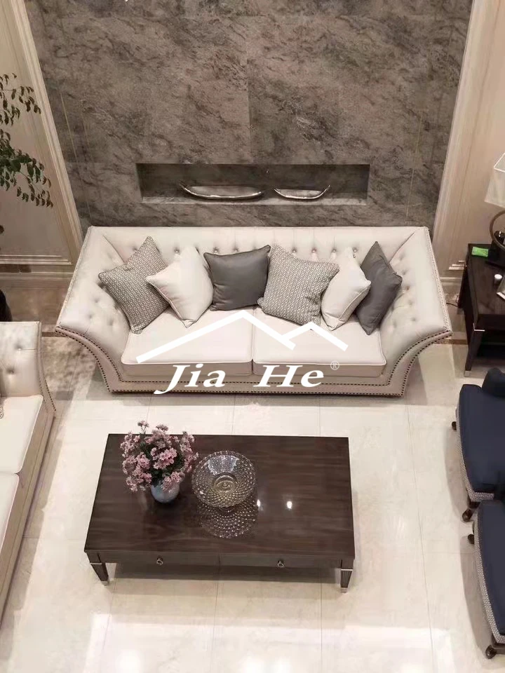 Modern American Living Room Furniture: Stylish Art Fabric & Leather Sofa with Decorative Buttons - Available in Single, Double, and Triple Seat Options for a Touch of Luxury and Comfort.