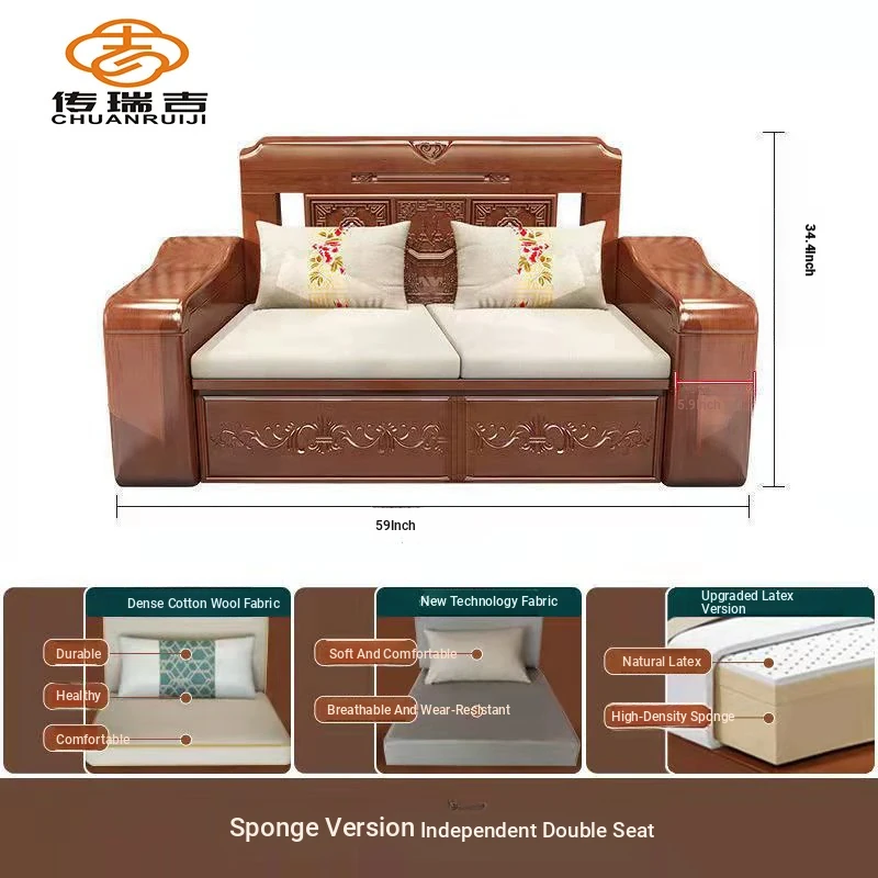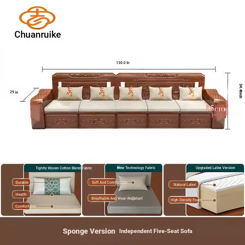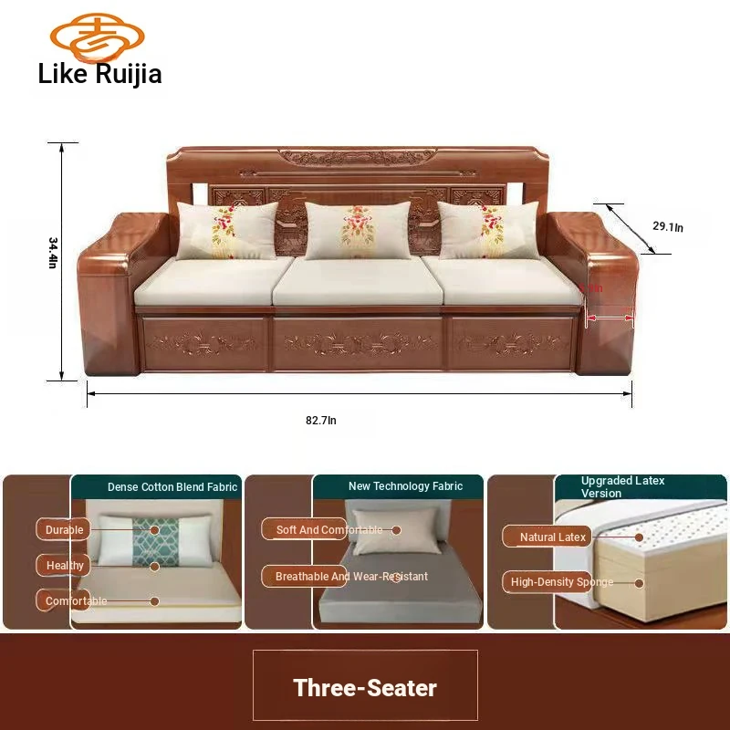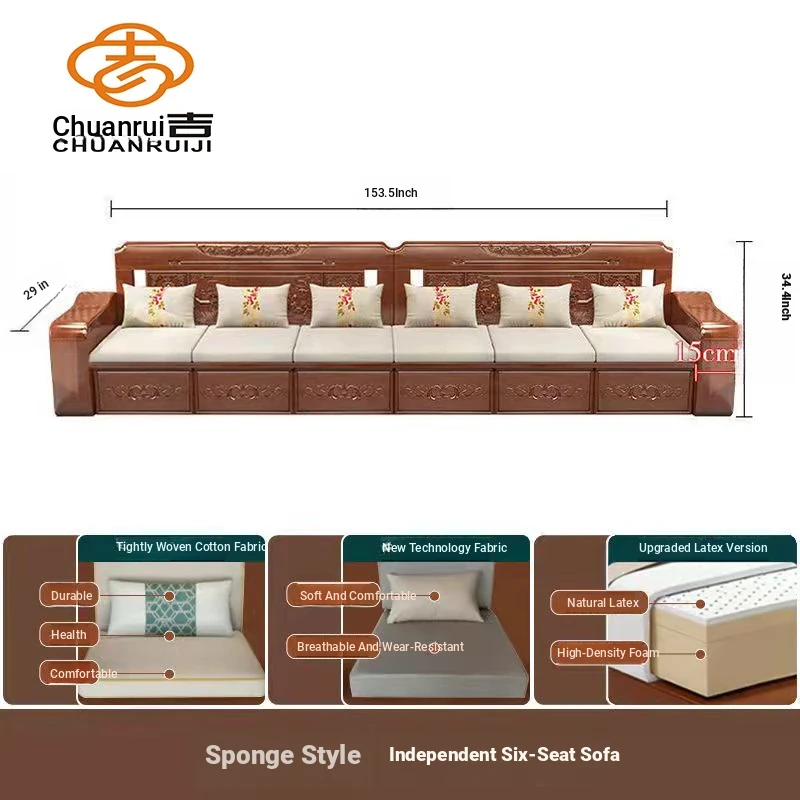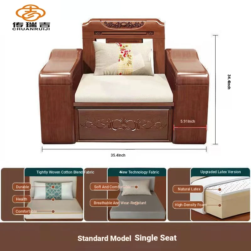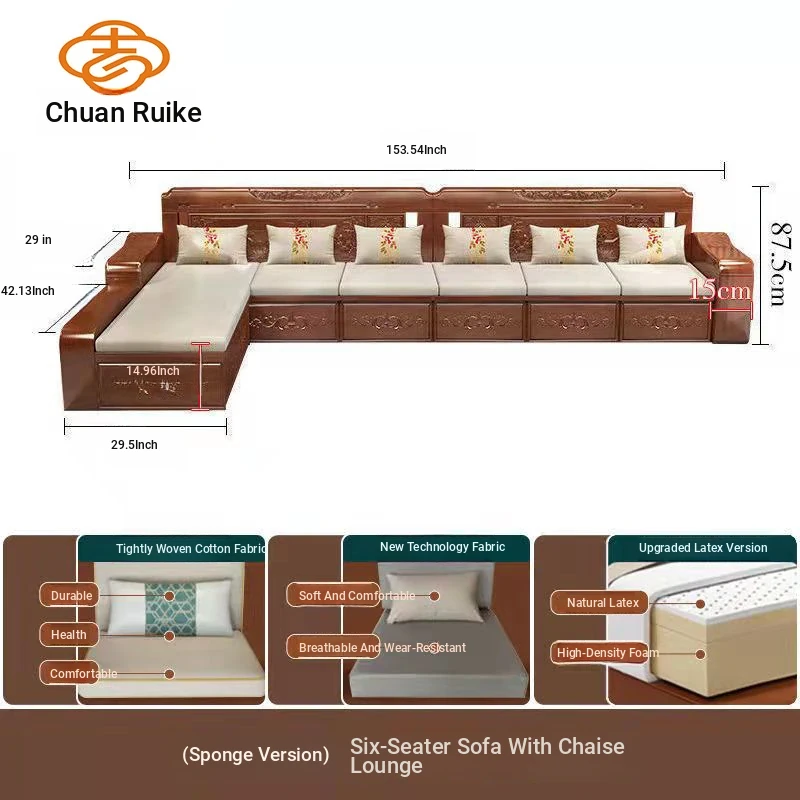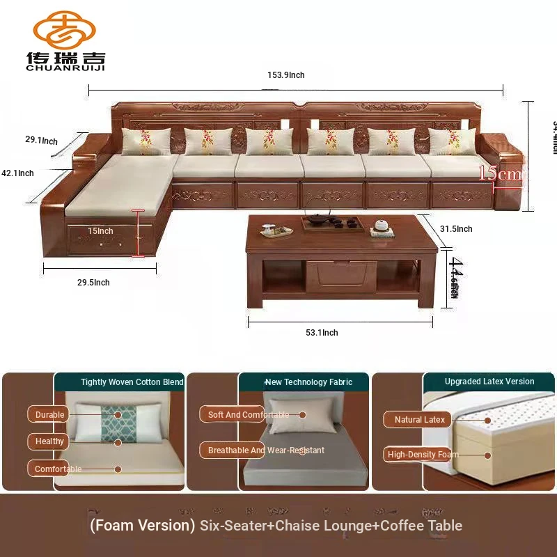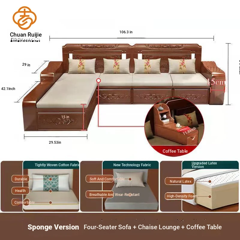 Modern Chinese Solid Wood Sofa Set – Minimalist Design for Spacious Villas, Perfect for Year-Round Use with Storage Chaise Lounge. Ideal for Stylish Living Rooms!