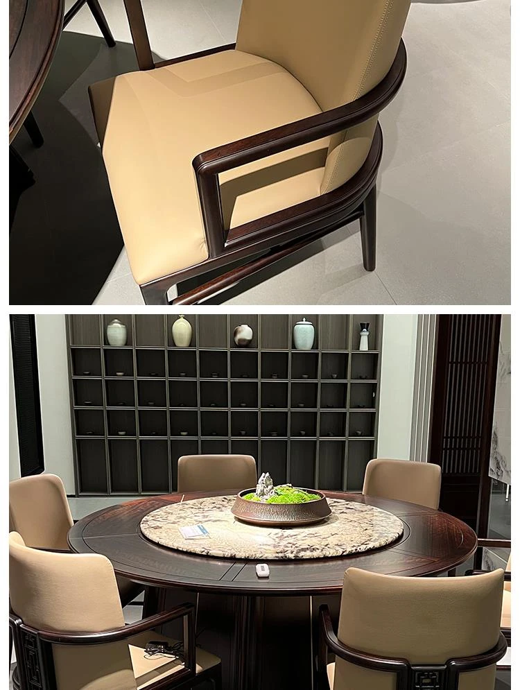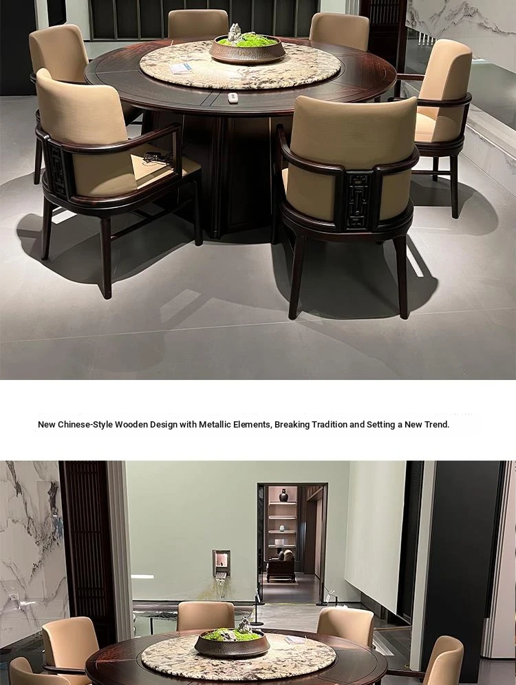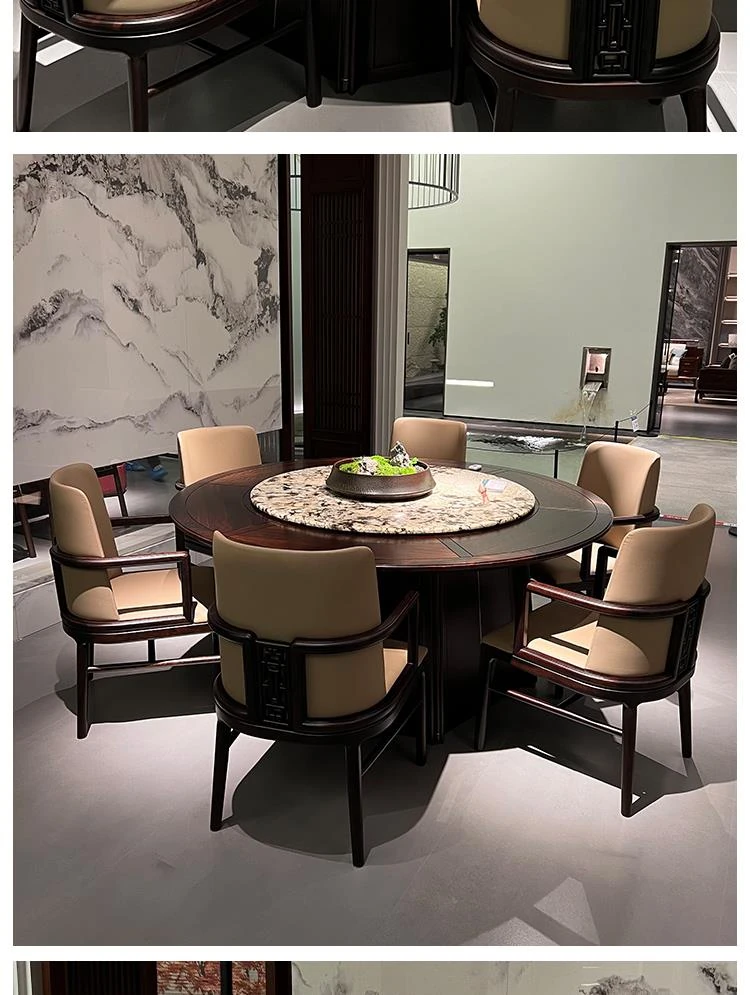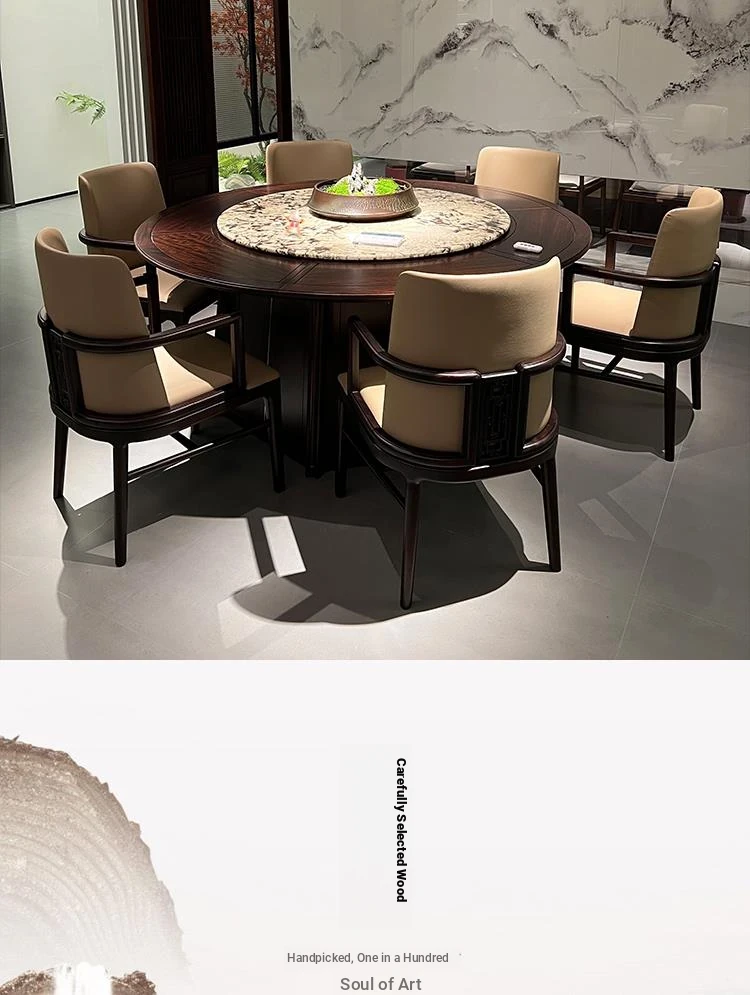 Modern Chinese Style Round Dining Table Set with Solid Black Walnut Wood - Perfect for Small to Medium Homes, Includes Turntable, Full Solid Wood Construction
