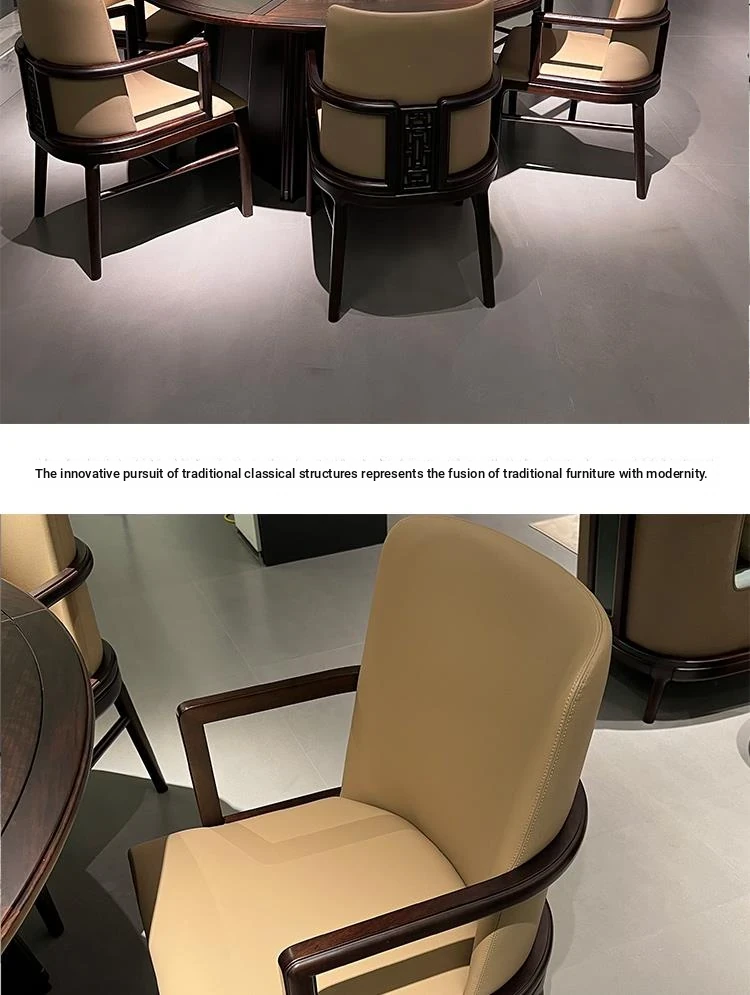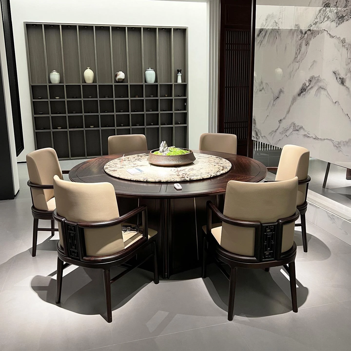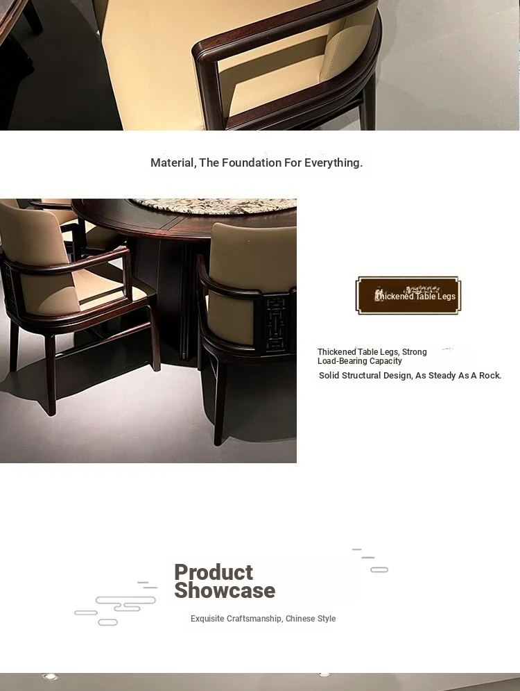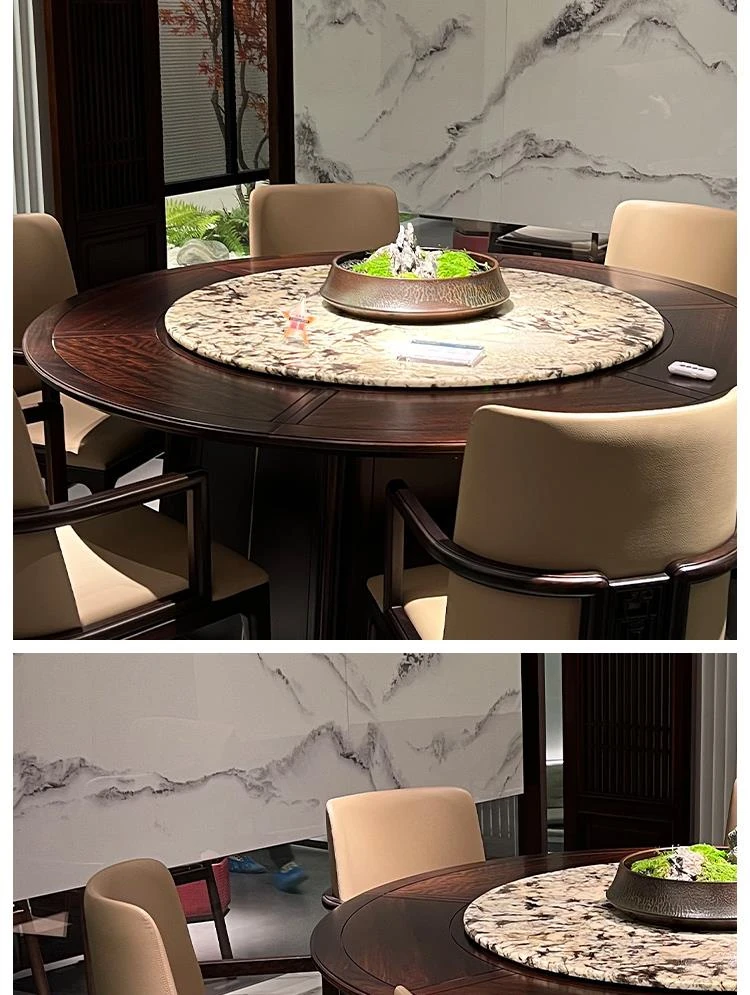 Modern Chinese Style Round Dining Table Set with Solid Black Walnut Wood - Perfect for Small to Medium Homes, Includes Turntable, Full Solid Wood Construction