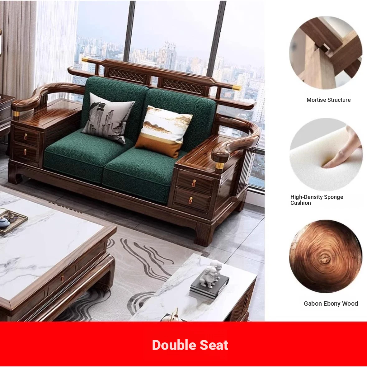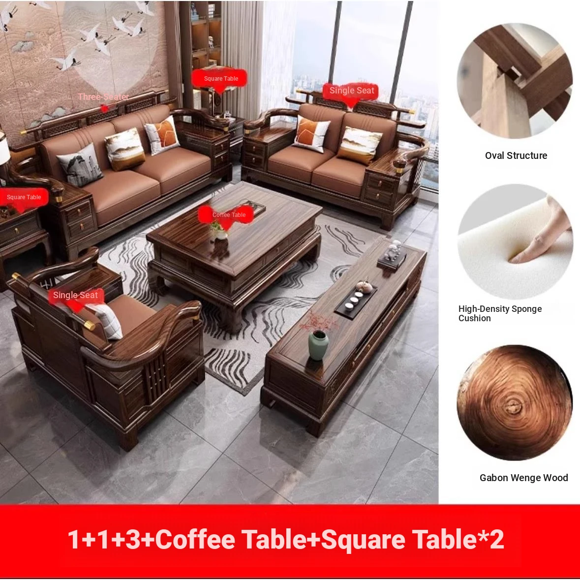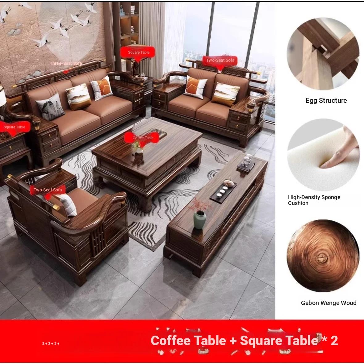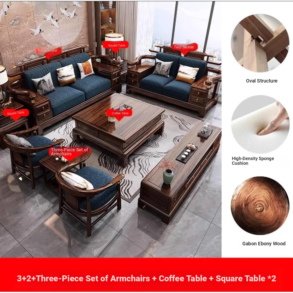 [Ebony wood] 2+2+3 + tea table + square * 2