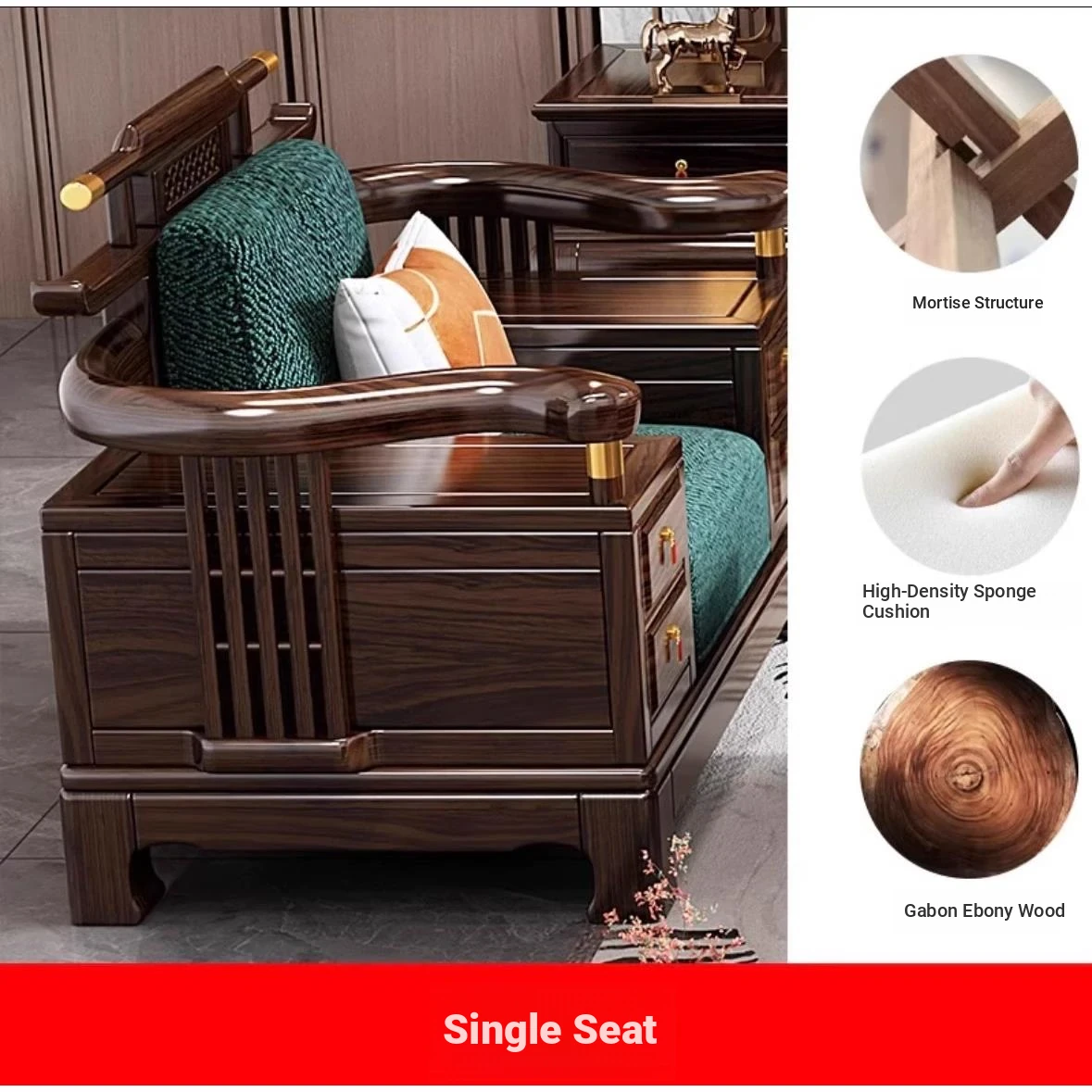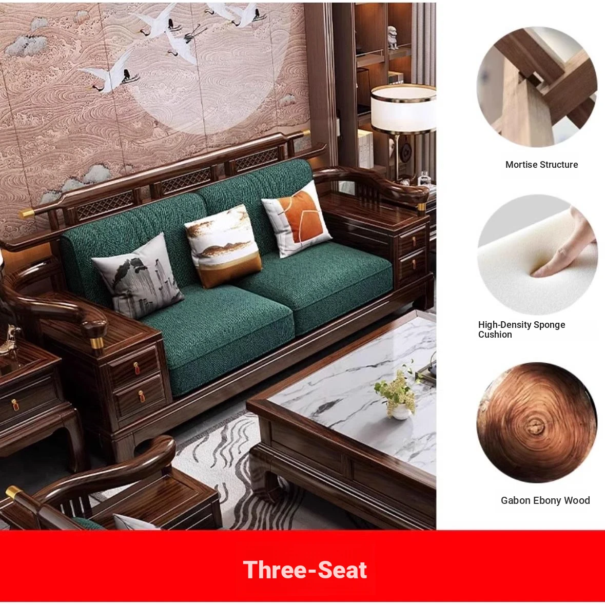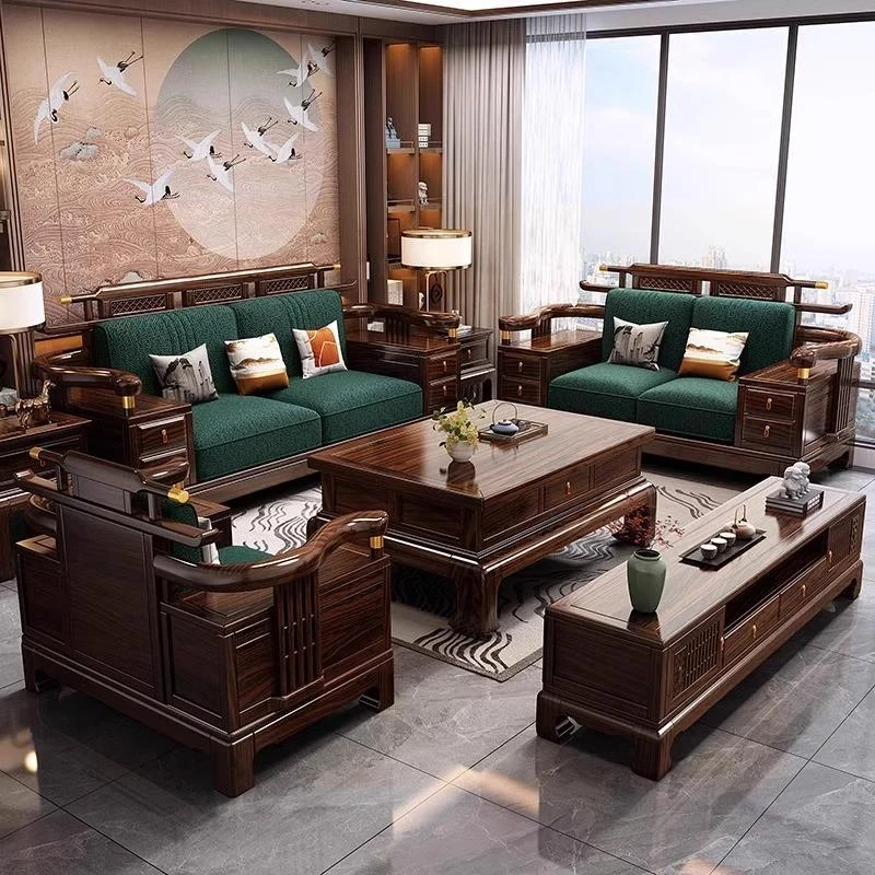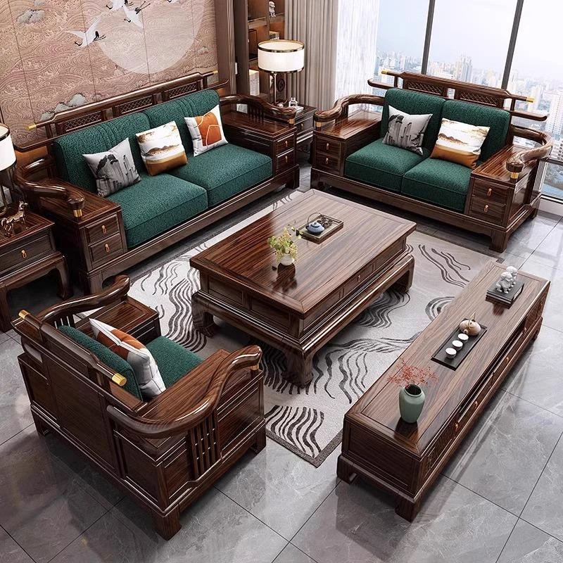 Modern Chinese-Style Solid Wood Sofa Set with Black Gold Wood - Versatile for All Seasons, Perfect for Any Living Room Size, Elegantly Luxurious and Contemporary Design