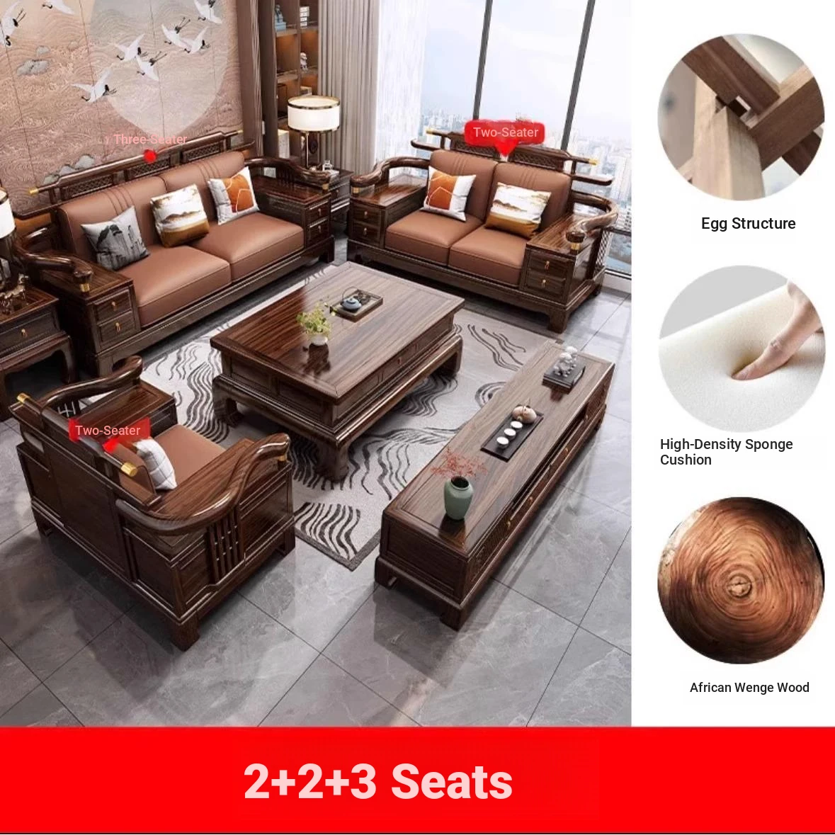 [Ebony wood] 2+2+3 + tea table + square * 2 + TV cabinet