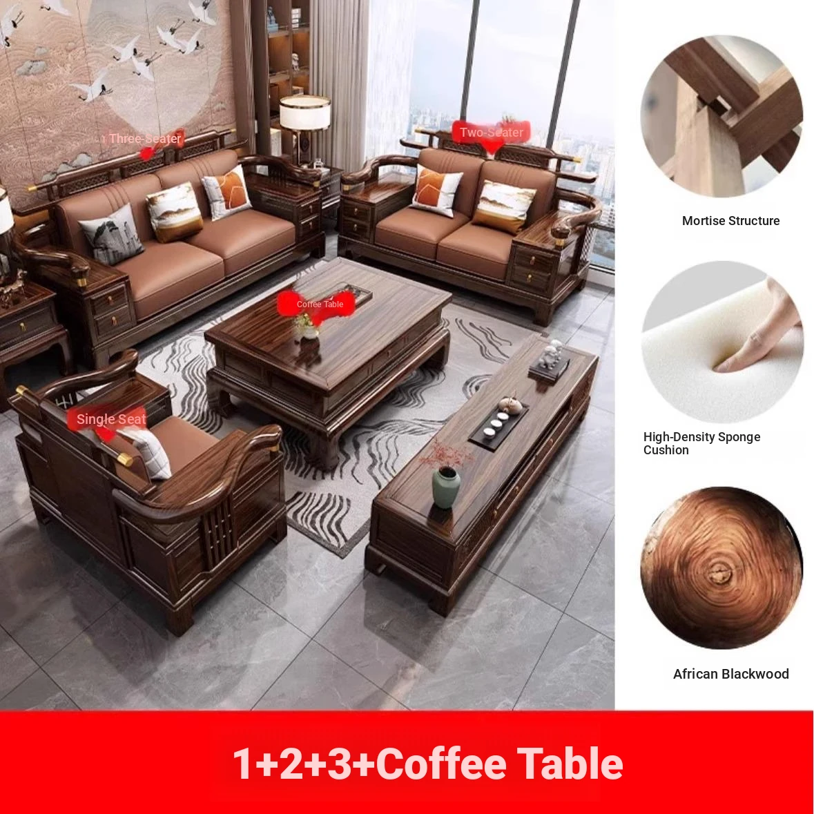 [Ebony wood] 1+2+3 + tea table + square * 2