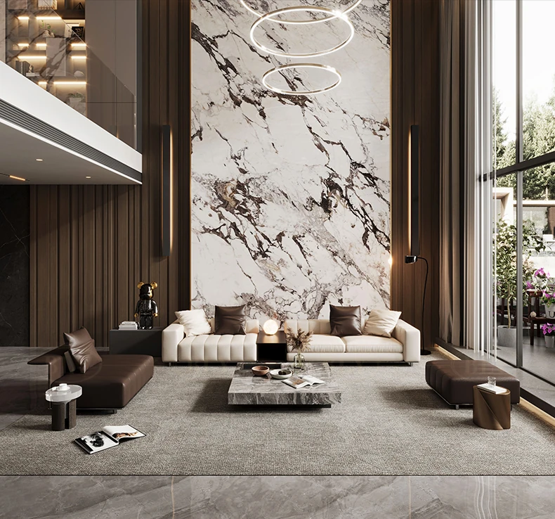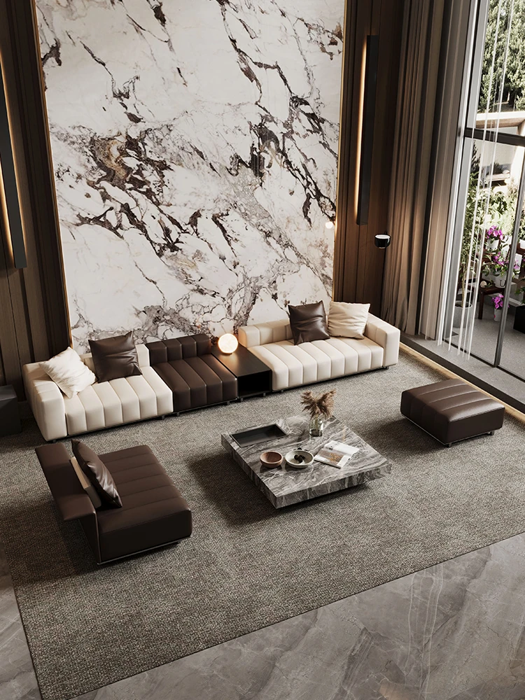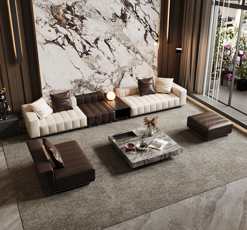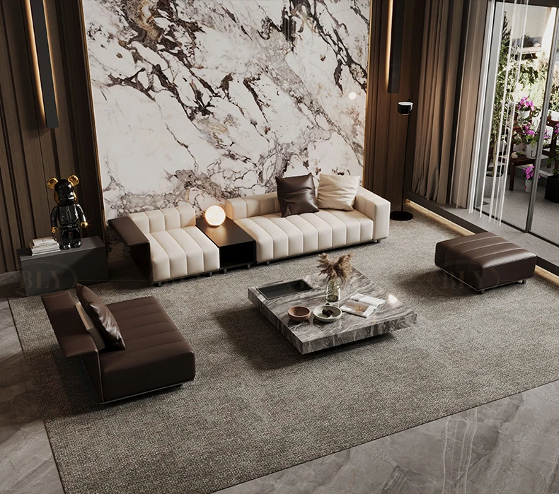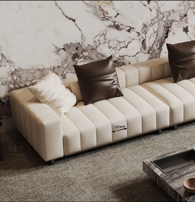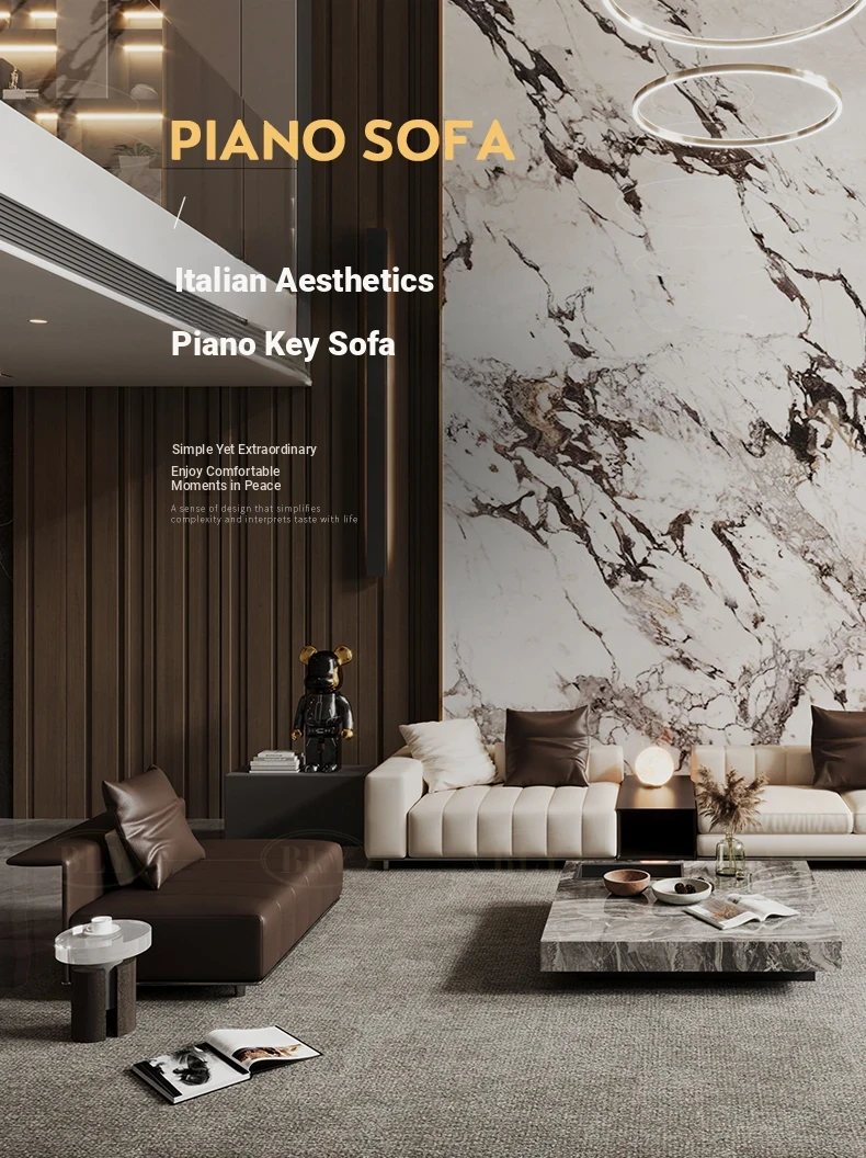 Modern Minimalist Italian Leather Sofa Set for Small Spaces - Genuine Top-Grain Piano Key Design for Your Living Room