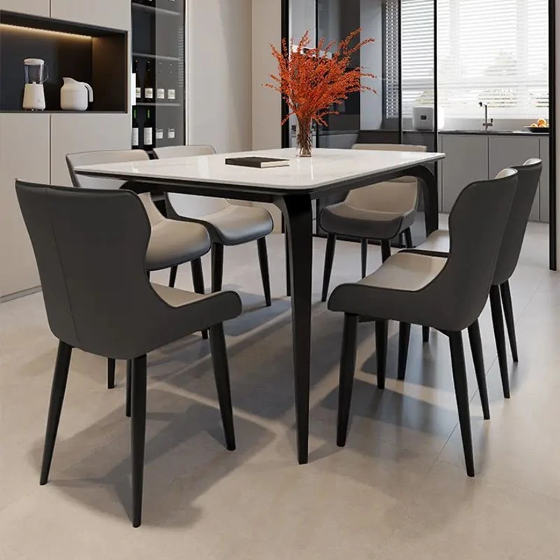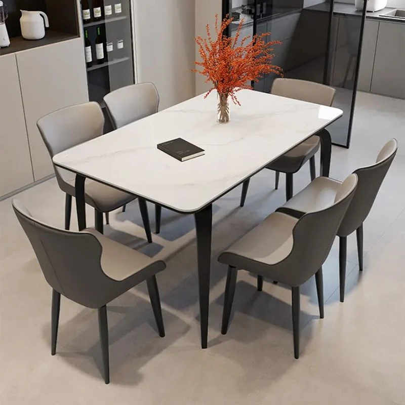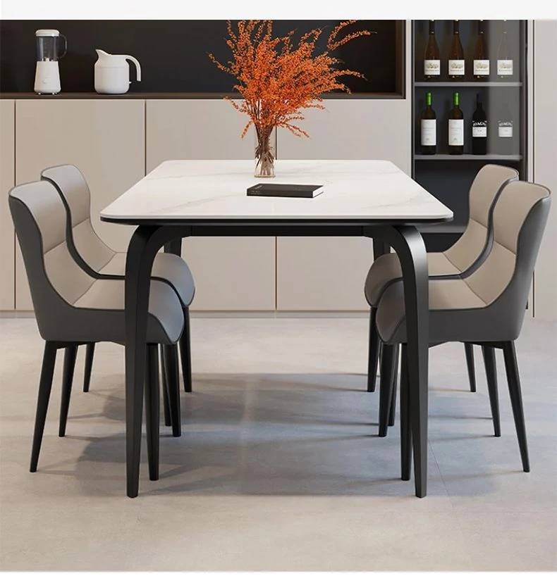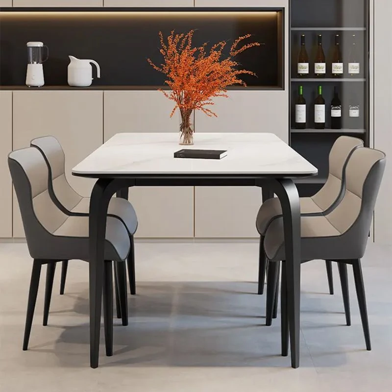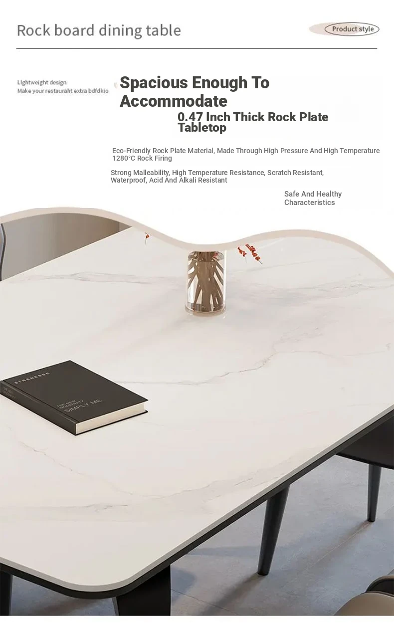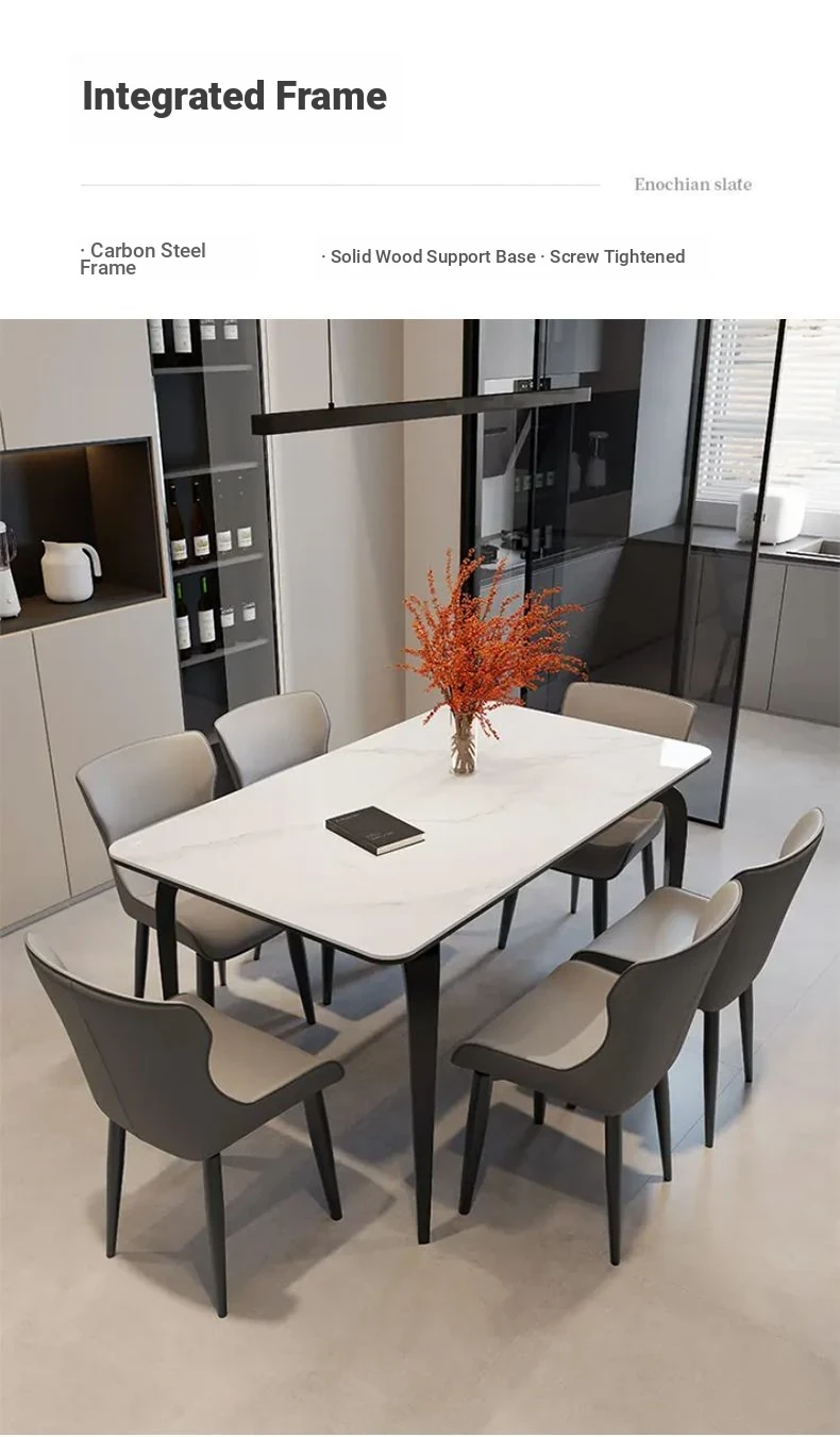 Modern Minimalist Long Dining Table - Elegant Italian Rectangular Dining Table with Rock Plate for Home Use, Perfect for Luxurious Dining Experiences.