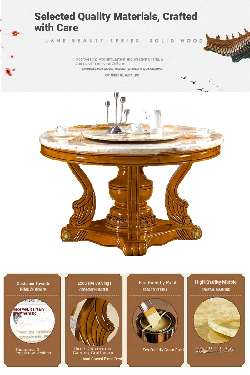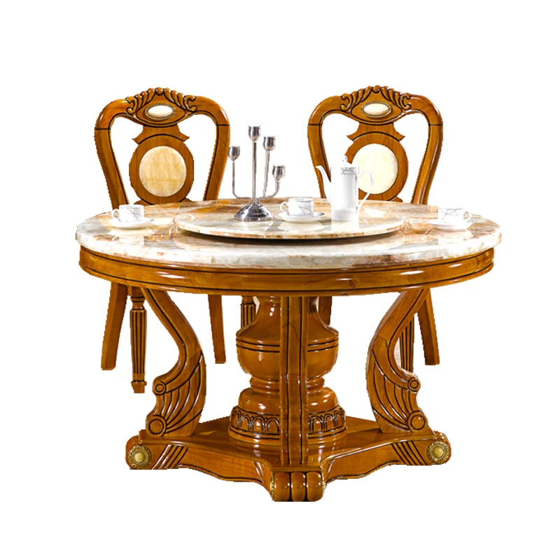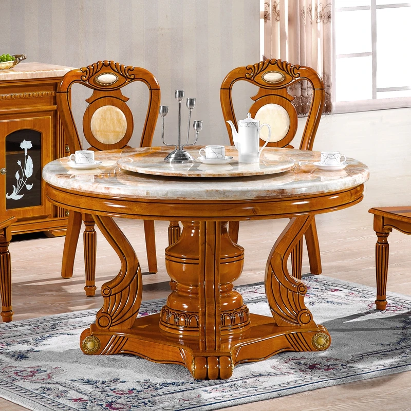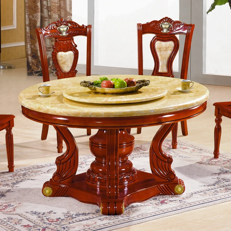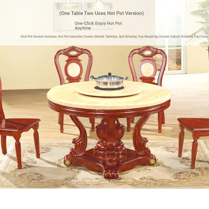 Modern Minimalist Natural Marble Dining Table with Solid Wood Round Design - Perfect for Family Meals and Hot Pot Gatherings - Includes Chairs and Rotating Base for Ultimate Convenience