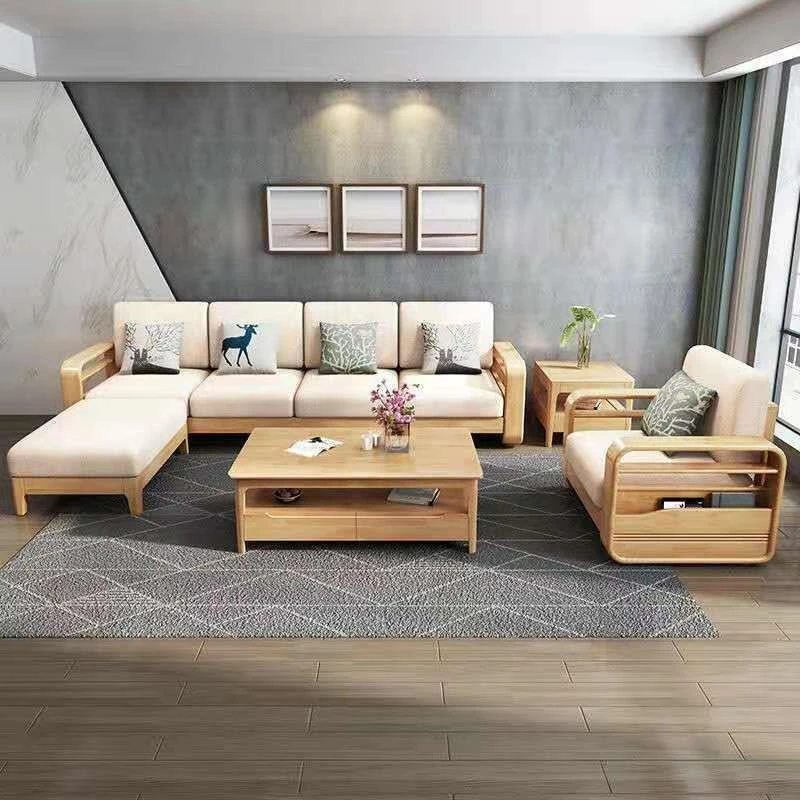 Modern Minimalist Solid Wood Sofa Set for Living Room – Space-Saving Single, Double, and Triple Seater Options, Perfect for Small and Large Spaces, Affordable Sofa Bed Solution