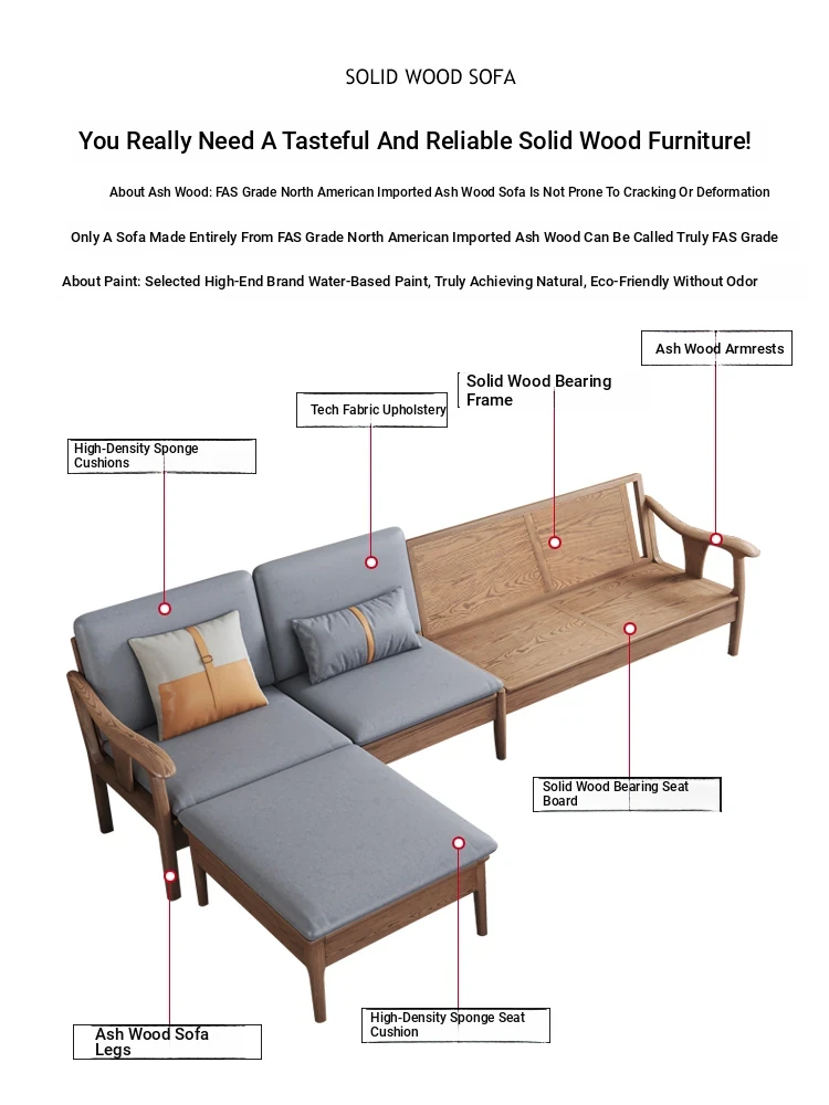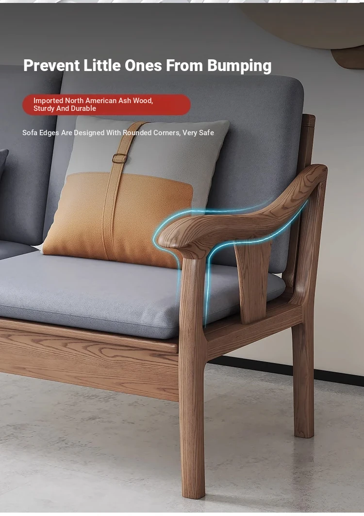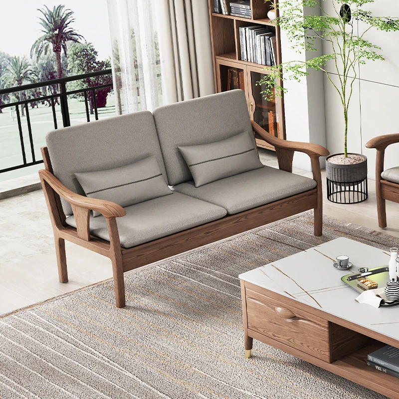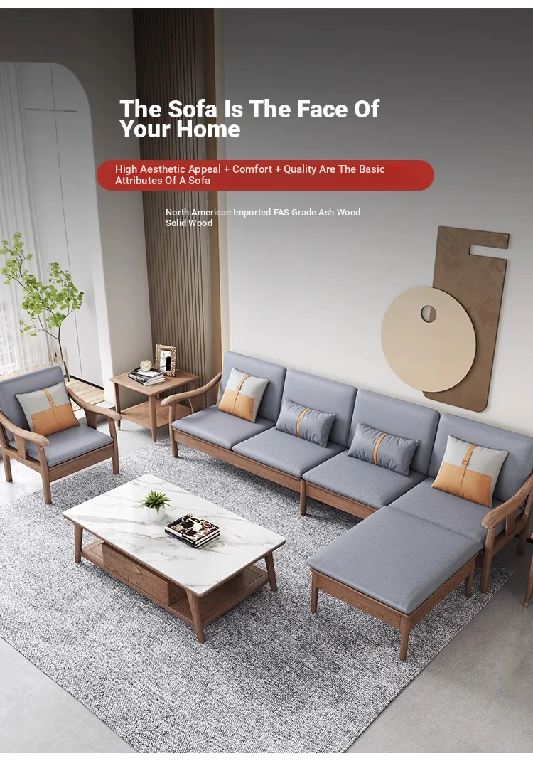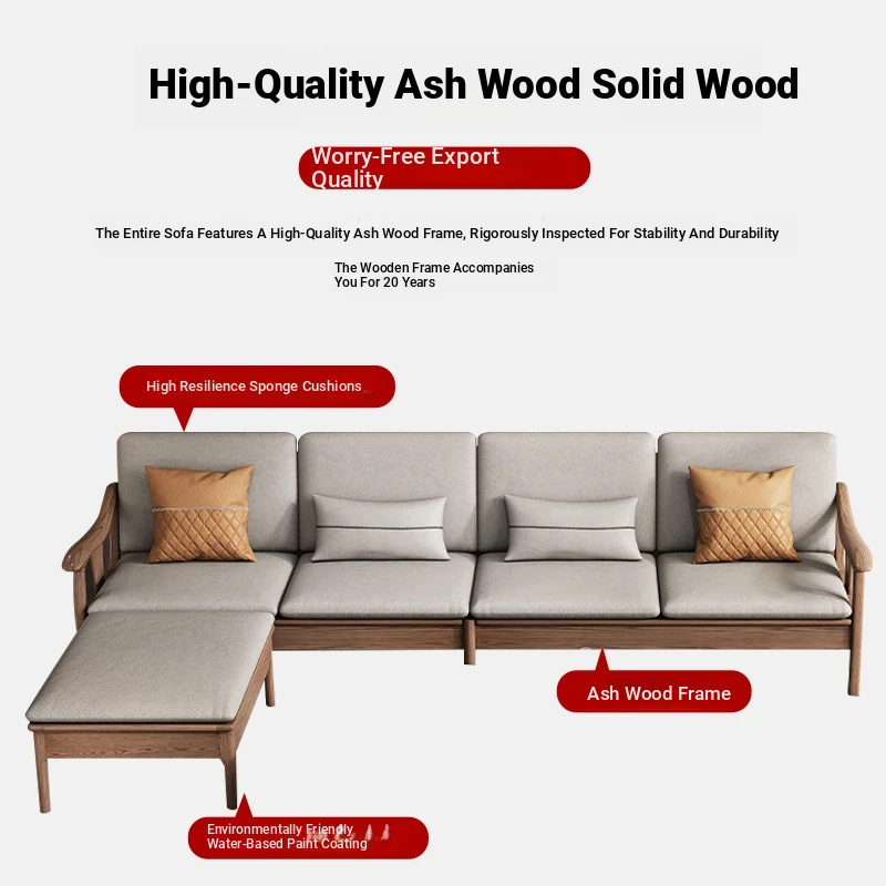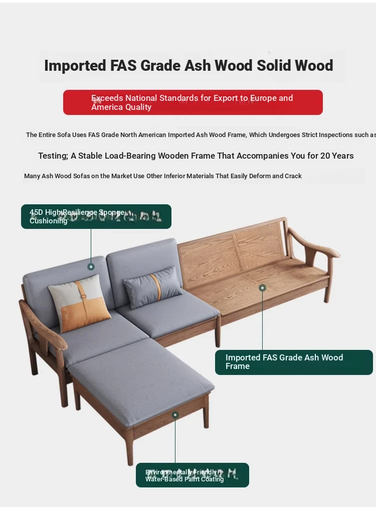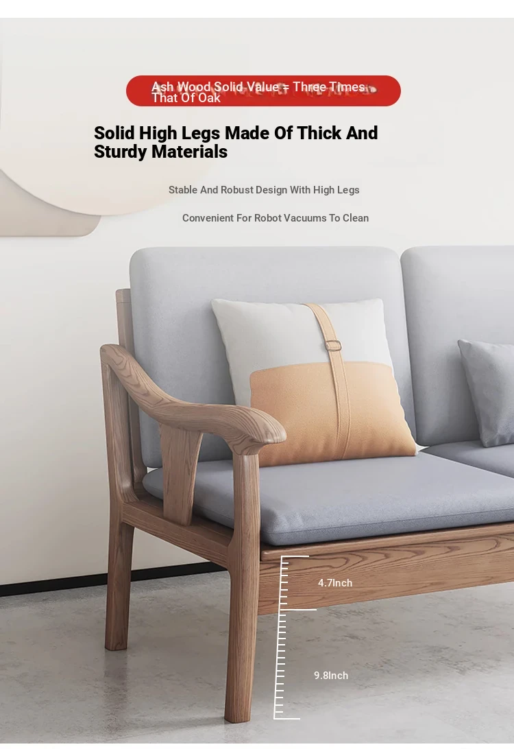 Modern Minimalist White Ash Solid Wood Sofa - Nordic Style Fabric Sectional for Small Living Rooms, Versatile for All Seasons