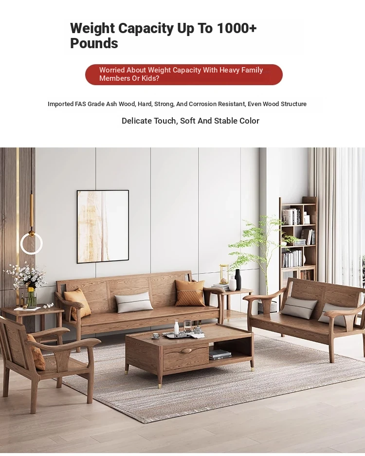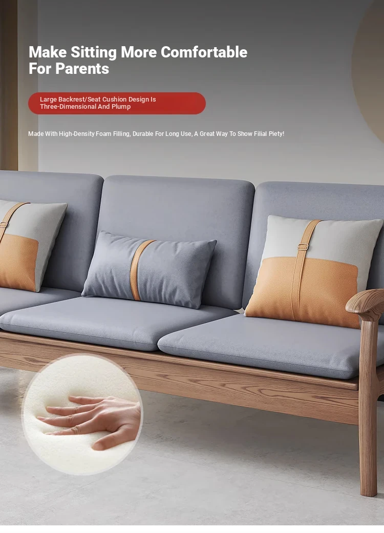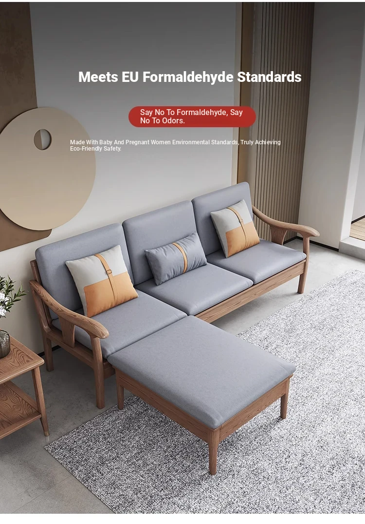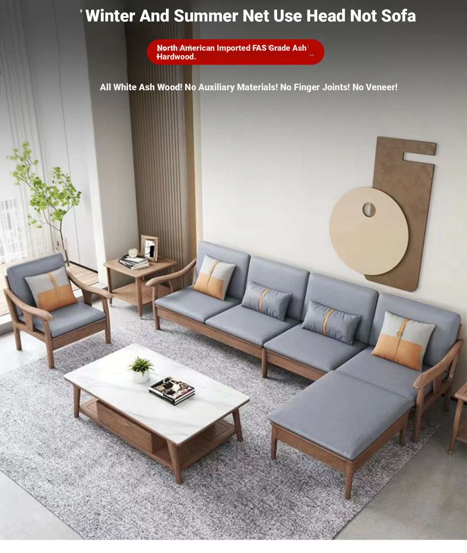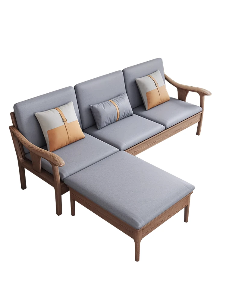 Modern Minimalist White Ash Solid Wood Sofa - Nordic Style Fabric Sectional for Small Living Rooms, Versatile for All Seasons