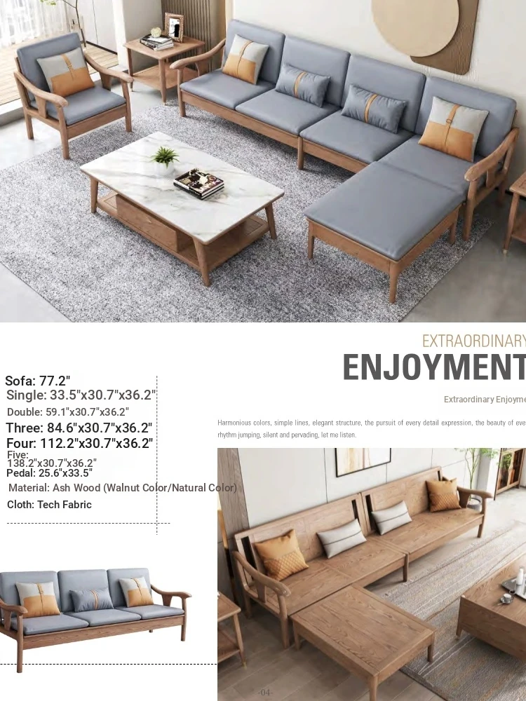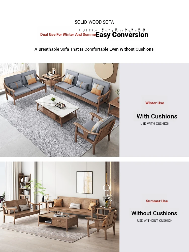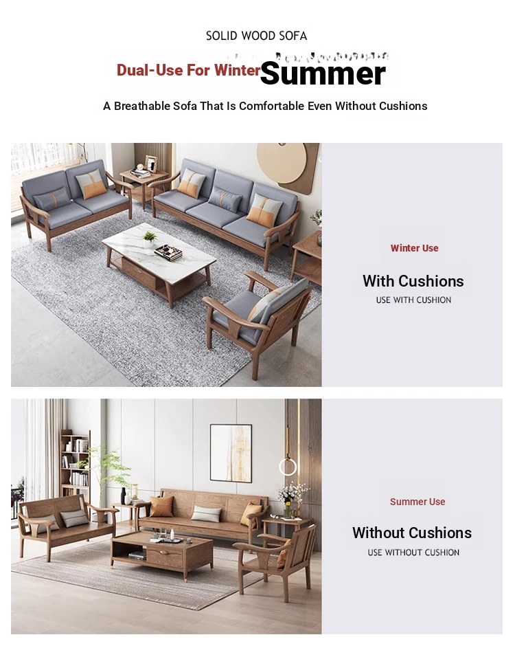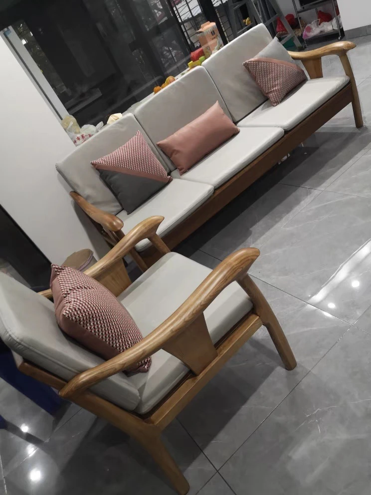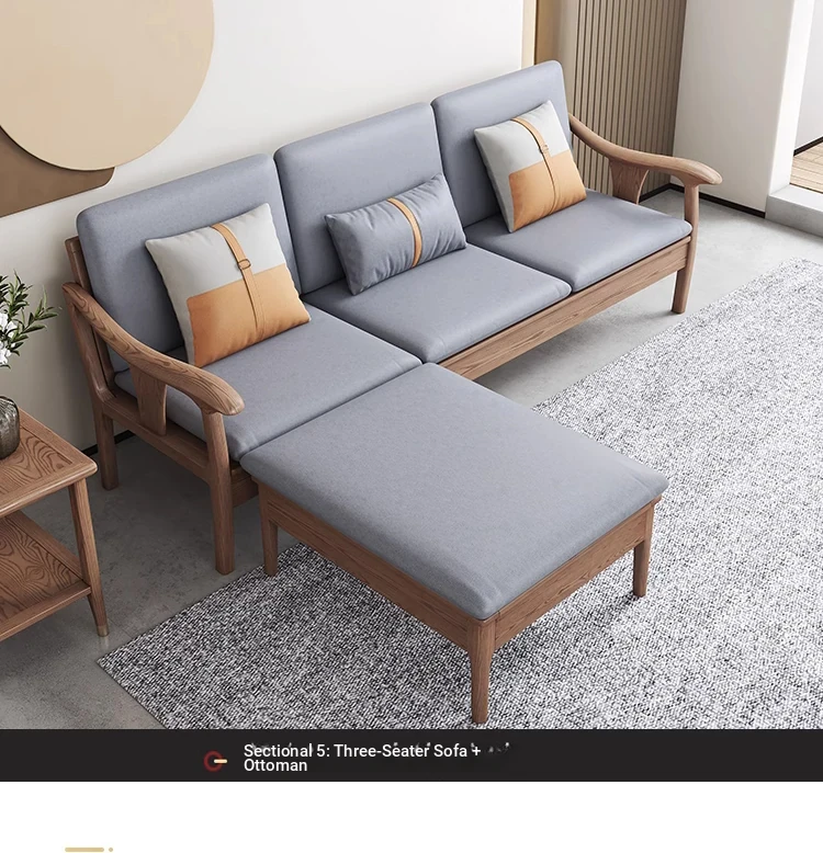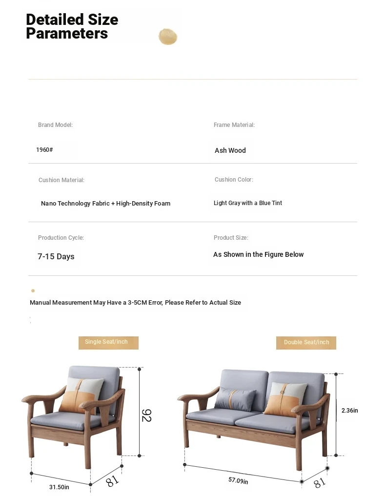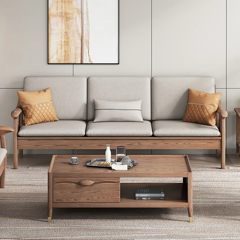 Modern Minimalist White Ash Solid Wood Sofa - Nordic Style Fabric Sectional for Small Living Rooms, Versatile for All Seasons