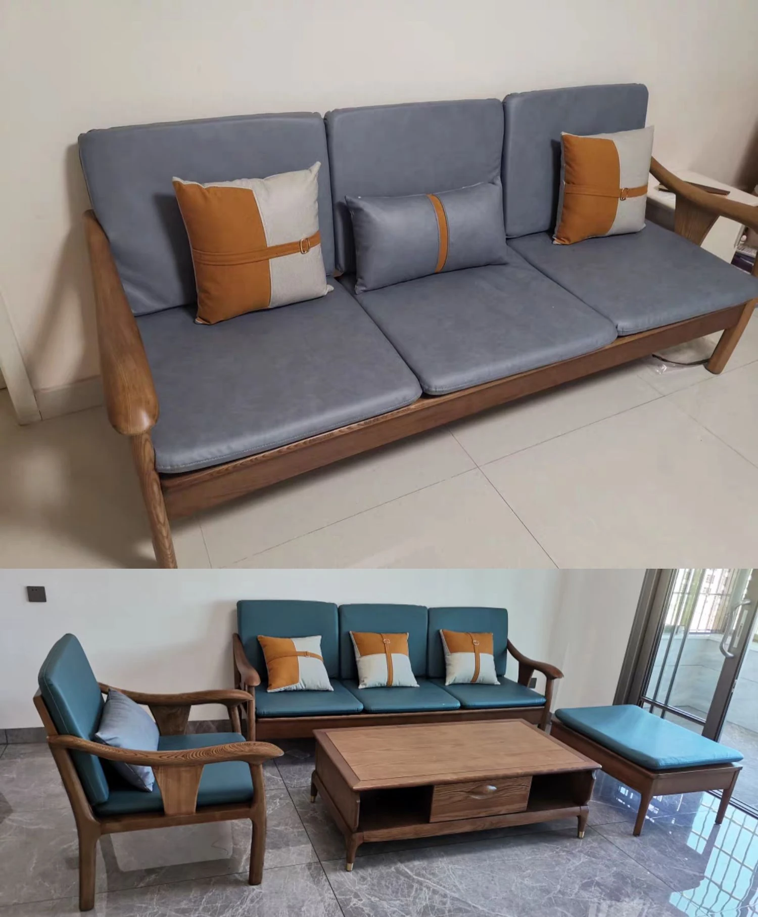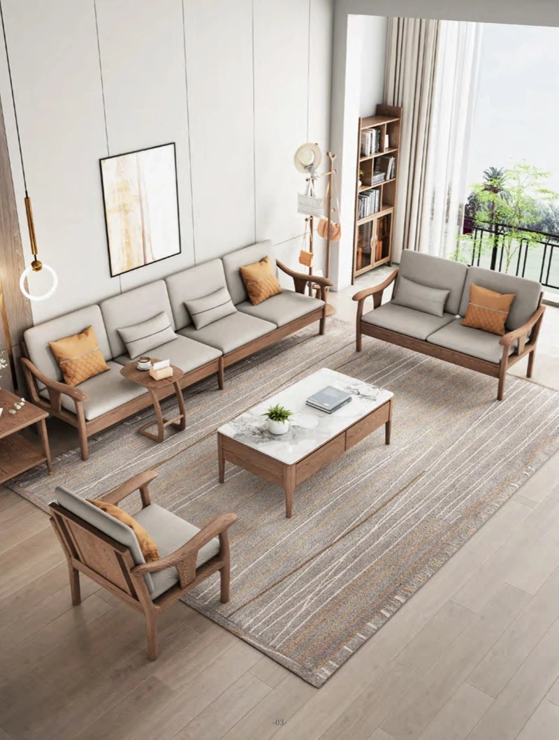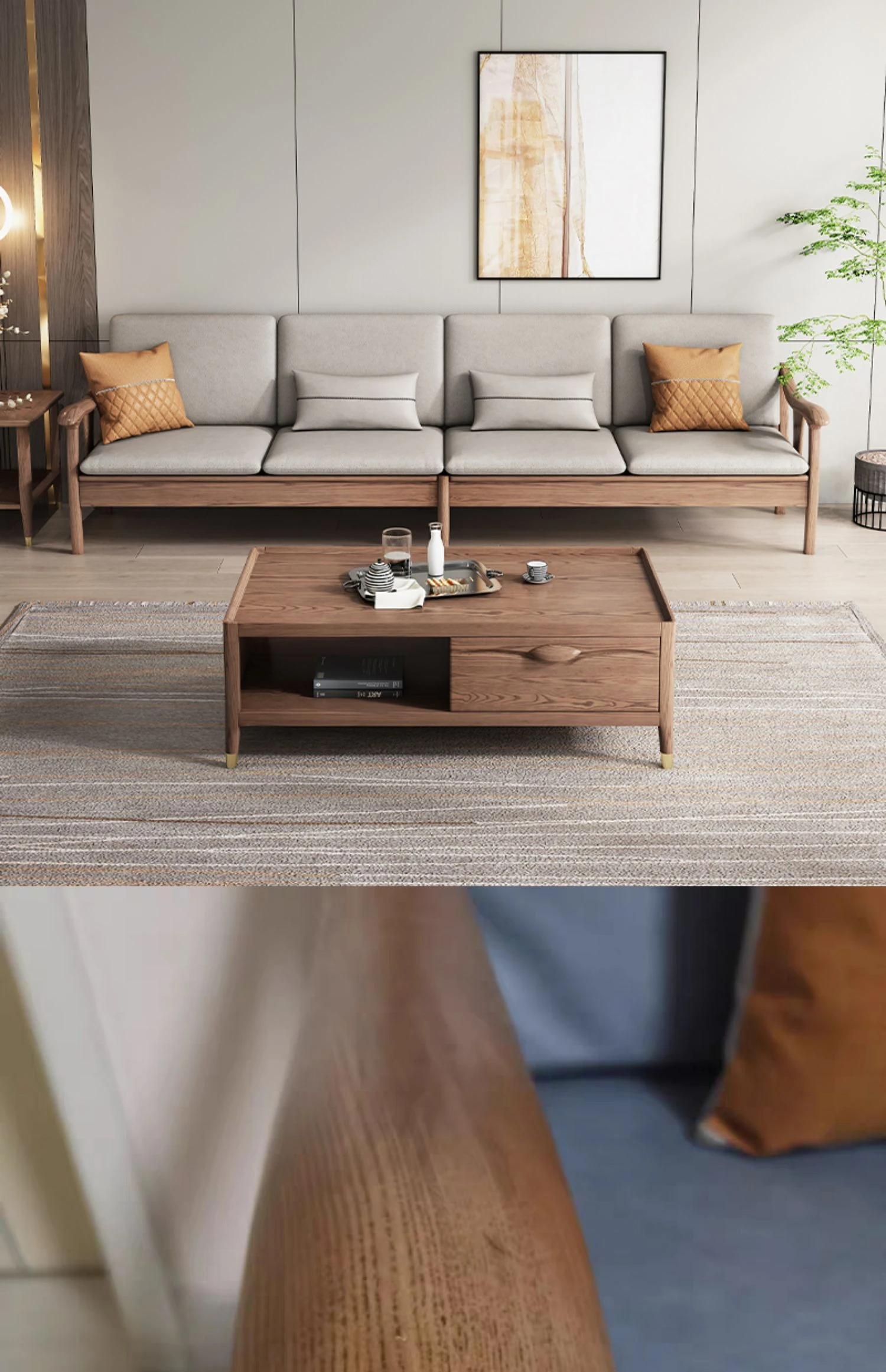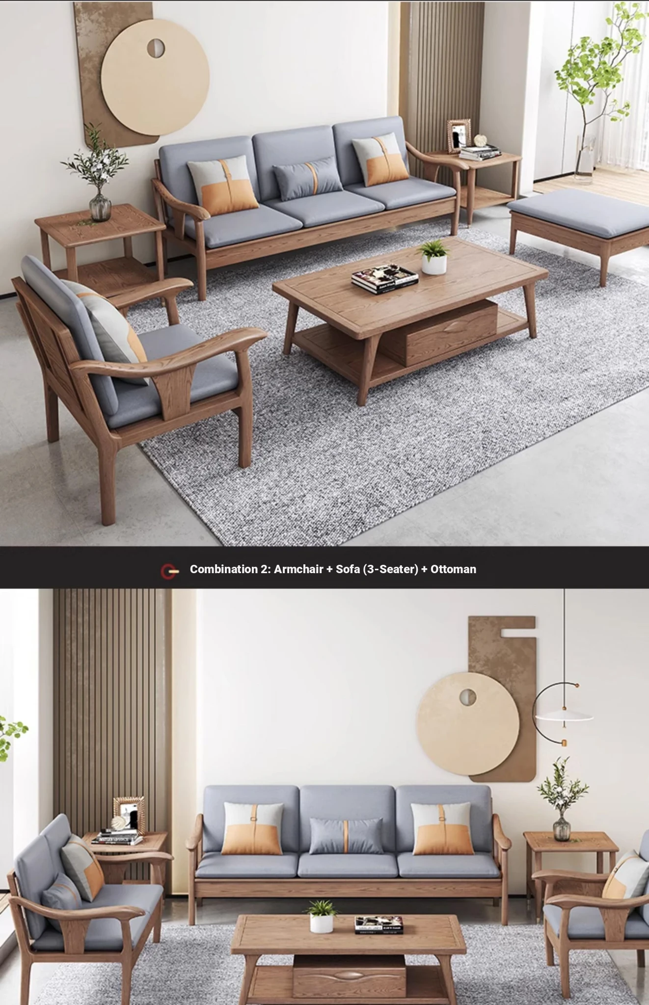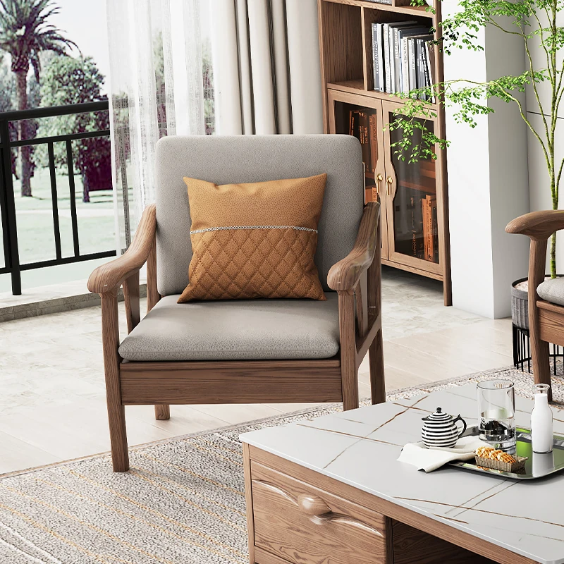 Modern Minimalist White Ash Solid Wood Sofa - Nordic Style Fabric Sectional for Small Living Rooms, Versatile for All Seasons