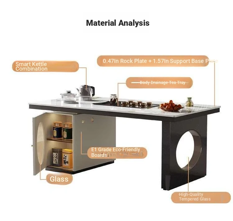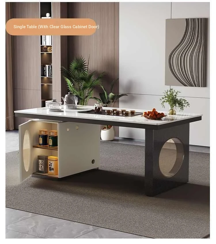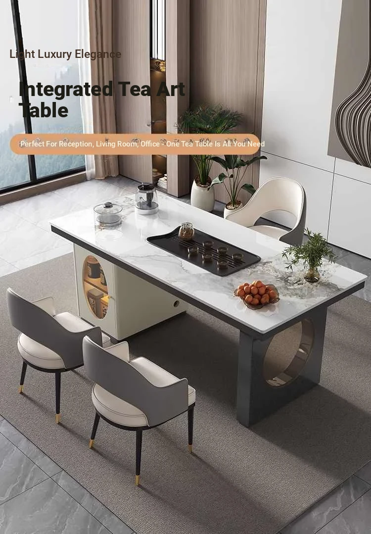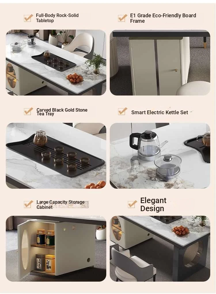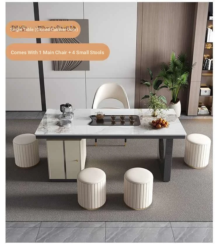 Modern Stone Tea Table and Chair Set - Elegant All-in-One Tea Station for Office and Home - Perfect for Brewing Tea on Your Balcony