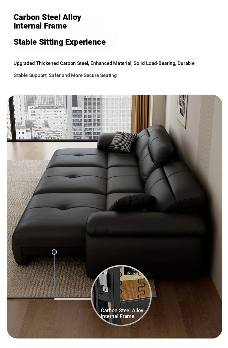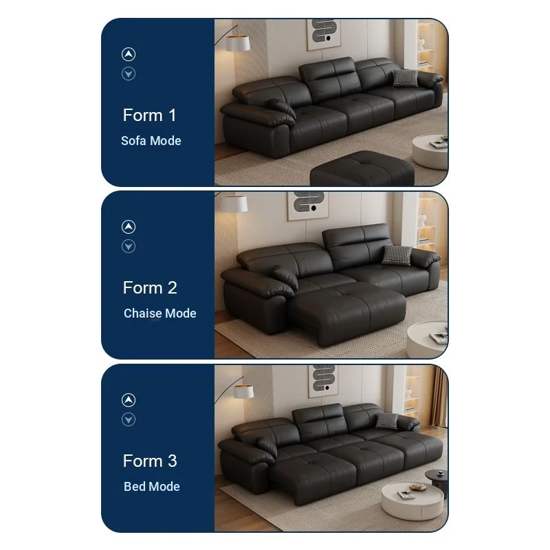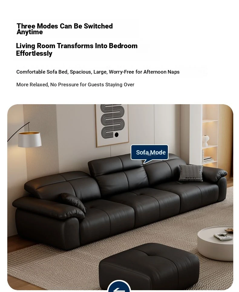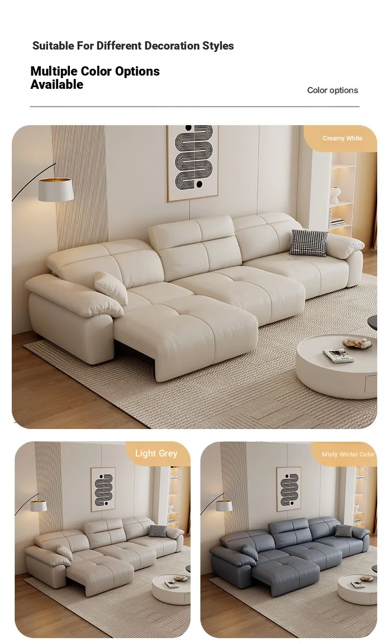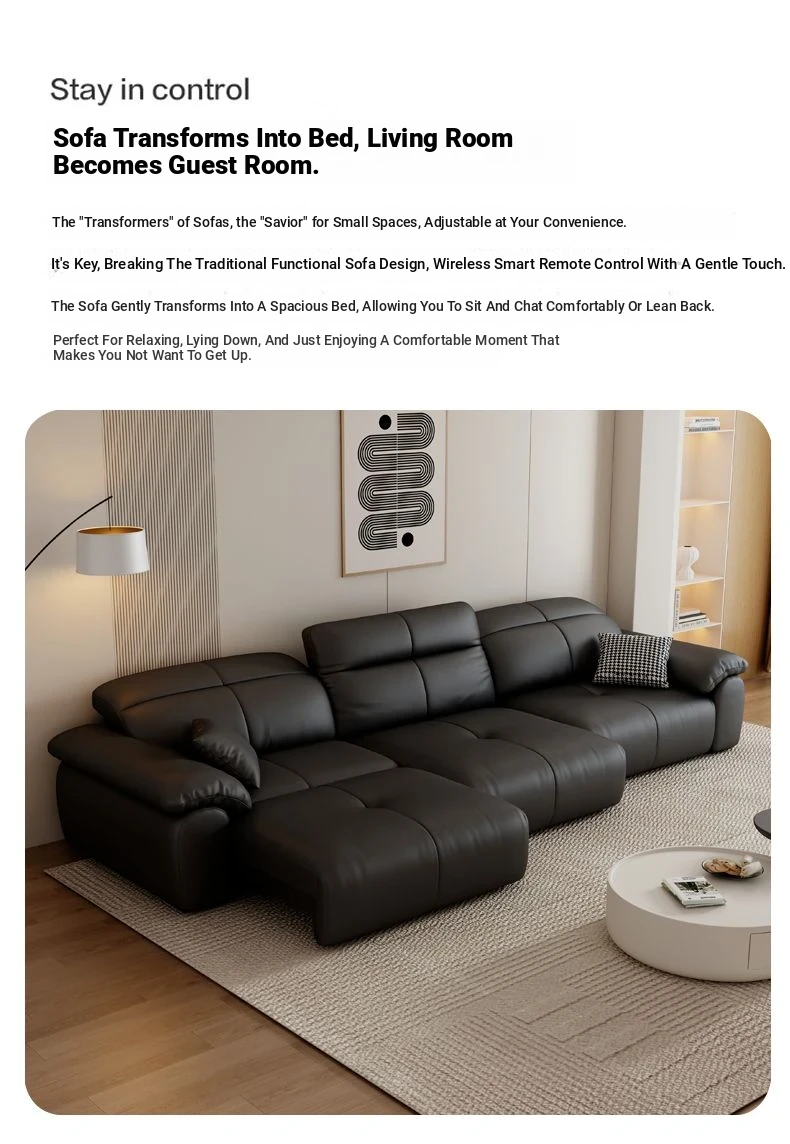 Multifunctional Electric Sofa Bed - Foldable, Extendable Living Room Couch with Zero Wall Space, Luxurious Cream Leather Upholstery