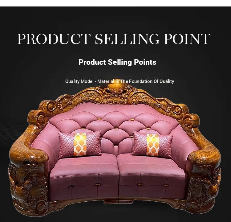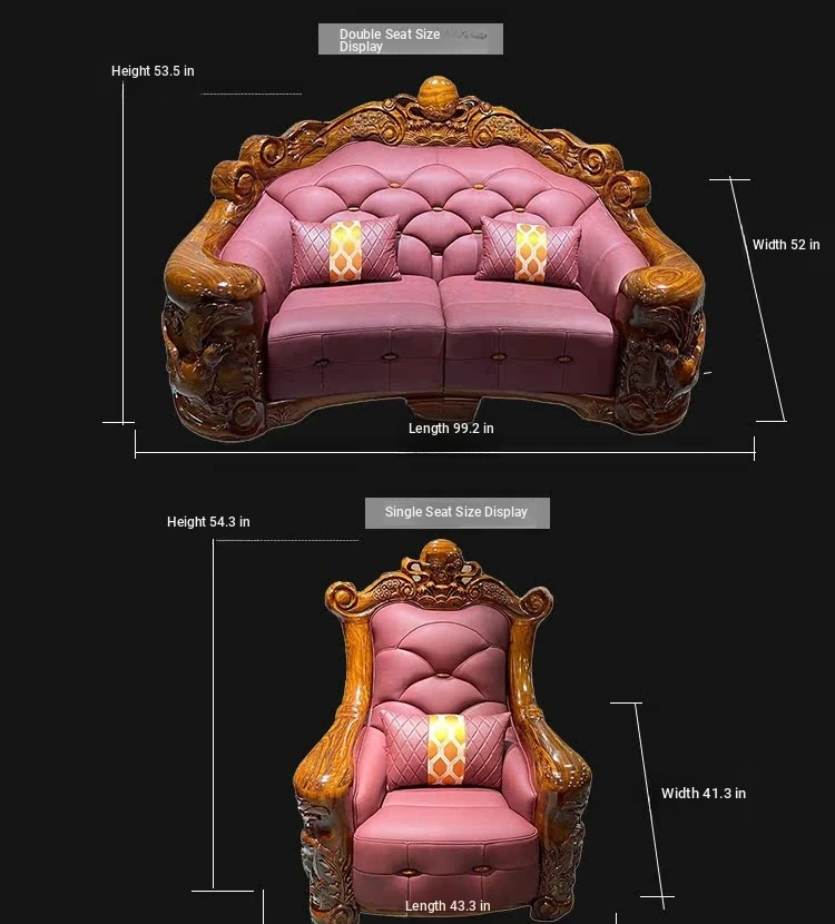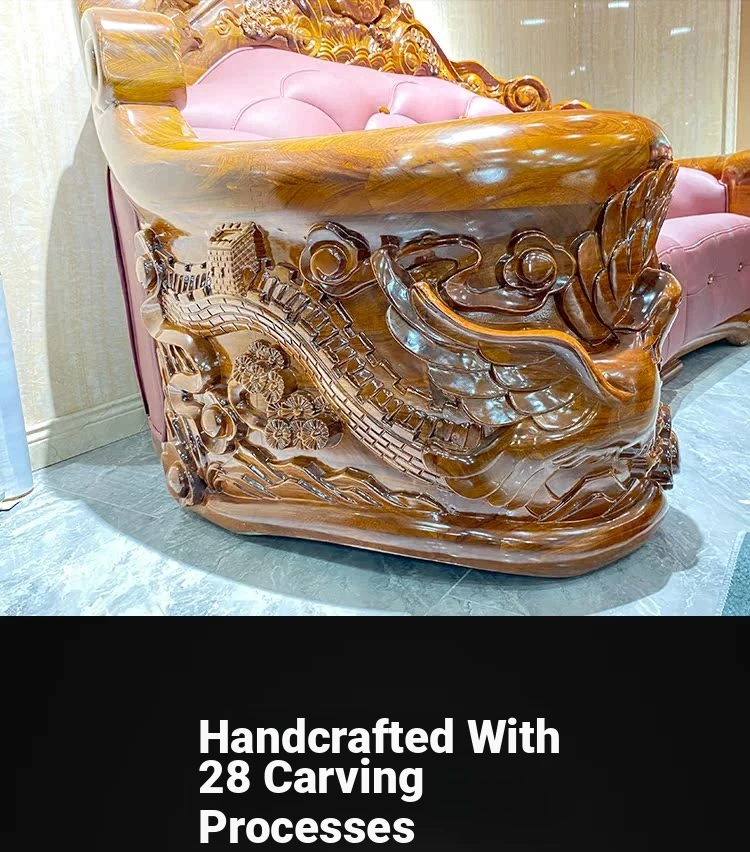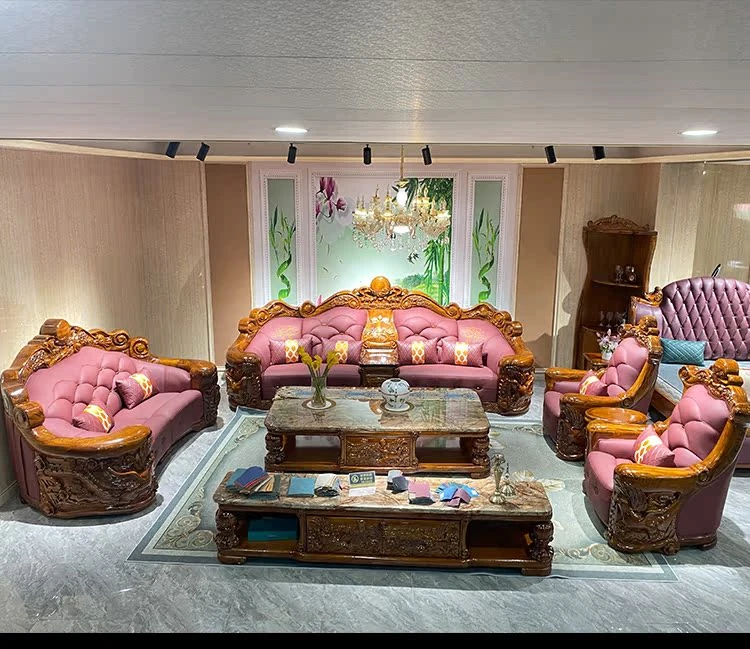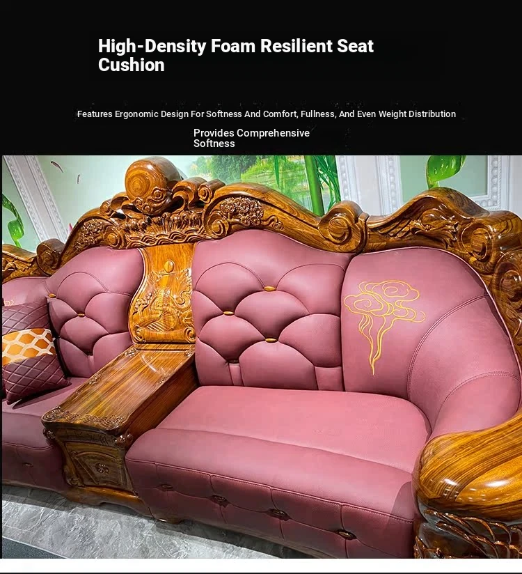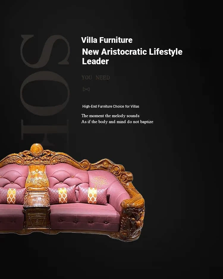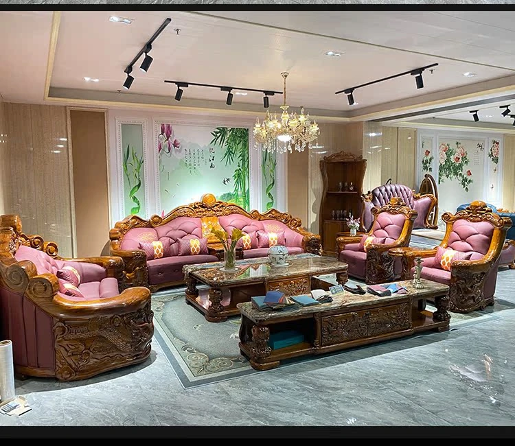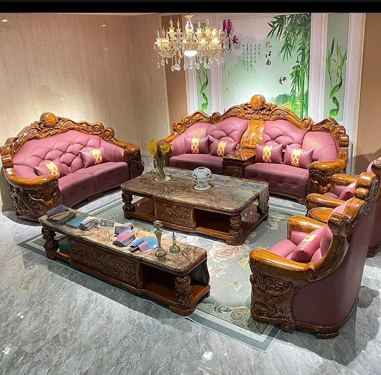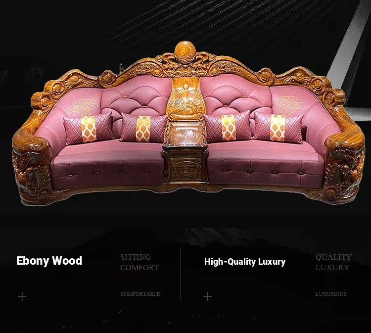 Myslaka European Style Solid Wood Sofa Set - Luxurious Carved Black Gold Wood for Villas - Perfect for Spacious Living Rooms - 1125 Series