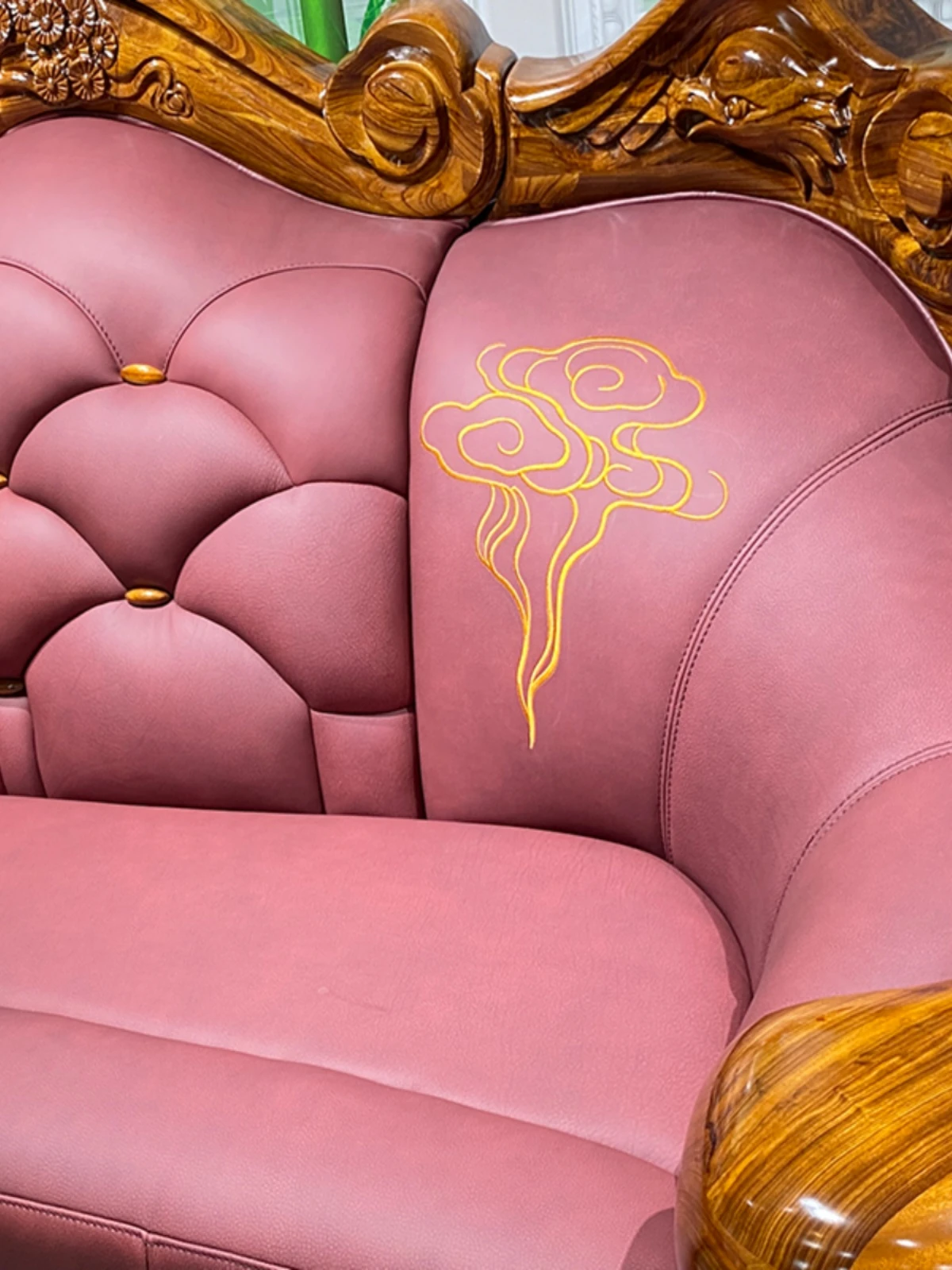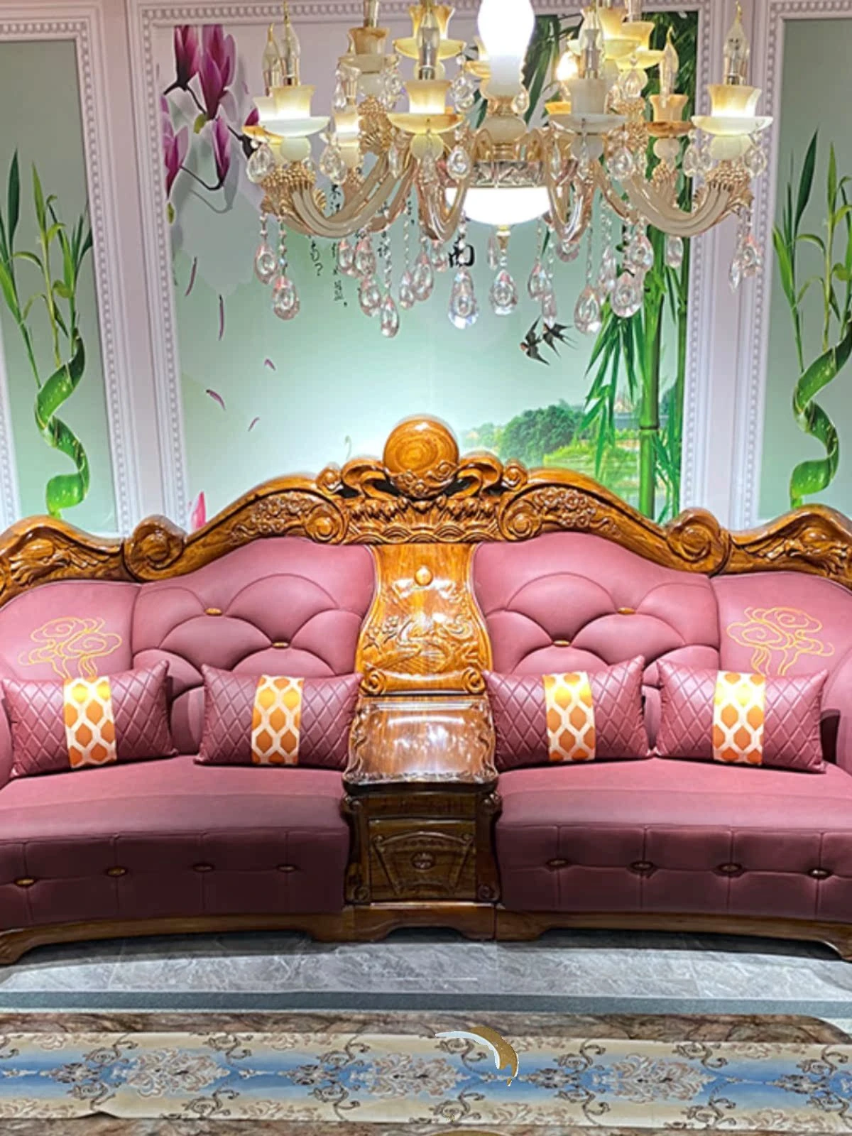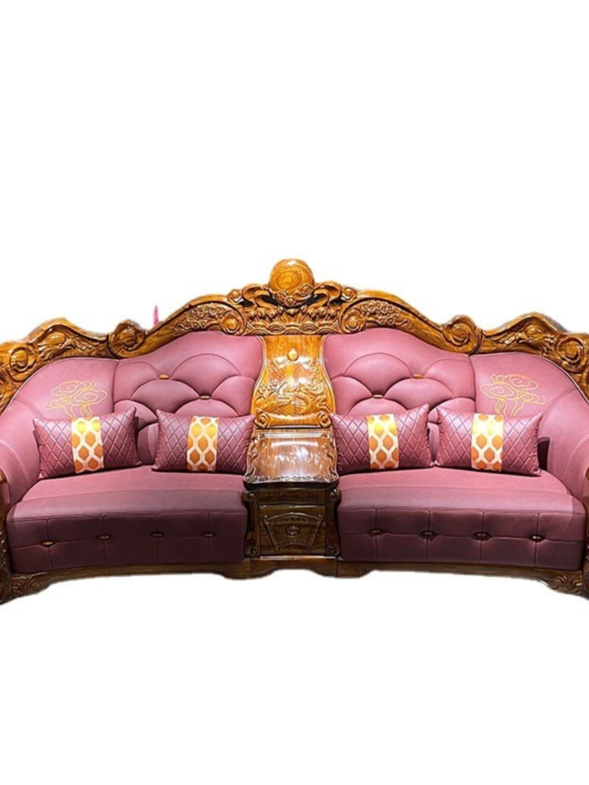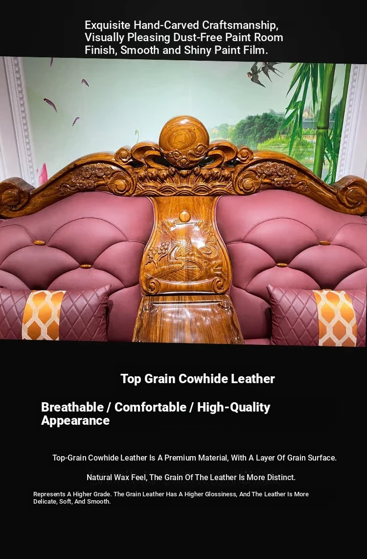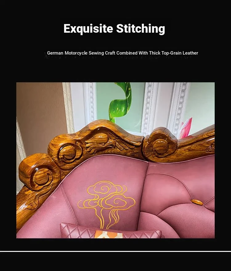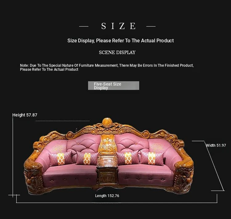 Myslaka European Style Solid Wood Sofa Set - Luxurious Carved Black Gold Wood for Villas - Perfect for Spacious Living Rooms - 1125 Series