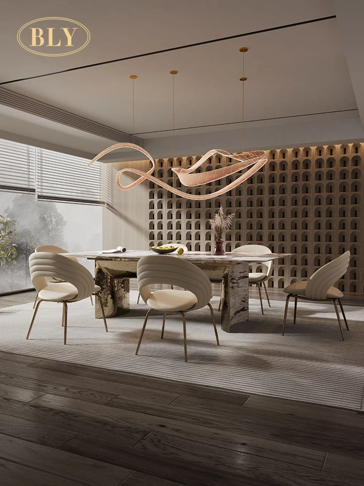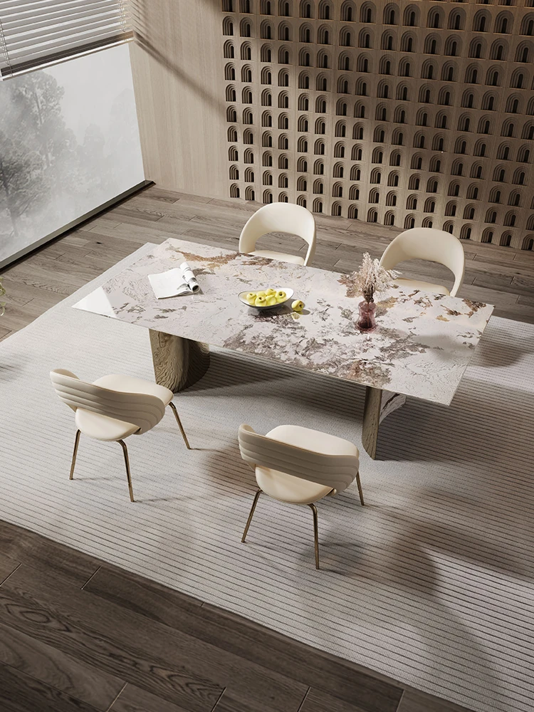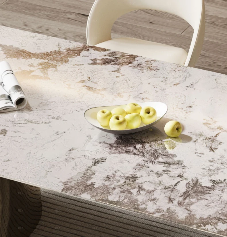 Natural Luxury Stone Dining Table - High-End Rectangular Marble Table for Elegant Dining, Perfect for Home Use with Stylish Chairs