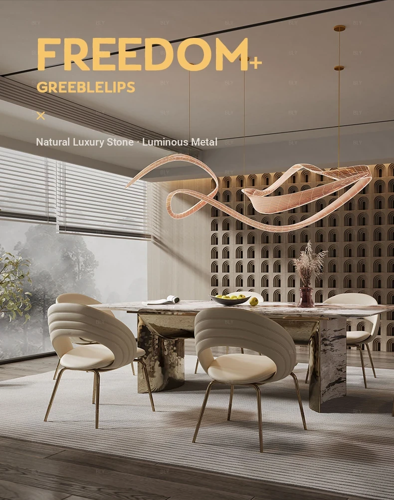 Import natural luxury stone single dining table [94.49in] + dining chair * 6