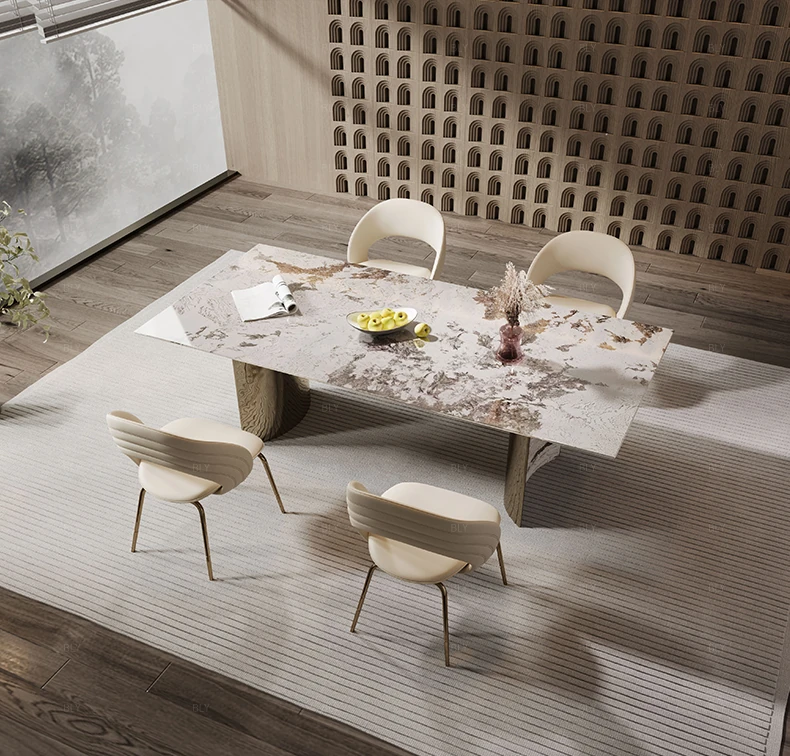Import natural luxury stone single dining table [94.49in] + dining chair * 4