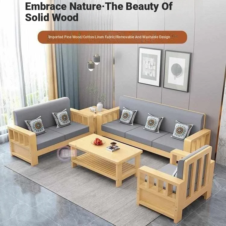 New Arrival: Direct Sale Solid Wood Modern Minimalist Sofa Set for Small Living Rooms - Versatile for Winter and Summer, All Solid Wood Construction