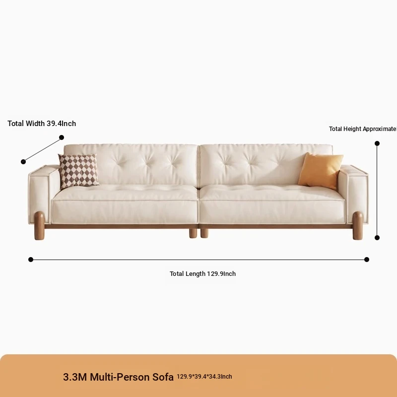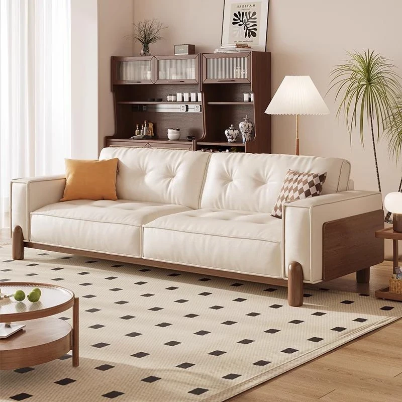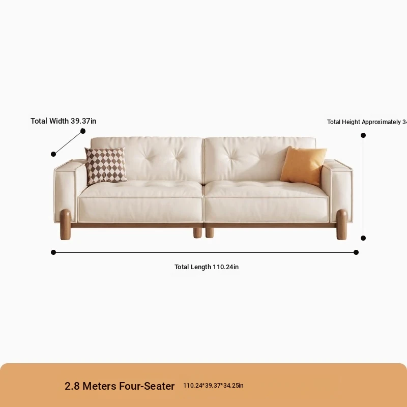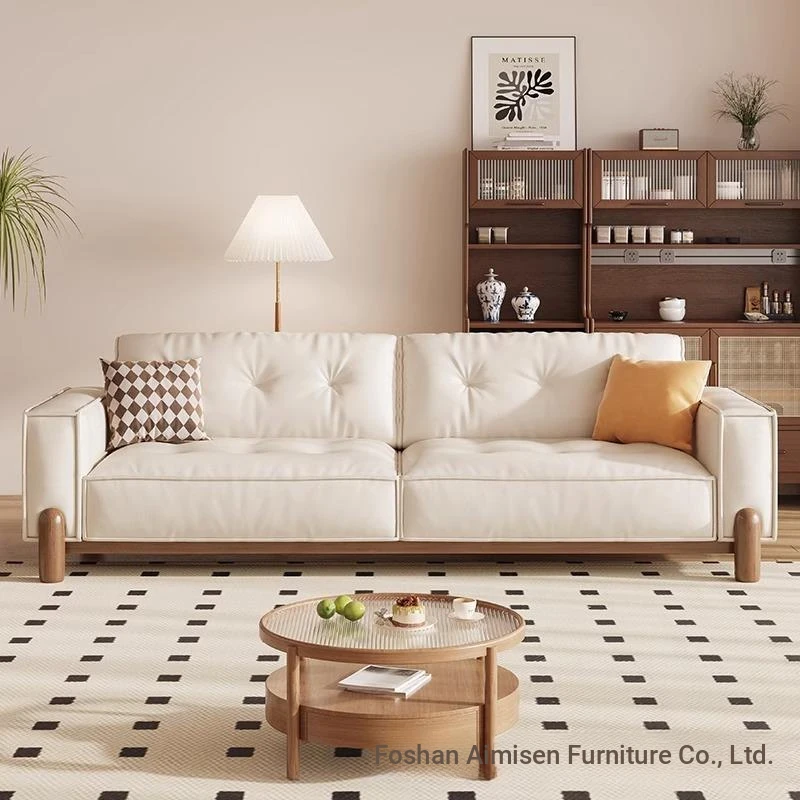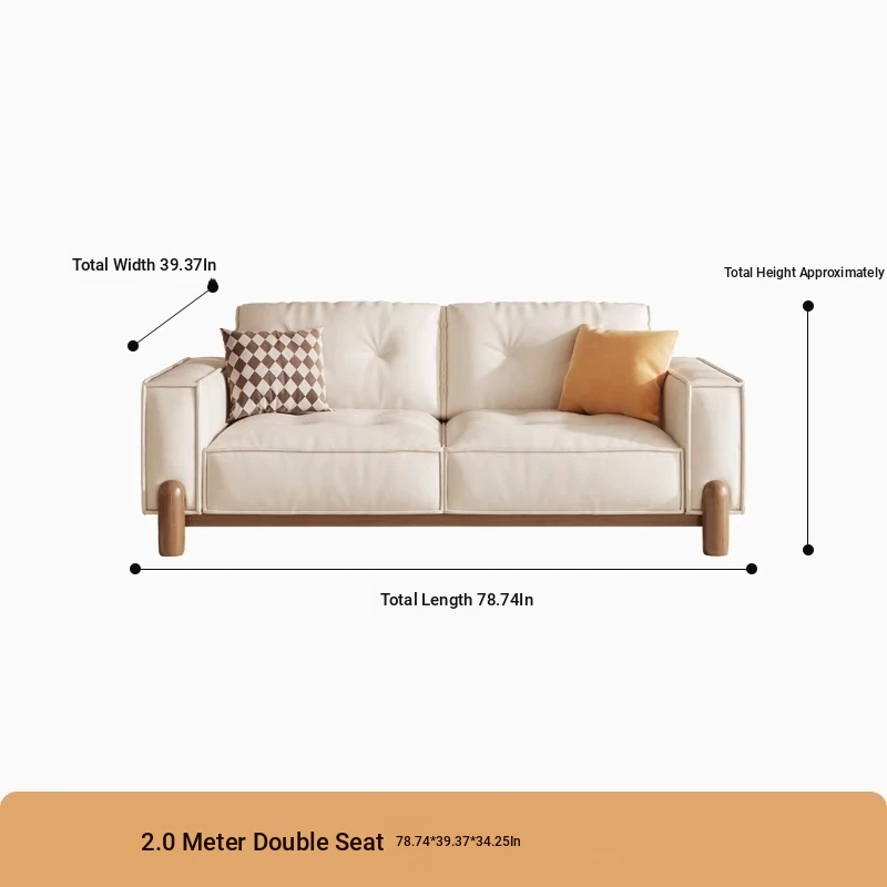 New Chinese Style Solid Wood Sofa - Creamy Tofu Block Sofa for Small Living Rooms, Nordic Minimalist Fabric Design, Perfect for Cozy Spaces