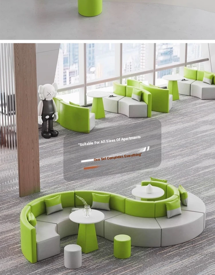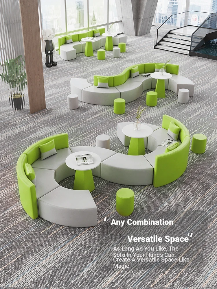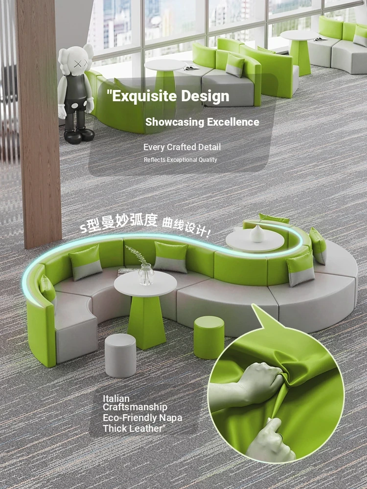 Nordic Banan S-Shaped Creative Unique Reception Sofa and Coffee Table Set for Modern Office Lounge and Meeting Areas – Stylish and Comfortable Design for Productive Conversations