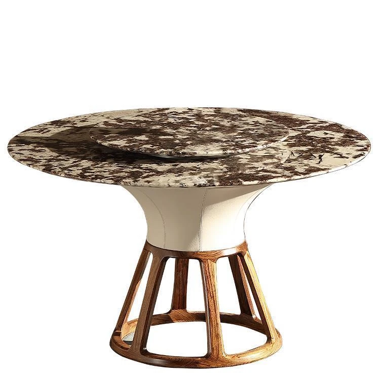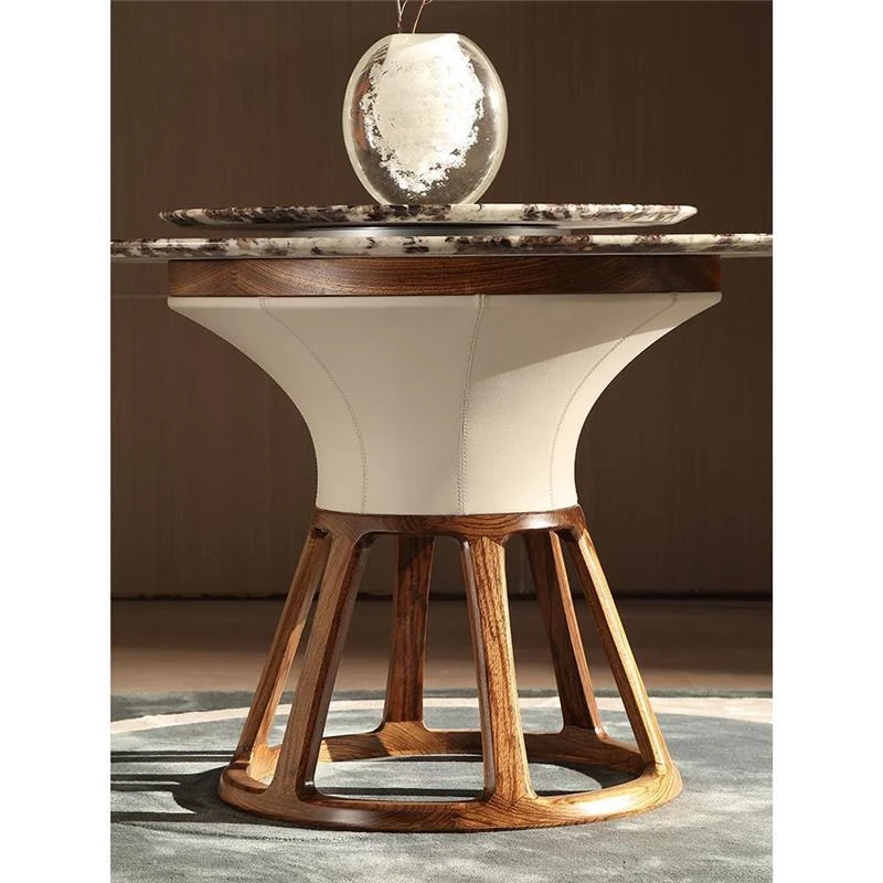 Nordic Blackwood & Natural Marble Round Dining Table Set - Elegant and Compact Design for Small Spaces, Perfect for Modern Homes