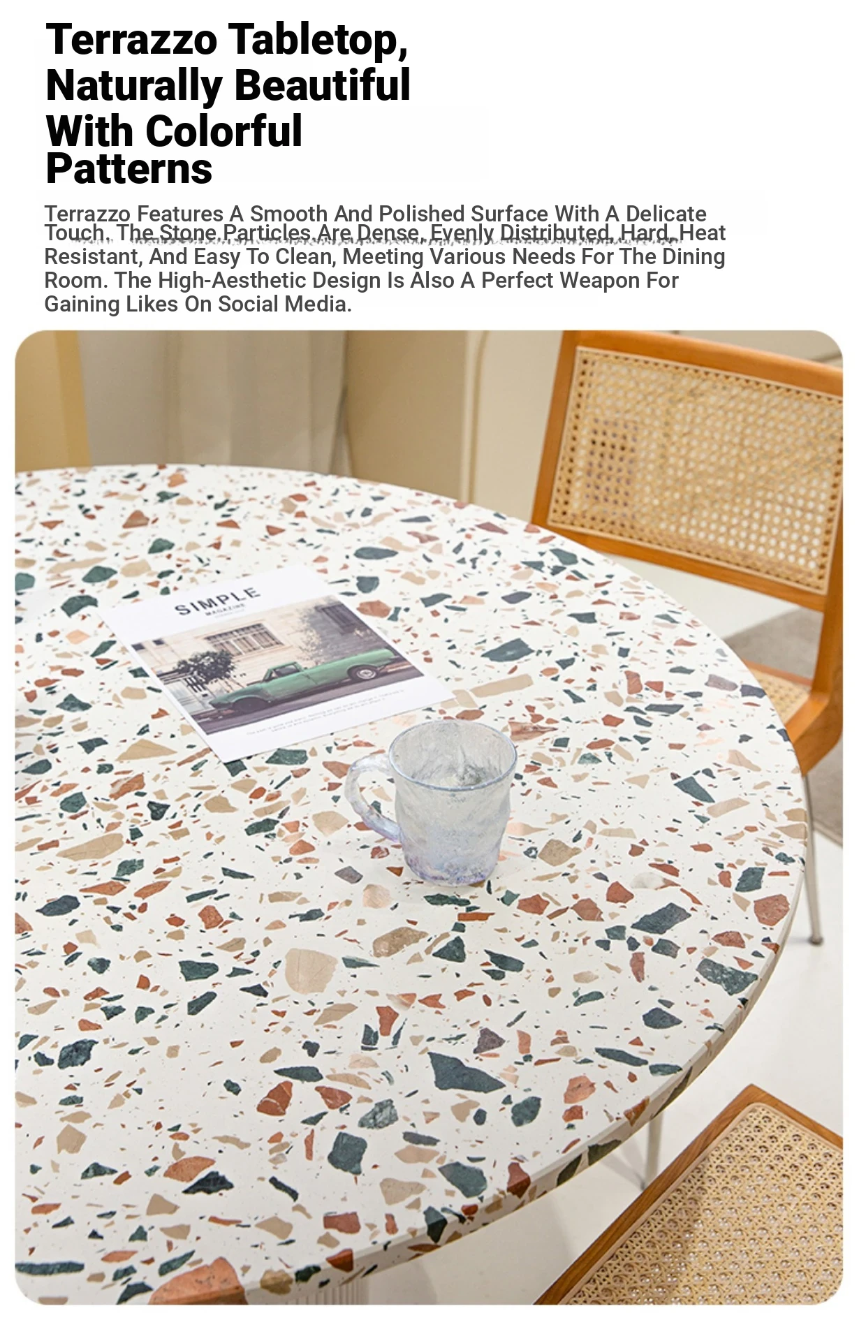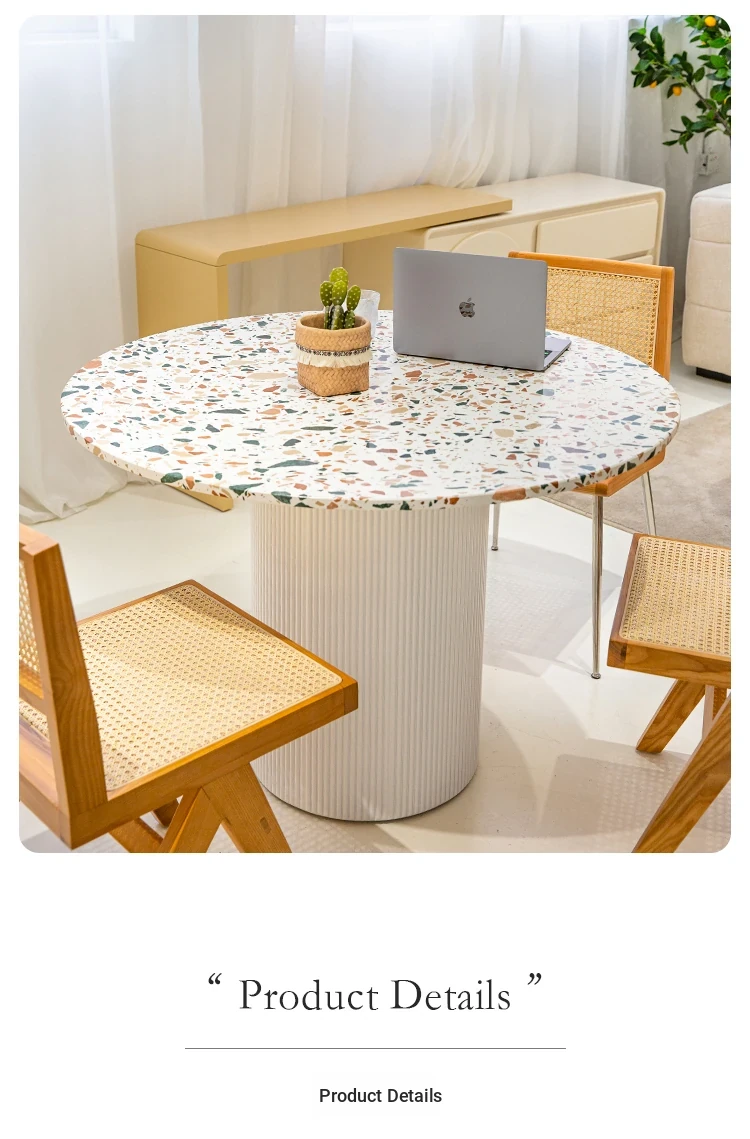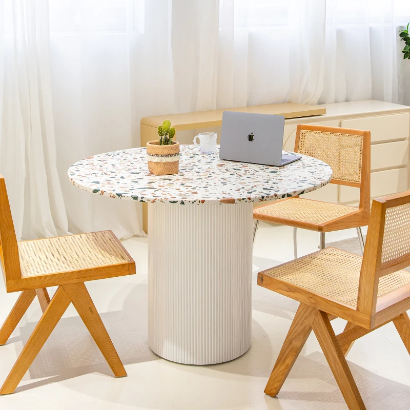 Nordic Minimalist Cream Terrazzo Round Dining Table – Stylish Coffee Table for Small Spaces, Perfect for Home Use and Designer Meetings, Made with Durable Rock Slab