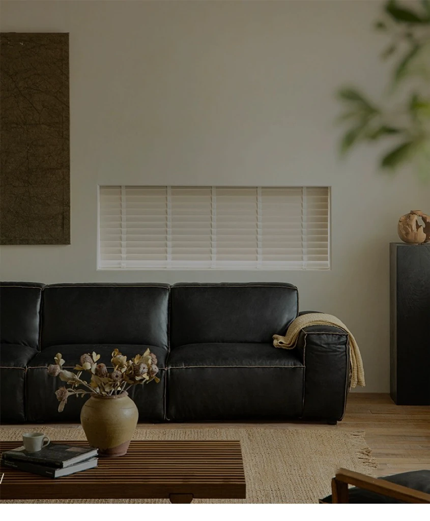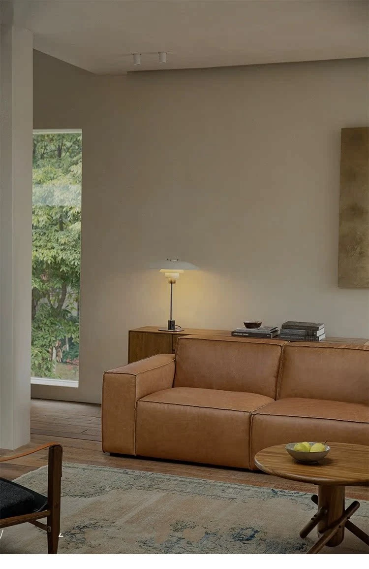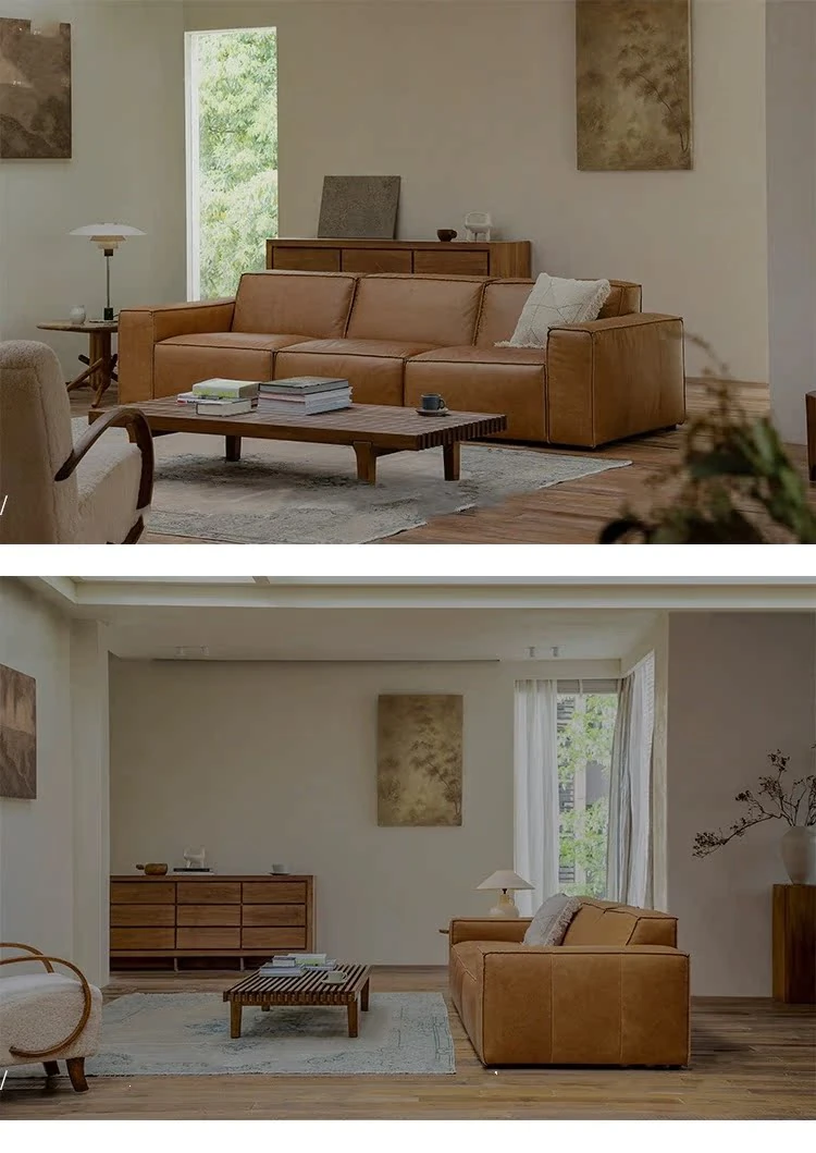 Nordic Modern Minimalist Genuine Leather Sofa for Small Living Rooms - Modular Design with Down Filling, Retro Style