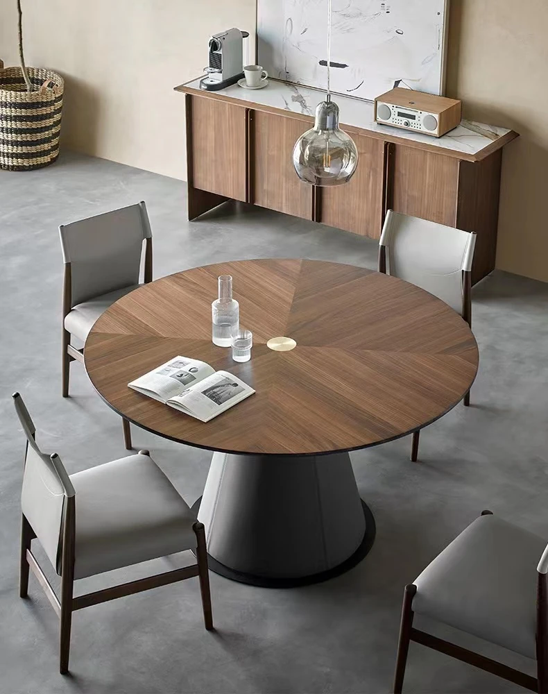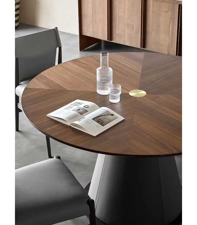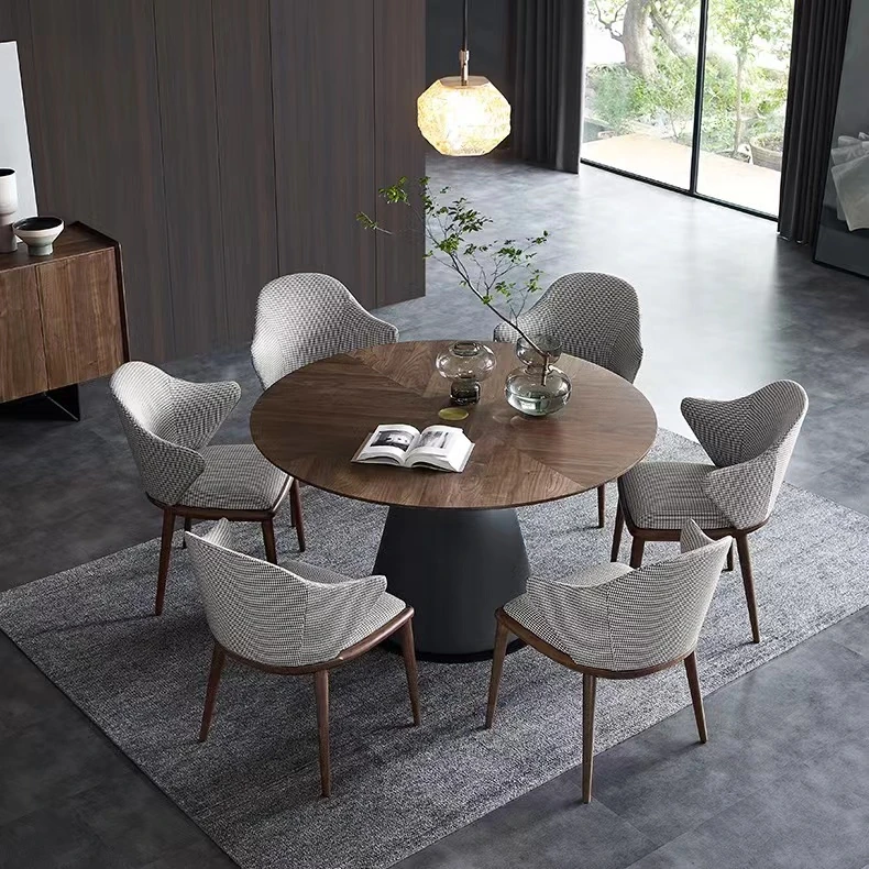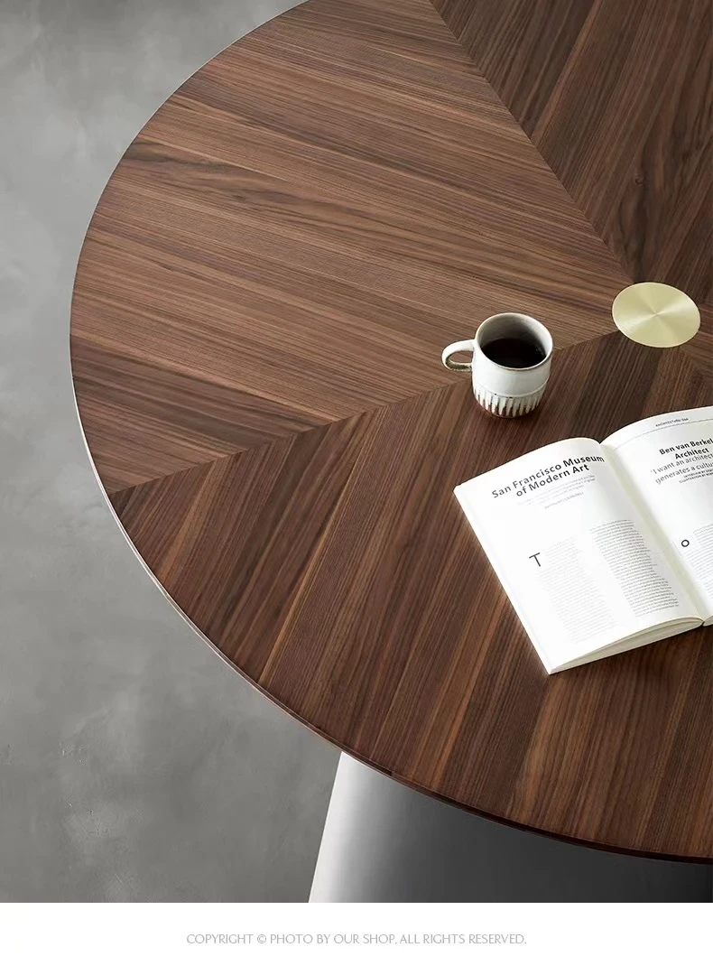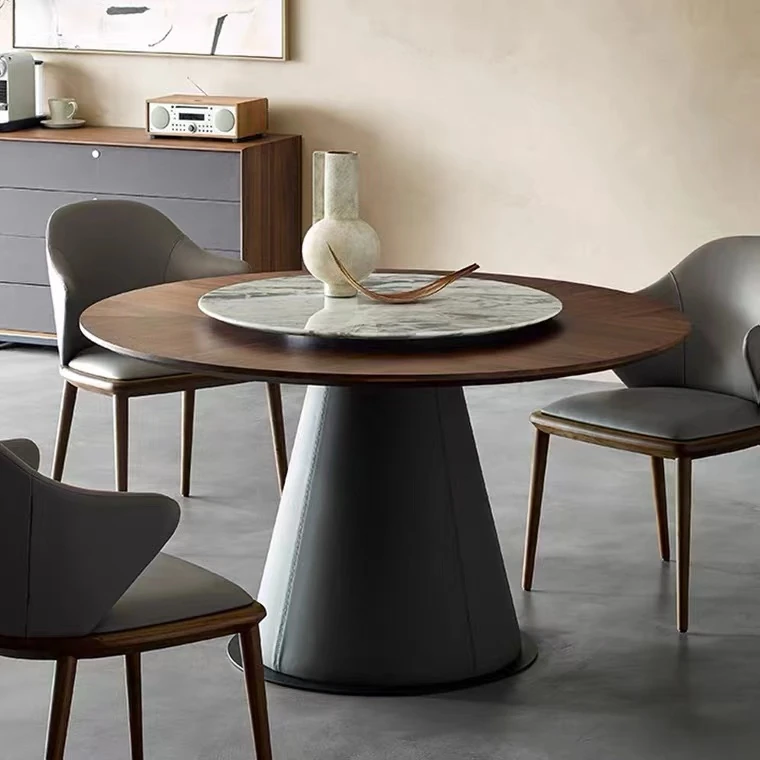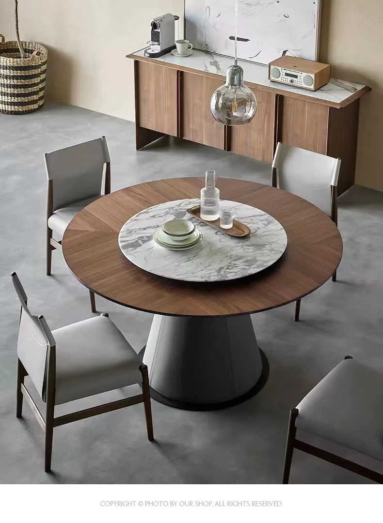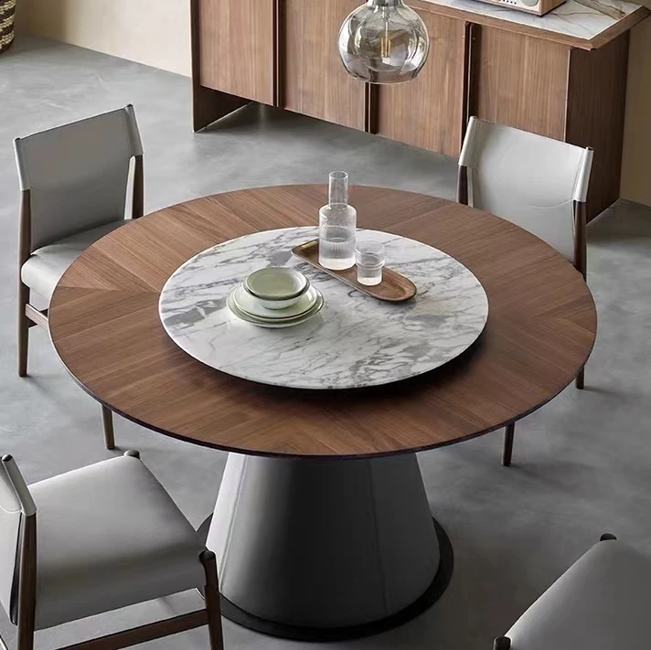 Nordic Modern Minimalist Round Dining Table Set with Walnut Finish and Marble Top for Small Living Spaces - Stylish and Functional Home Furniture