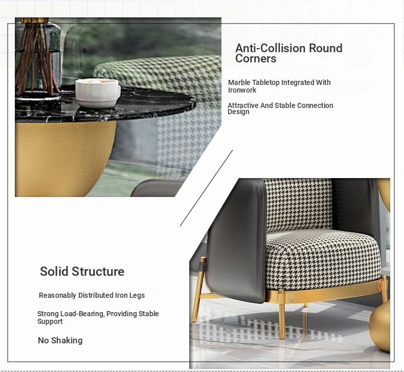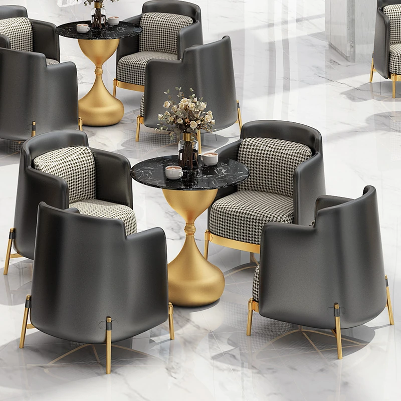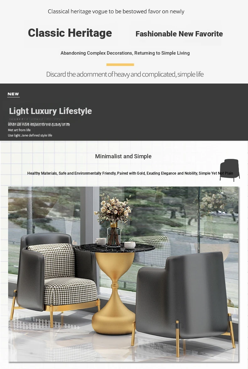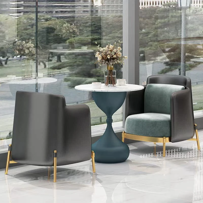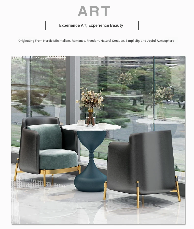 Nordic Single Sofa Chair with Rock Slab Table and Chair Combination - Minimalist Reception and Meeting Furniture for Sales Offices and Office Spaces