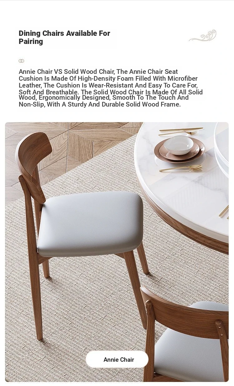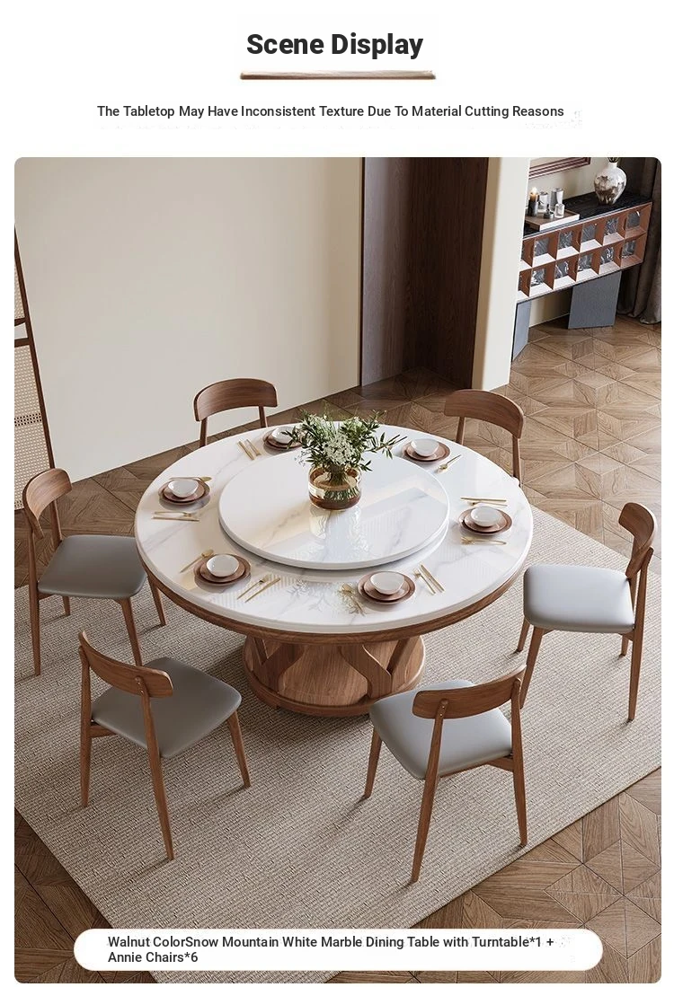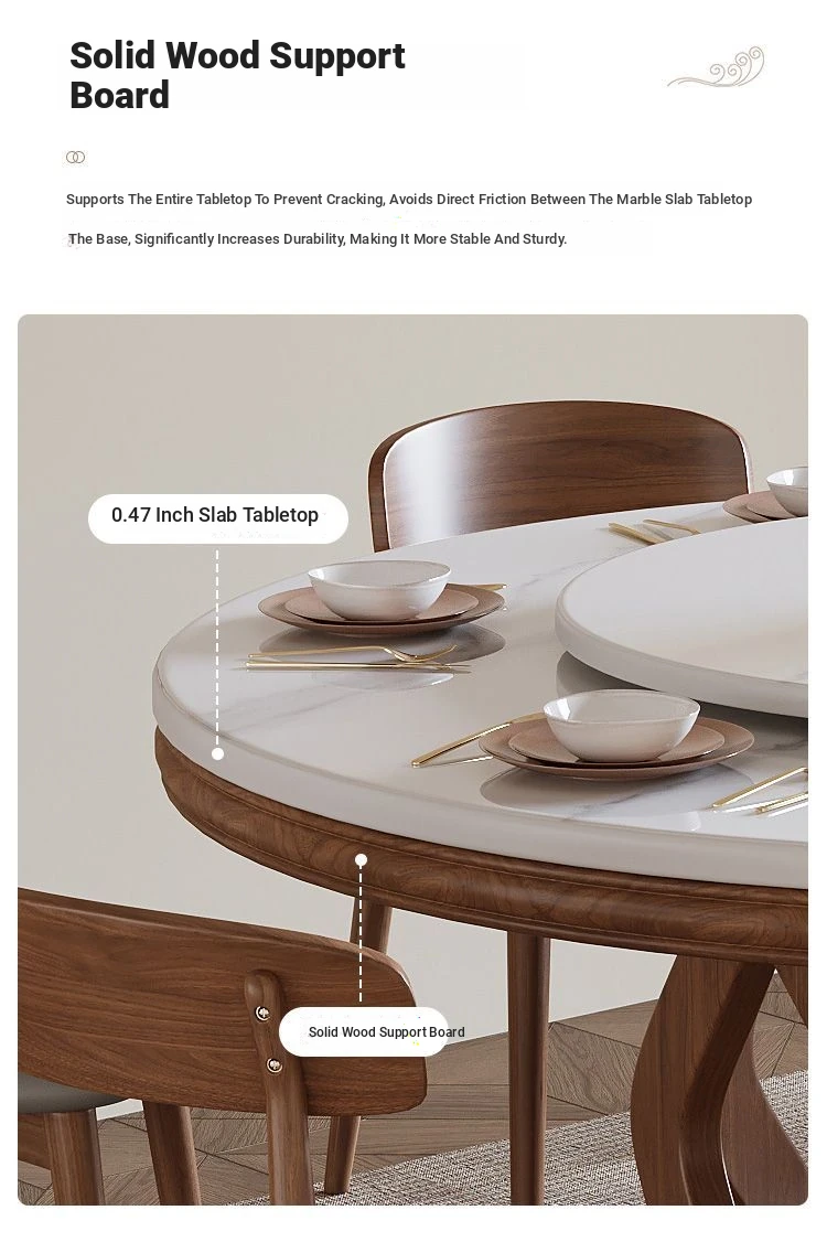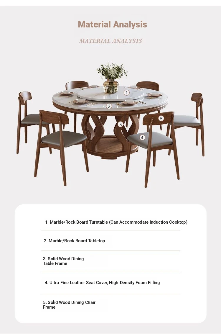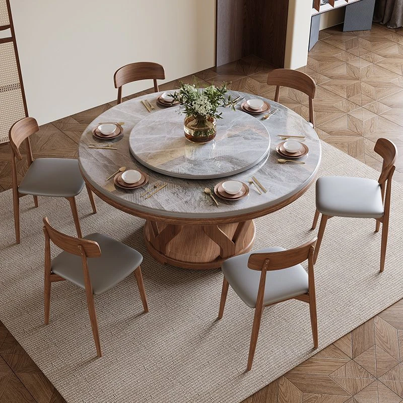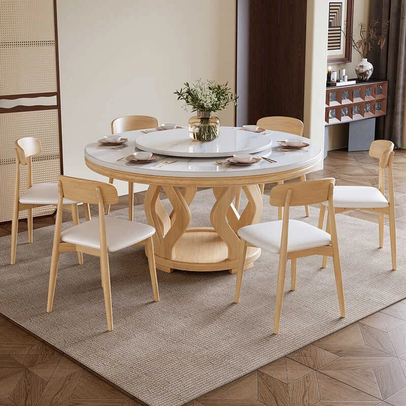 Nordic Solid Wood Round Dining Table Set with Lazy Susan - Modern Minimalist Marble Table and Chair Combination for Home Dining