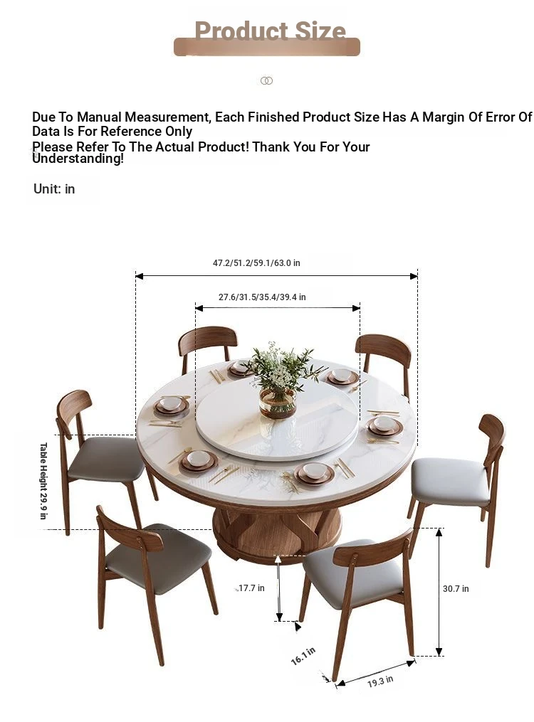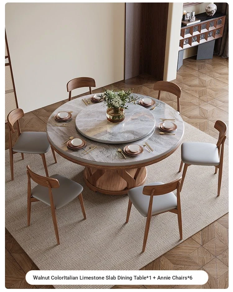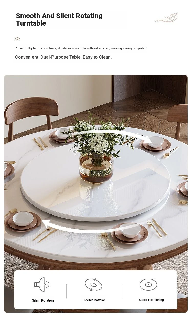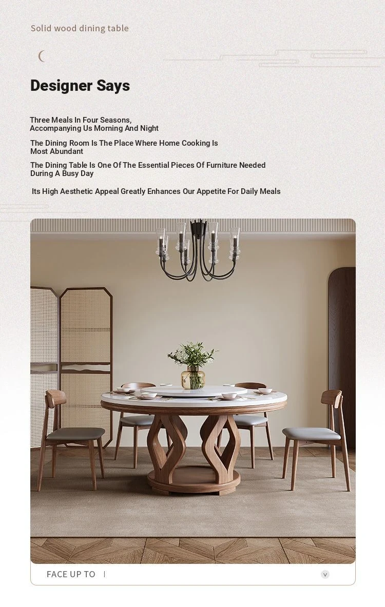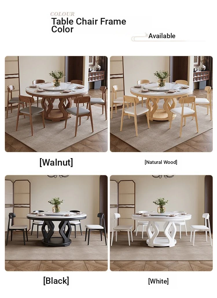 Nordic Solid Wood Round Dining Table Set with Lazy Susan - Modern Minimalist Marble Table and Chair Combination for Home Dining