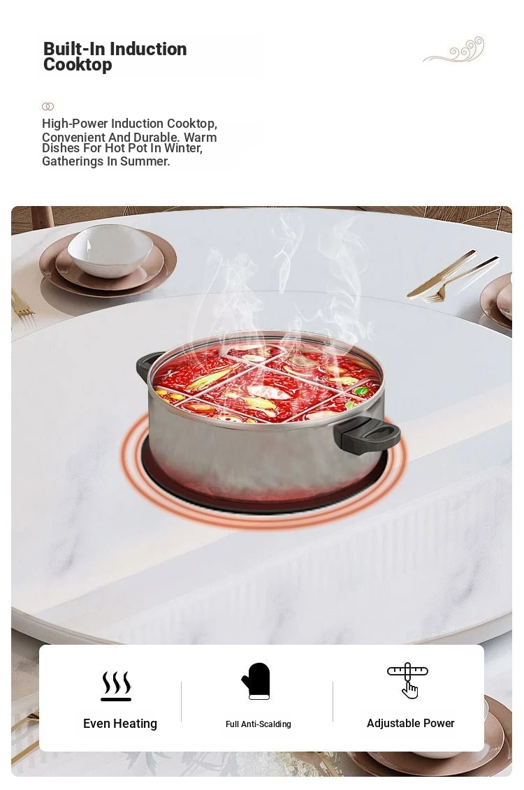 All solid wood marble round table + embedded Induction cooker +10 chairs