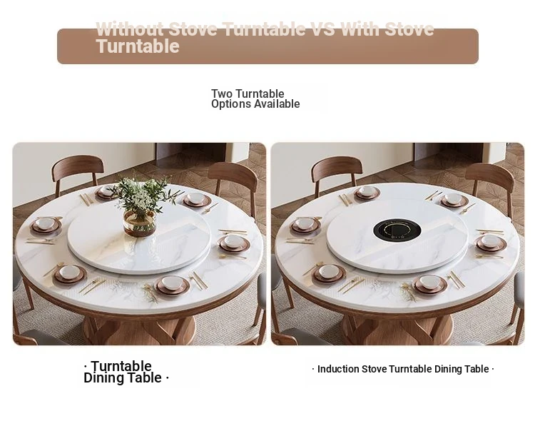 All solid wood bright rock board round table + embedded Induction cooker +8 chairs