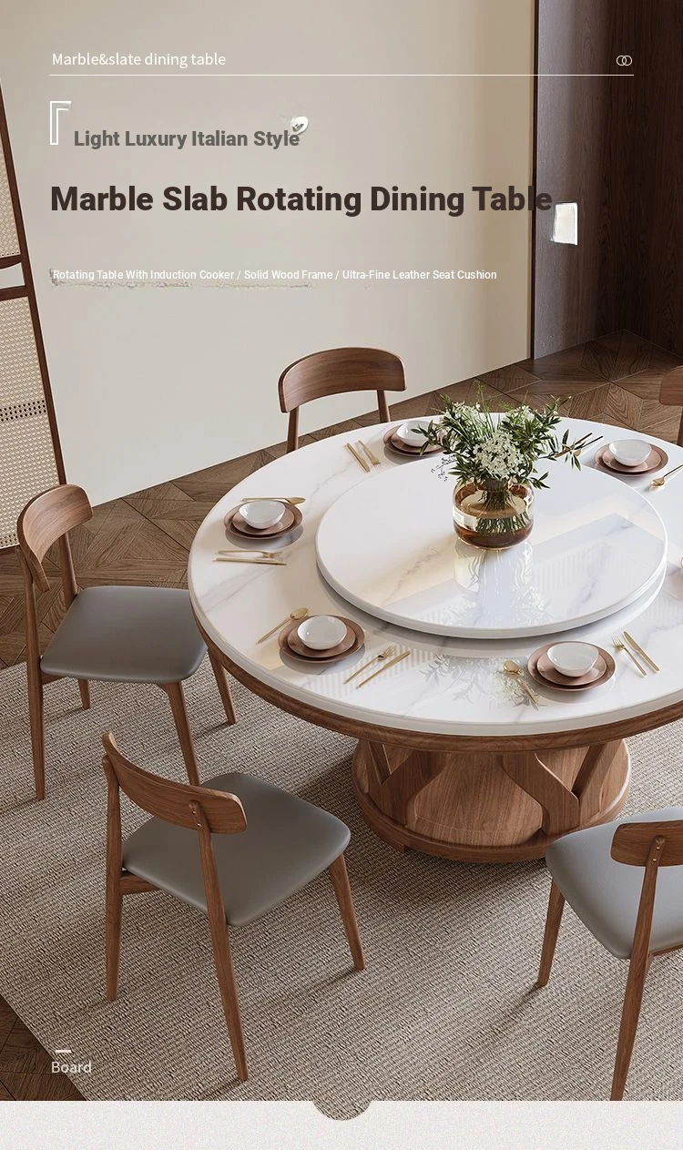 All solid wood marble round table + embedded Induction cooker +8 chairs